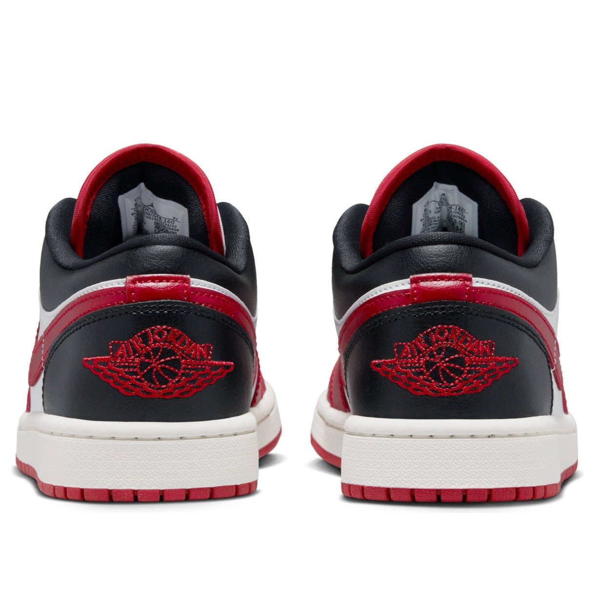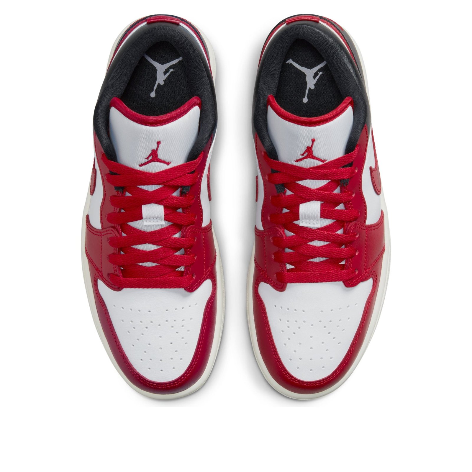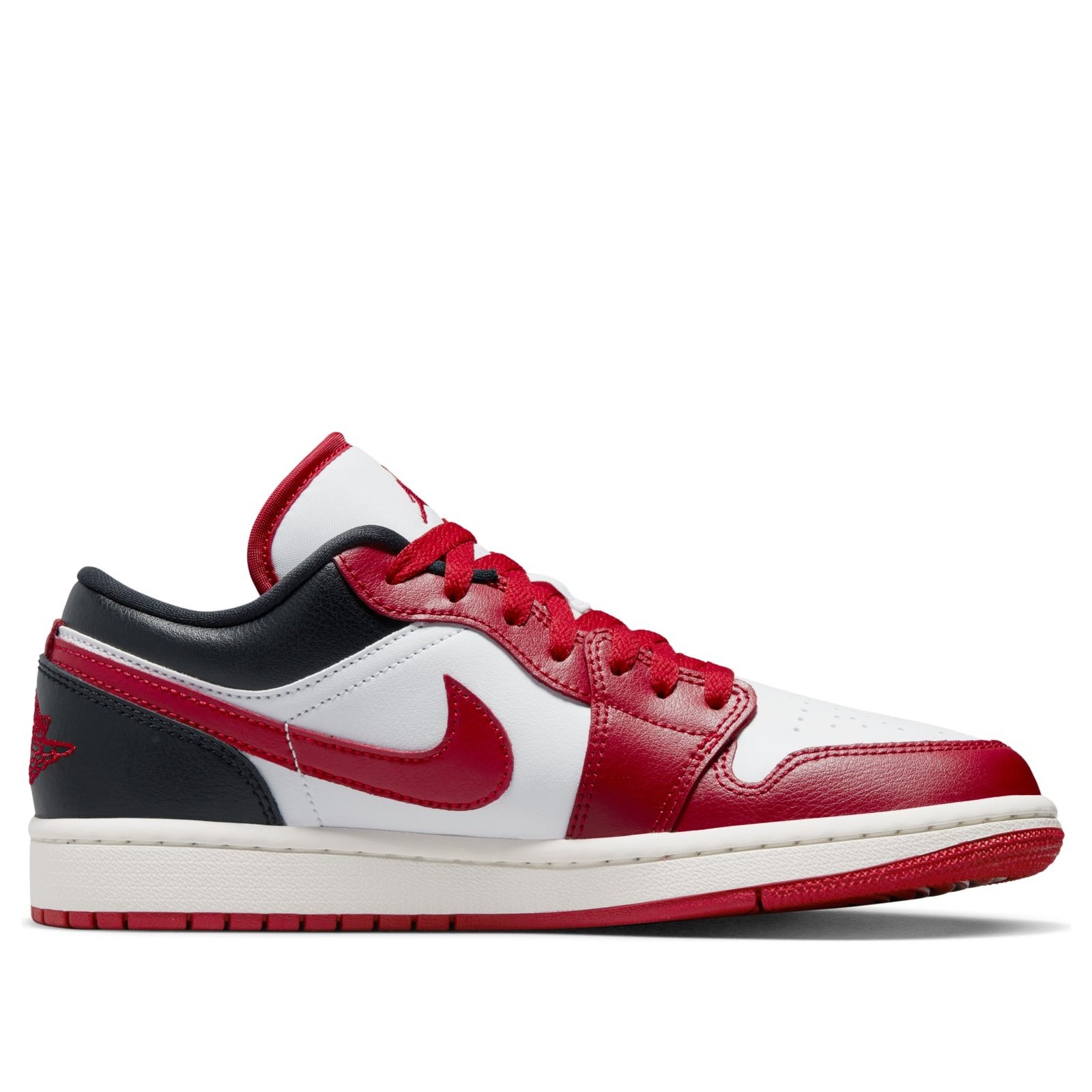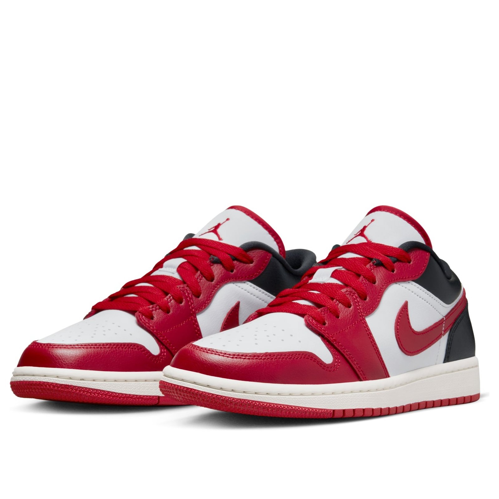 The Air Jordan 1 Low Reverse Black Toe (W) arrives in a white, black, Sail, and Gym Red color palette.The Reverse Black Toe Jordan 1 Low (W) upper is meticulously constructed using a combination of leather and synthetic materials, ensuring durability. The heel proudly presents the iconic Air Jordan Wings logo, while the tongue displays the Jumpman branding. To deliver a responsive and comfortable experience, the shoe incorporates a foam-cushioned midsole, effectively reducing impact and enhancing comfort. Furthermore, the rubber outsole features a traction pattern that guarantees stability and excellent grip. Adding to its design, this shoe in women sizing showcases the Nike Swoosh on the lateral sides. Lastly, the perforated toe box of the sneaker allows for enhanced breathability.What we like about the Air Jordan 1 Low Reverse Black Toe (W) is its vibrant color combination of black, white, and red hues, creating a captivating contrast. The women s rendition of the Air Jordan 1 Low Reverse Black Toe (W) was released on October 19, 2022 and sold for a retail price of $110.
