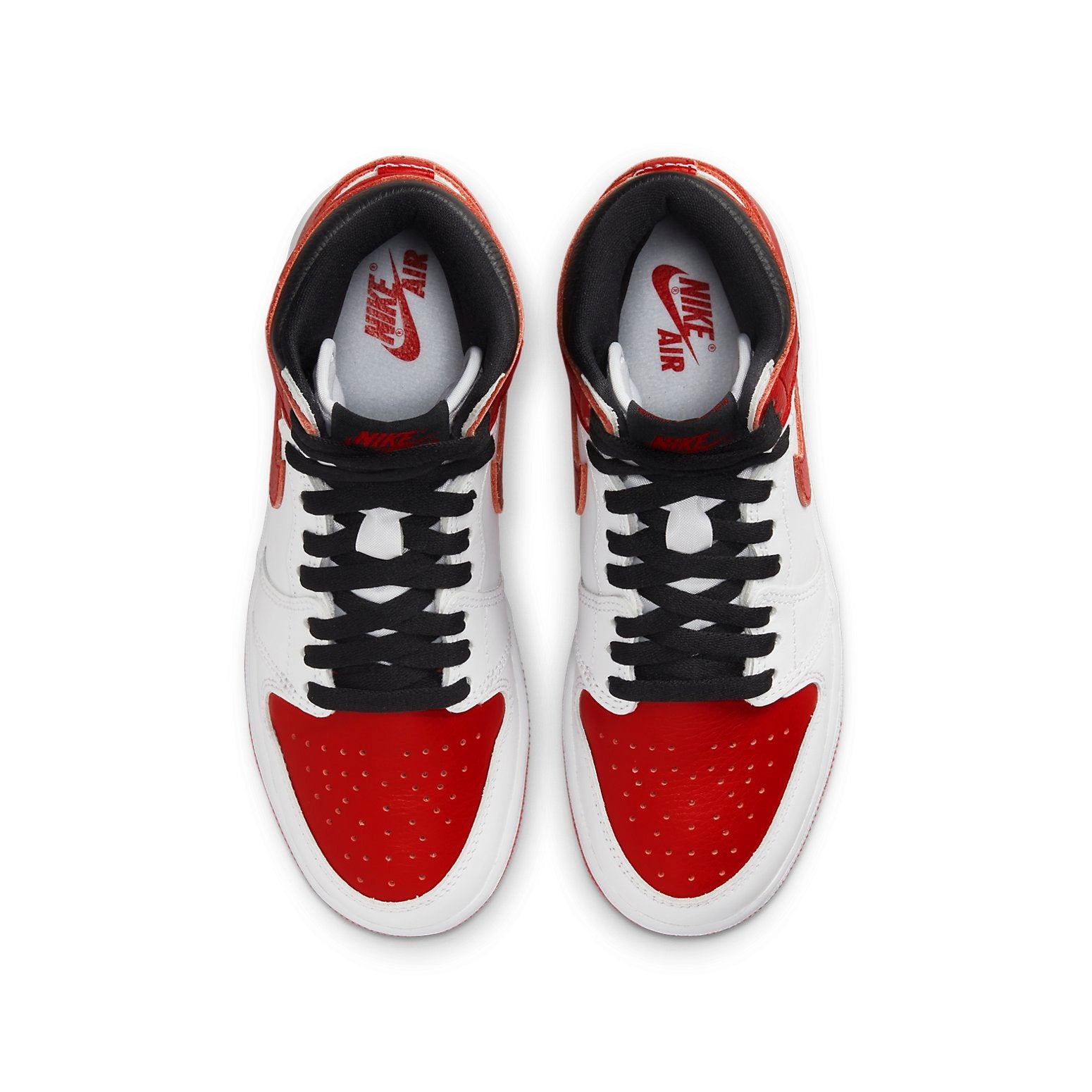 The Air Jordan 1 Retro High OG Heritage (GS) for grade schoolers can be worn on the basketball court or in town.The color palette of the Air Jordan 1 Retro High OG Heritage (GS) for grade schoolers is made up of white, red, and black. A mixture of smooth and pebbled leather is used on the upper part of the shoe. On the toes and heels, you will find red accents, in addition to the red Nike Swoosh symbol on the side. Black laces lay on top of the white and black tongue, which is touched by red leather straps. The Air Jordan 1 Retro High OG Heritage (GS) for grade schoolers for grade schoolers was first released in May of 2022. This model had a starting retail price of $170 for men s sizing.