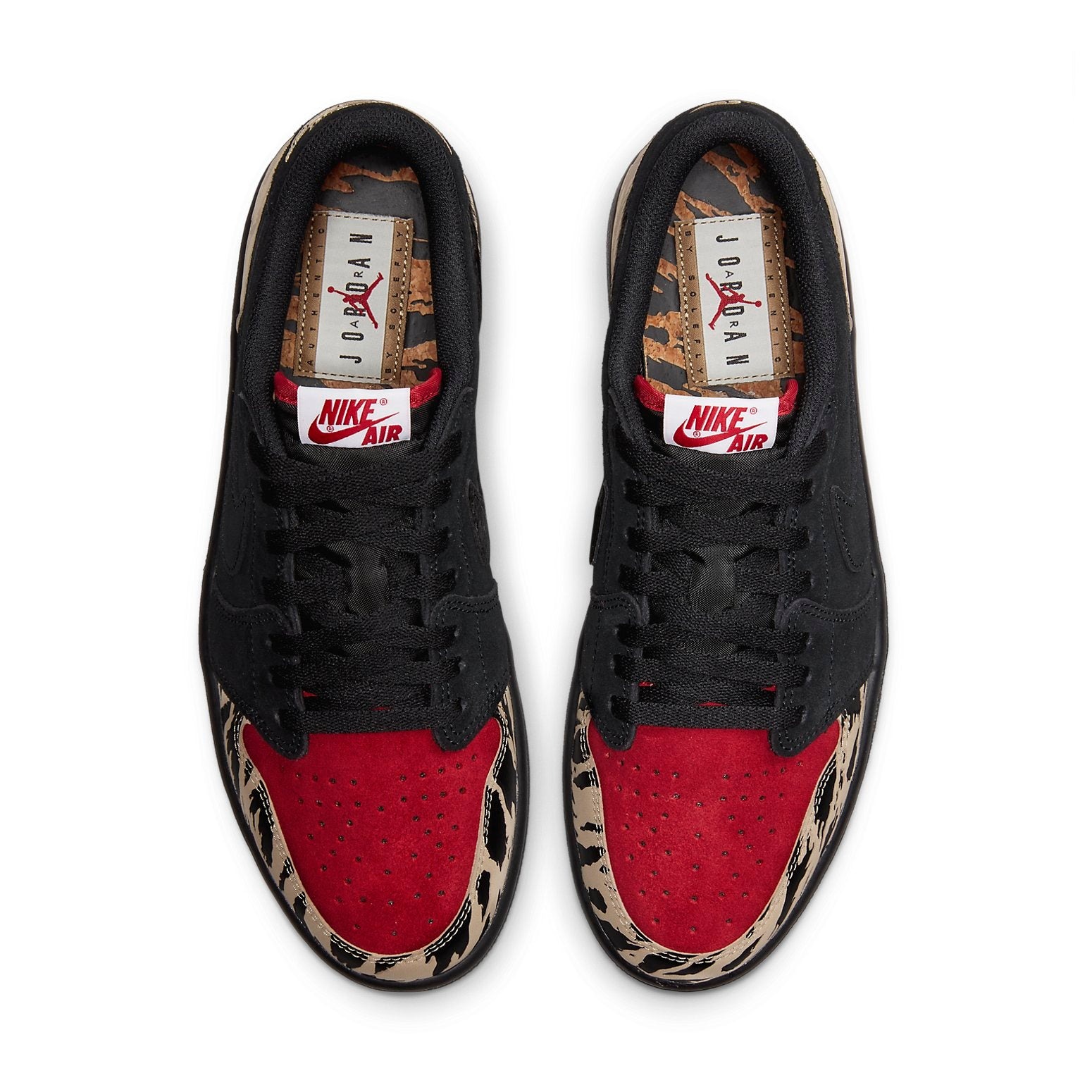 The Air Jordan 1 Low Solefly draws inspiration from the carnivorous wildlife of the Florida Everglades. Smothered in ferocious patterns, beige debossed toe wrap and heel wrap pop against a black and red premium suede upper. From there, SoleFly and Air Jordan logos on the heel tabs add a custom feel.The Air Jordan 1 Low Solefly released in December of 2021 and retailed for $150.