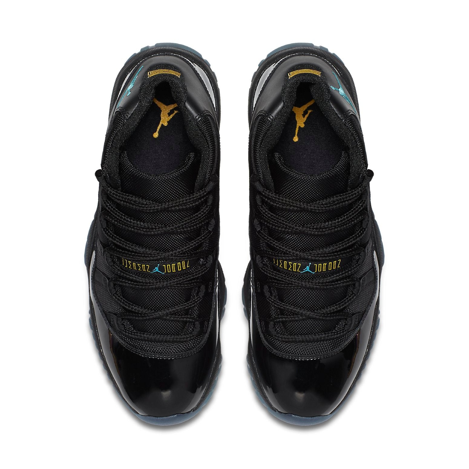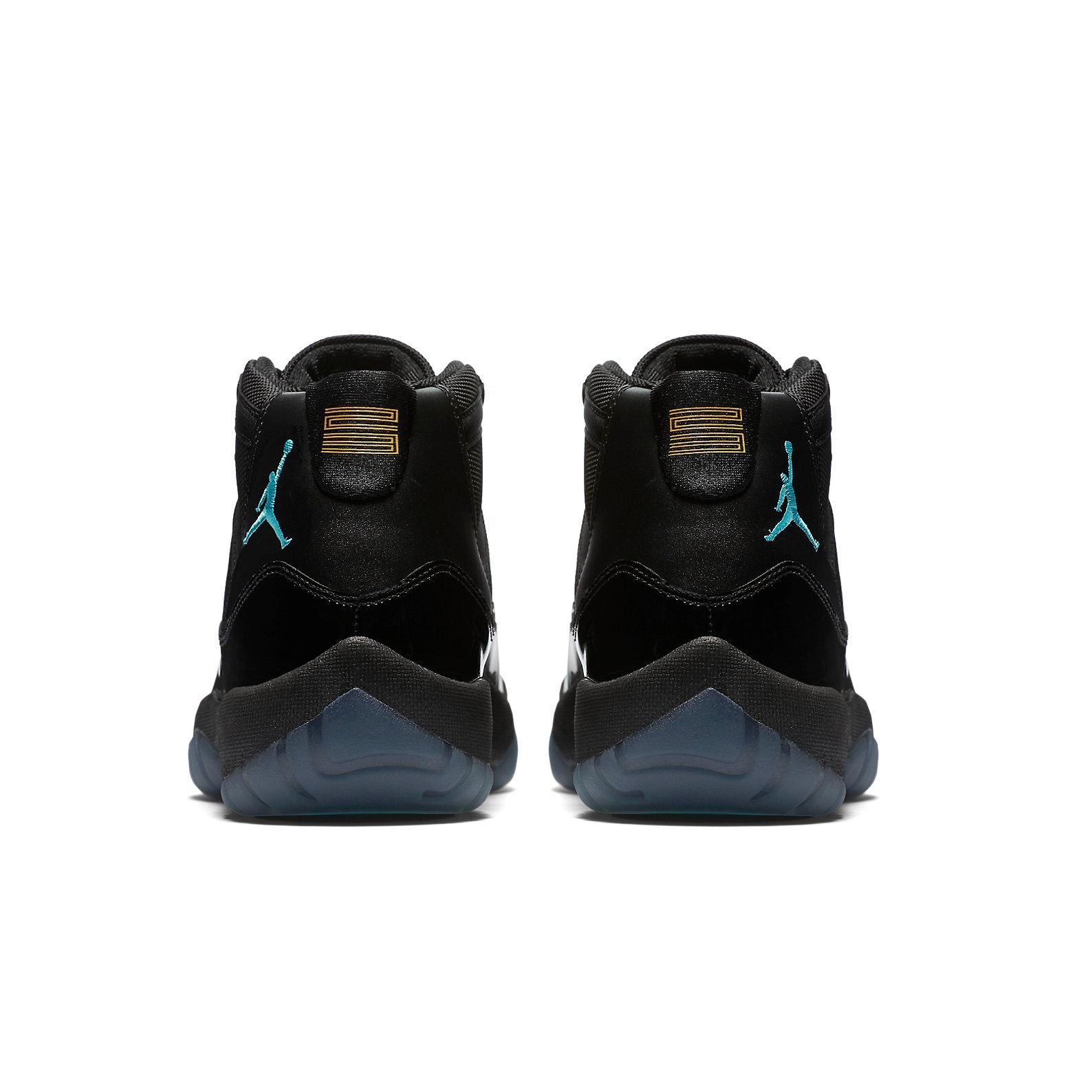 The Air Jordan 11 Retro Gamma Blue was part of a Holiday season released by the Jordan Brand.The top of the Retro Gamma Blue has a black finish throughout and is made of a customary combination of ballistic net and slick patent leather. The sneaker’s branding features include the number « 23 » engraved in Varsity Maize and a turquoise Jumpman on the heel tab. A top-loaded full-length Air unit is added to the plush Phylon midsole, which is supported by a carbon fiber spring plate. Herringbone suction pods are used on a translucent rubber outsole.The Air Jordan 11 Retro Gamma Blue debuted on 21 December 2013, and retailed at $185.