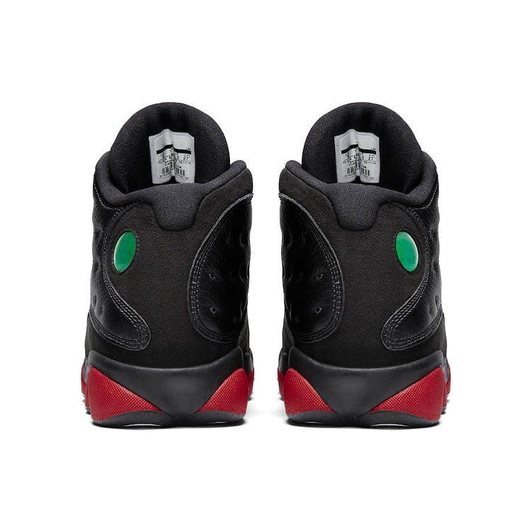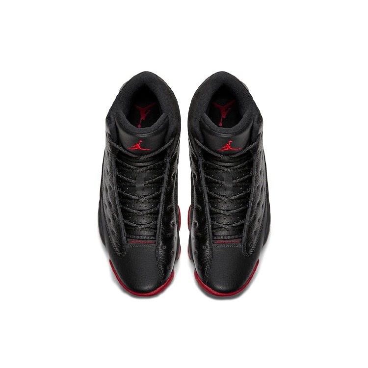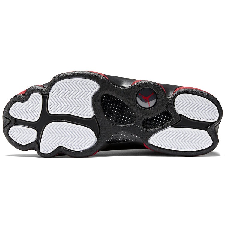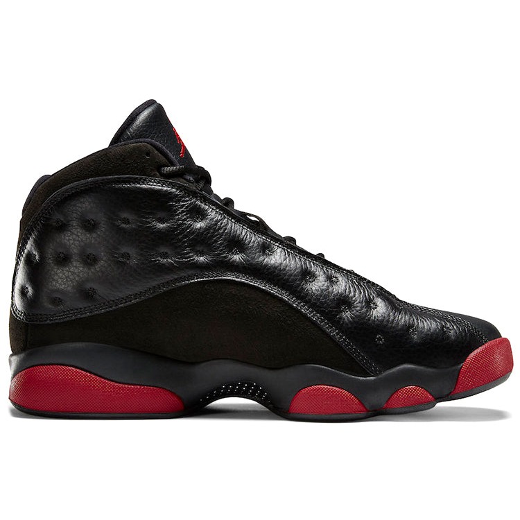 The Air Jordan 13 Retro Dirty Bred comes in a black and gym red-black color scheme.The Jordan 13 Retro Dirty Bred has an upper that is crafted from a durable mixture of black leather and suede. The shoe features a holographic « cat’s eye » on one side of the heel. The signature Jumpman branding is displayed on the tongue. The outsole features a herringbone traction pattern that ensures grip and stability. The sneaker incorporates Zoom Air cushioning technology in the midsole, providing responsive and comfortable cushioning.An outstanding feature of Air Jordan 13 Retro Dirty Bred is its distinct and bold color scheme, combining elements of black and red. This colorway, commonly referred to as « Dirty Bred, » adds a rugged and gritty aesthetic to the iconic Air Jordan 13 silhouette. The Air Jordan 13 Retro Dirty Bred was released on December 13, 2014, and sold for a retail price of $185.