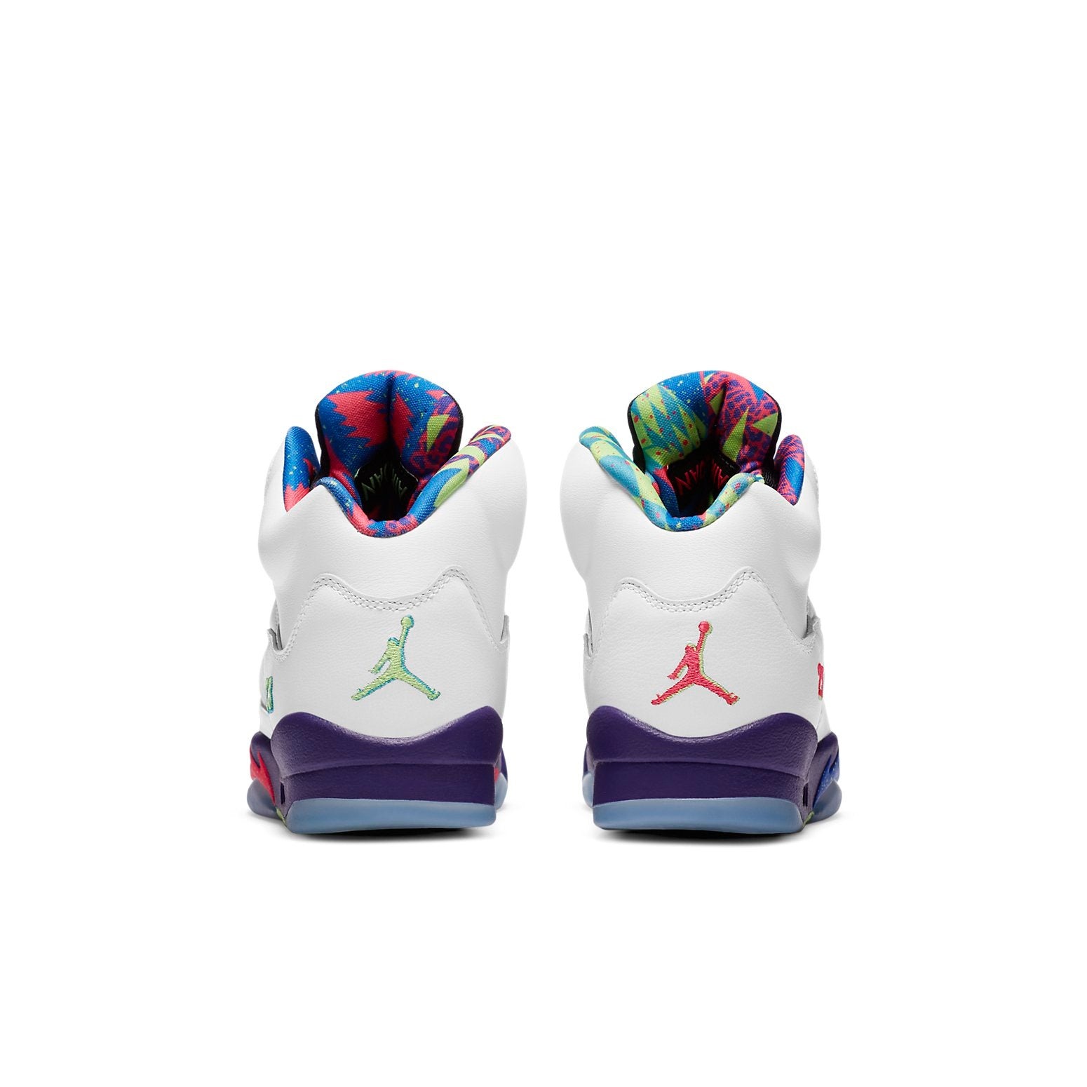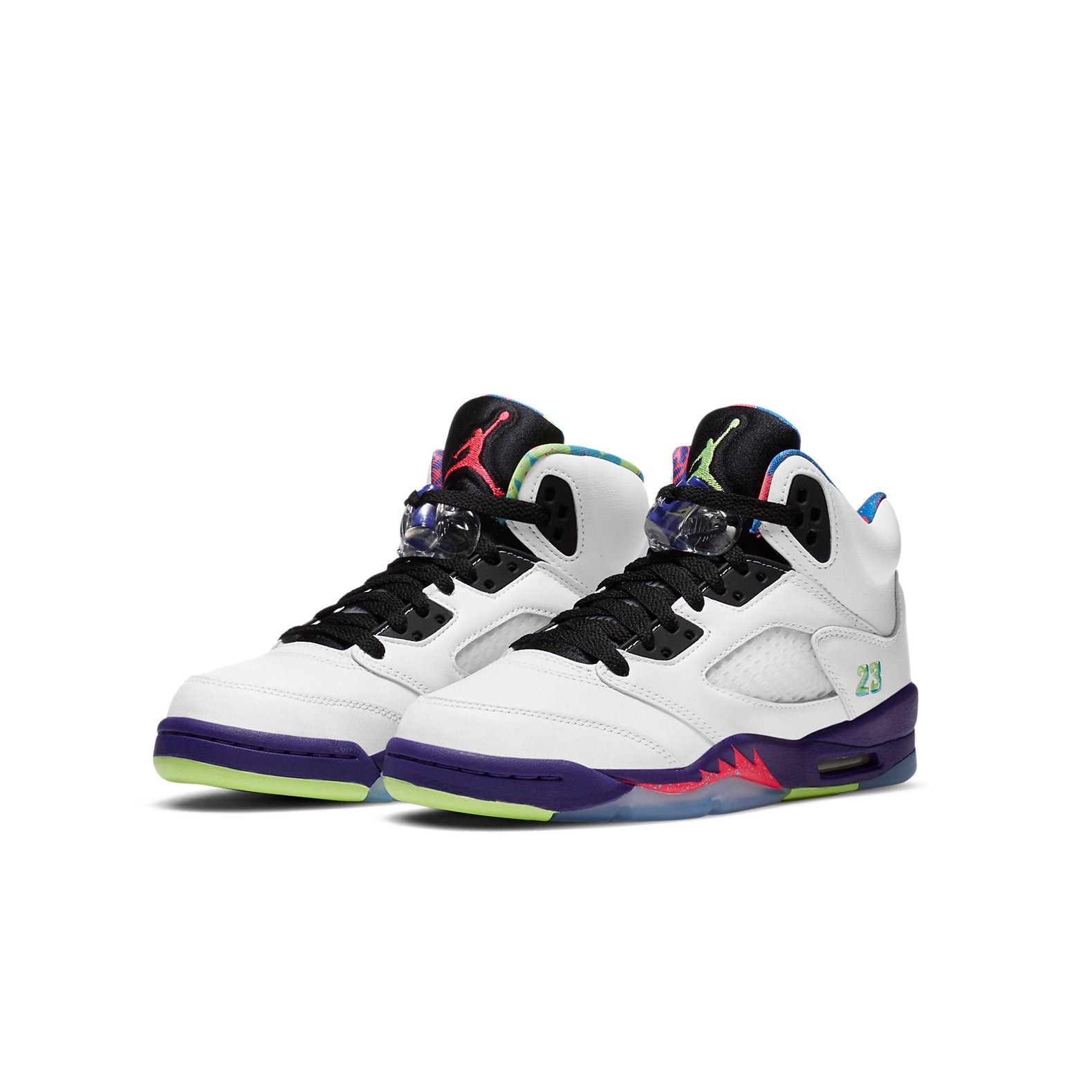 The Air Jordan 5 Retro Alternate Bel Air GS draws its influence from the 2013 Jordan 5 Bel-Air. The color scheme of these sneakers includes white, court purple, and racer pink.The midsole of this Retro Alternate Air Jordan 5 for grade schoolers is multi-colored. The shoe also displays a translucent outsole that is frosty in nature, as well as mismatched Jumpman emblems that come in a combination of green and pink hues on the tongues. The Air Jordan 5 Retro Alternate Bel Air GS retailed for $150 at the time of its release on 29th September 2020.