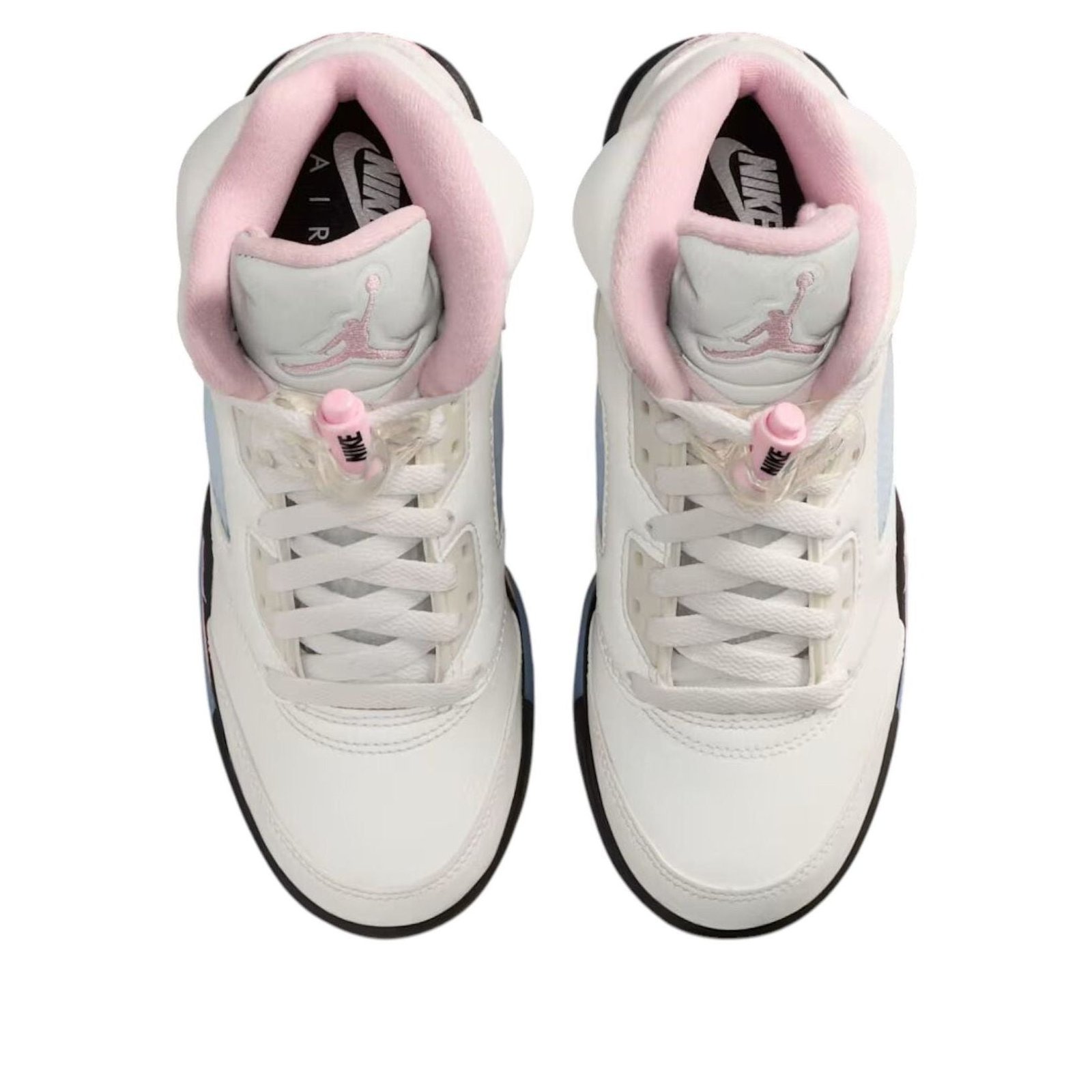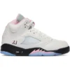 The Jordan 5 Retro Medium Soft Pink (GS) features a White/Medium Soft Pink/Black colorway. This Jordan 5 Retro was first released for $165 on October 11, 2025.