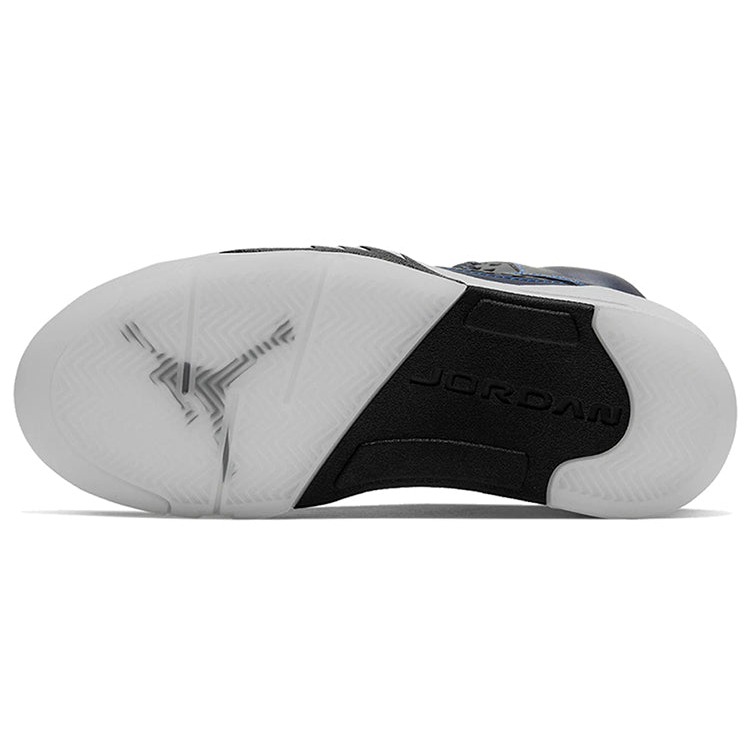 The Air Jordan 5 Retro Oil Grey W is a version of the classic 1990 Air Jordan 5 Retro in women sizing.This high-top silhouette boasts a dark blue leather upper with a 3M reflective finish. This upper is detailed with accents of black on the quarter panels, eyelets, and the Jumpman brandings embroidered at the tongue and heel. It sits atop a white midsole with a contrasting black shark-tooth graphic. Rounding out its design is a semi-translucent rubber outsole.The Air Jordan 5 Retro Oil Grey W was released on January 30th, 2020. At the time, this high-top women s shoe had a retail price of $190.