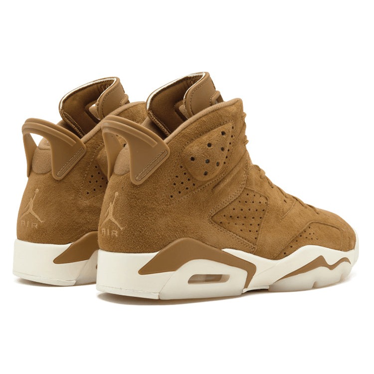 This Air Jordan 6 Retro was a part of the Holiday 2017 footwear collection from Jordan Brand. Nicknamed the « Wheat » edition, they come in an all-new golden harvest and sail colorway. Sporting a full suede upper sitting atop a sail colored midsole and milky translucent hits on the outsole. A limited release, they were available at select Jordan Brand retailers worldwide on November 22nd, 2017. They came in men’s and gradeschool sizes retailing for $190 and $140, respectively. If you’re a fan of the AJ 6, this pair is another must-have. Those looking to add a pair to their collection can buy a pair online now. If you have one to sell, hit up the marketplace and see what the « Wheat » Air Jordan 6 Retro is currently going for.