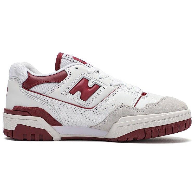 The New Balance 550 Sea Salt Burgundy is a two-tone retro basketball silhouette release. The New Balance 550 Sea Salt Burgundys upper is made of white leather with perforated side panels. It also features light grey overlays on the toe and tonal suede accents on the collar, inner tongue, heel, and rubber outsole. The midsole has a white rubber capsule. It also has white adjustable lace and a New Balance logo on the tongue and heel. The Burgundy N logo is stitched on the side, above the perforated overlays. The New Balance 550 Sea Salt Burgundy was availed on 8th May 2022, retailing at $100.