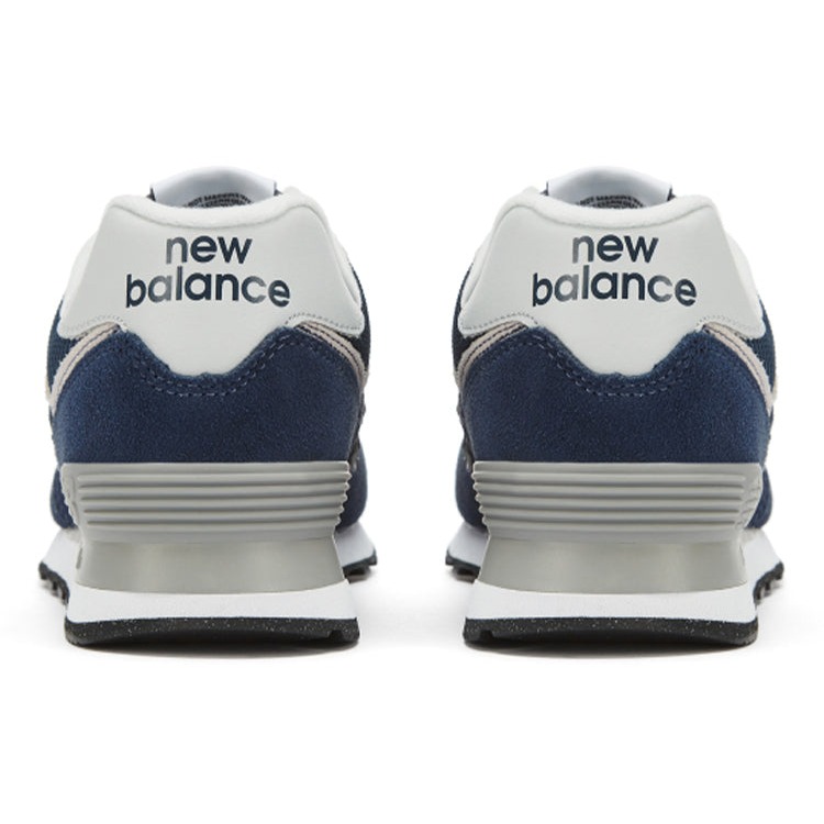 The New Balance 574 Navy White offers a comfortable lifestyle shoe in a classic colorway.The Navy White New Balance 574 has an upper that builds upon a base of navy-blue mesh. This airy base is overlaid at the toe cap, midfoot, eyestays, and heel with tonal suede. Off-white leather that matches the laces forms a collar overlay and also matches a TPU heel counter that provides rear foot stability. The blue side-panel N outlined in white offers the brand’s signature style, while the padded tongue and collar offer comfort. The two-toned EVA midsole in gray and blue is constructed with ENCAP technology for comfort and support, and rides atop a black rubber outsole.The aspect of this lifestyle shoe we enjoy the most is the heel tab. White tumbled leather sports blue New Balance branding for classic simplicity. The New Balance 574 Navy White was released on February 21, 2022, for a retail price of $95.