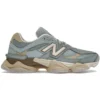 The New Balance 9060 Blue Haze comes in a blue haze, beige color palette.The New Balance 9060 Blue Haze updates a classic silhouette with an upper that is constructed from a breathable blend of synthetic and mesh materials, while the tongue and collar are cushioned for comfort. The shoe features a midsole made from EVA and rubber for padding and impact reduction. The sneaker’s outsole is constructed with a tough rubber tread that is both grippy and durable. The shoe has the signature « N » on the lateral sides, « NB 9060 » on the tongue, and « NB » branding on the heel.The New Balance 9060 Blue Haze was released on February 3, 2023, and retailed for $150.
