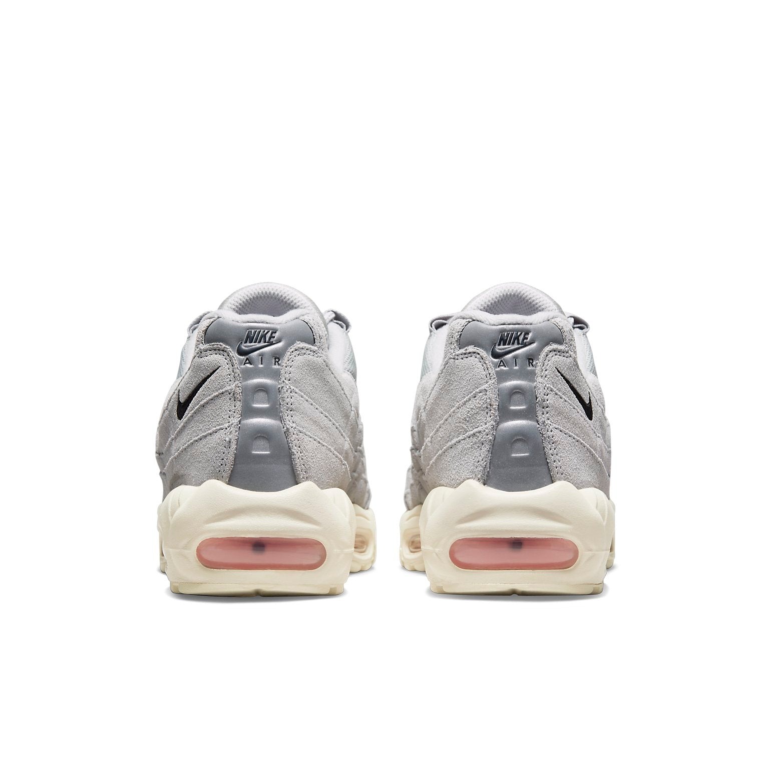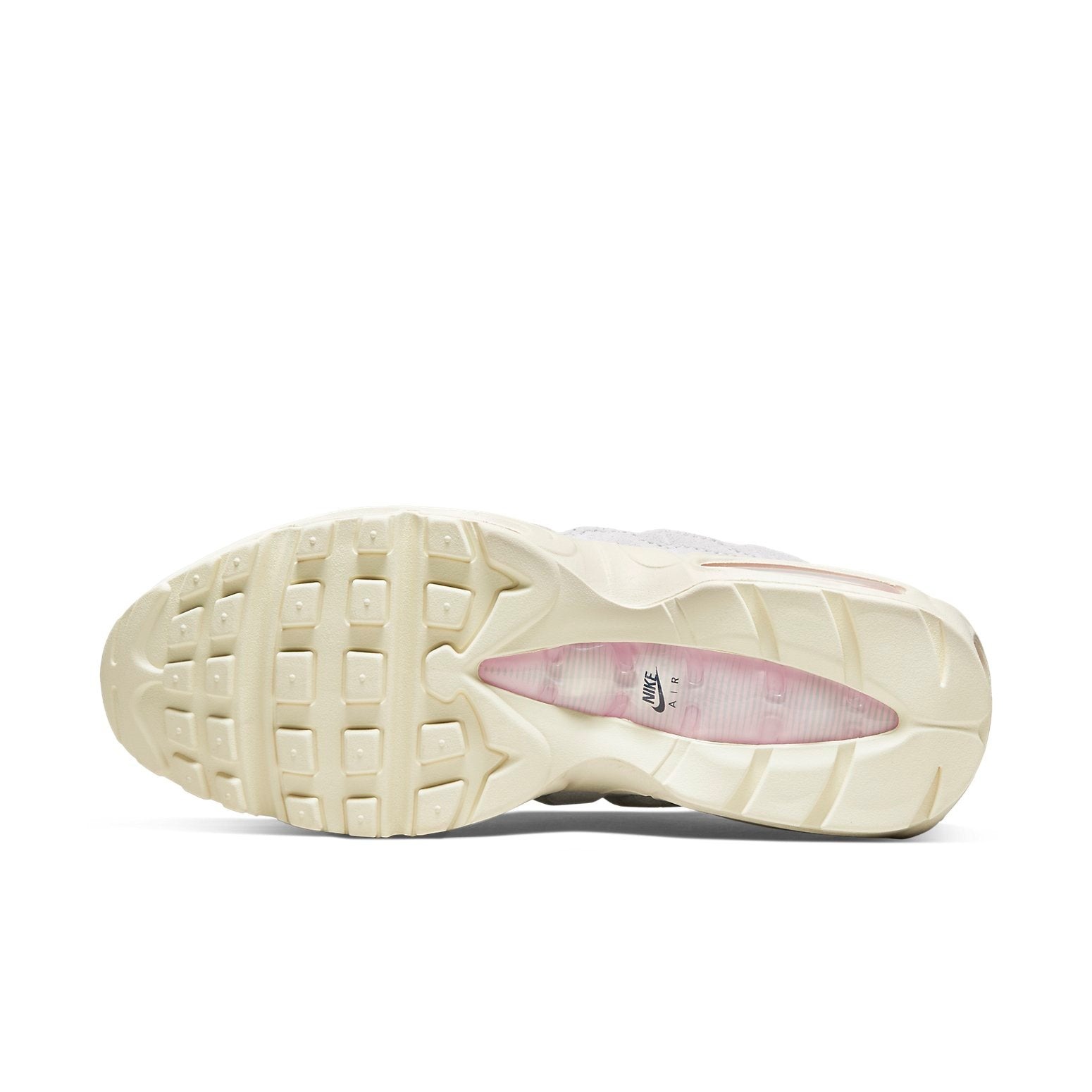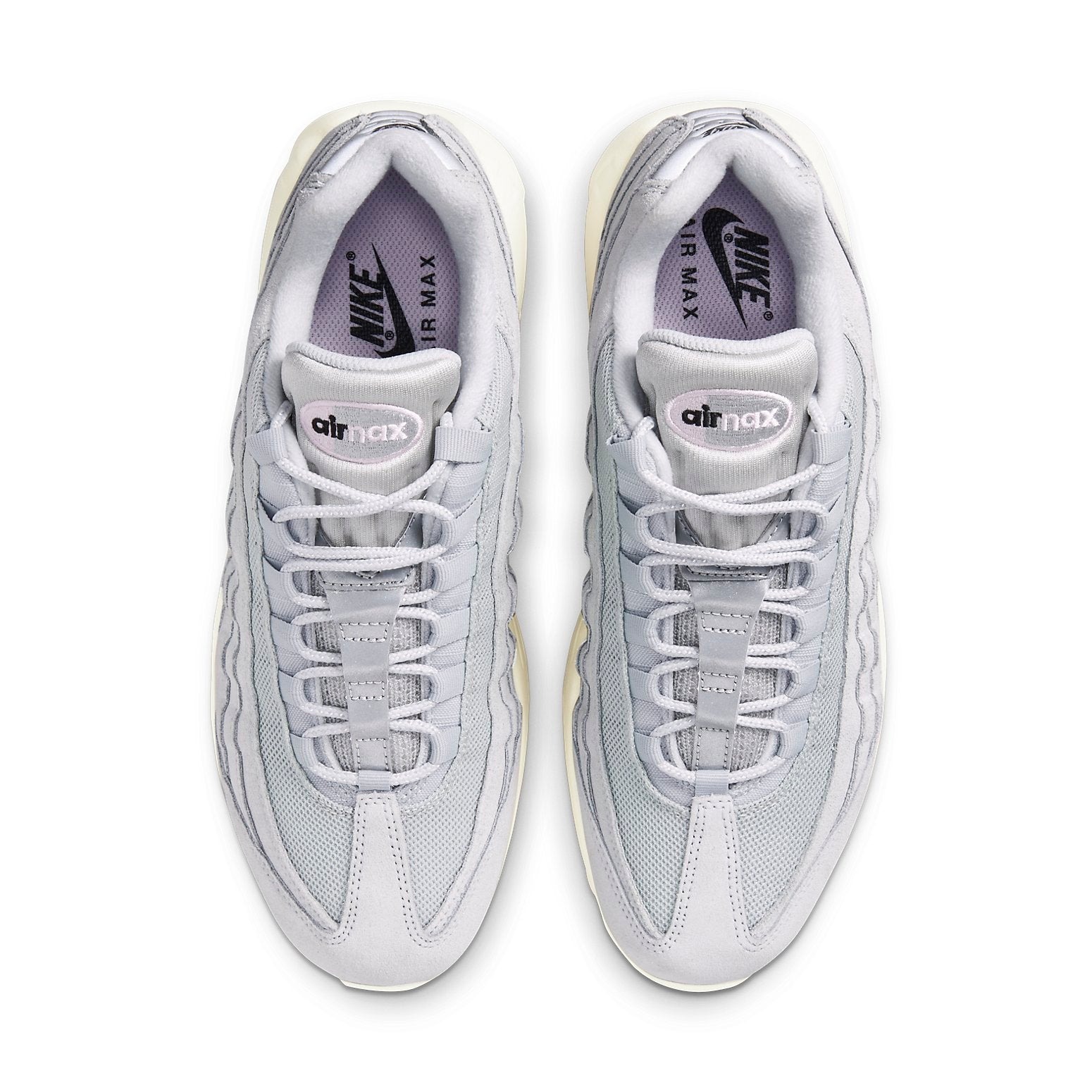The Nike Air Max 95 Grey Fog Pink Foam joins the Air Max lineage with a soft color scheme and premium materials.Like other Air Max models, the « Fog Pink Foam » version boasts a flighty silhouette created by the pressurized Air Max unit in the midsole. The combination of leather and suede in the upper gives the shoe long-lasting durability without stiffness. The suede part of the sneaker features a wavy design with layers that overlap each other. The sneaker does not come with eyelets or a traditional lace cage. Instead, synthetic material forms loops that the laces thread through. A small Swoosh adorns the side of the heel and stands out against the grey upper.Our Newsole experts love the pink Air Max units that can be seen through several windows along the midsole. The Nike Air Max 95 Grey Fog Pink Foam was released on August 31, 2023, and retailed at $185.