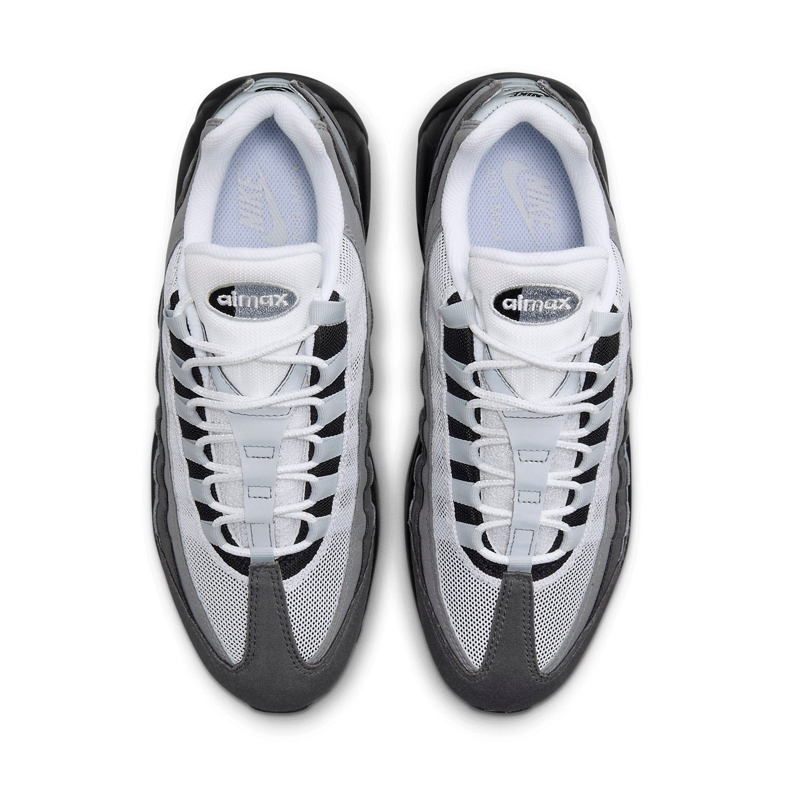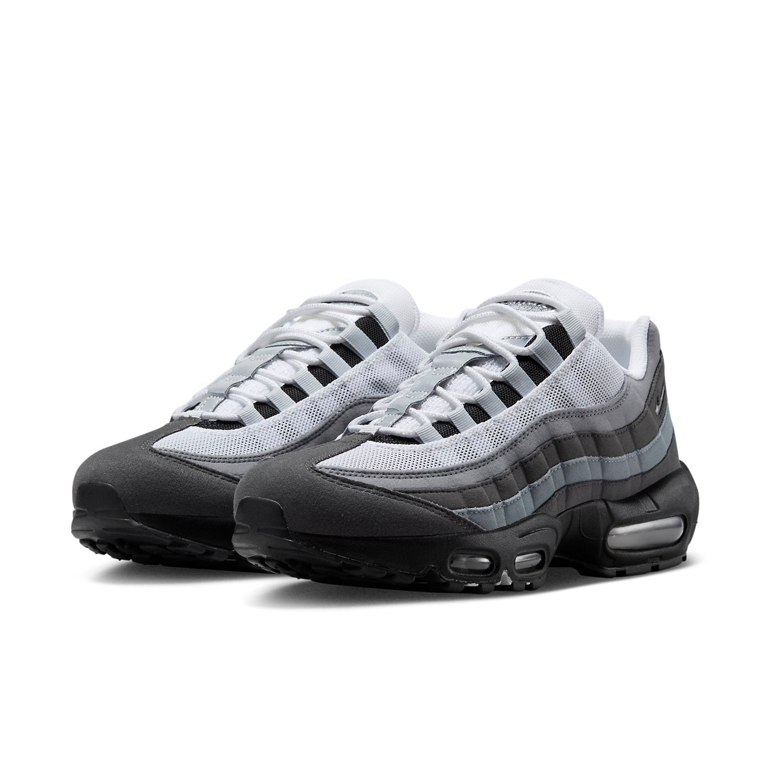 In grey and dark grey overlays laid on a textile underlay, the Nike Air Max 95 Jewel Swoosh Grey continues its legacy of classic footwear built for comfort.The iconic sole of this Air Max 95 features a dark grey rubber outsole and a shiny black with instances of a transparent Air Max unit on the forefoot and heel. The dark grey hue returns to the suede overlay covering the mudguard. For aeration, the upper is fully textile with a white netting base. On the quarter panels are several layers with alternating dark grey and grey suede finishes and the mesh underlay topping them off at the eye stay. Branding appears on a swoosh on the lateral quarters, air max writing on the tongue, and black NIKE AIR embroidery on the counter.Newsole experts love the stylish lace-up closure on the Nike Air Max 95 Jewel Swoosh Grey. It features round cord laces looping through grey webbing, a seamless black eye stay, and a white padded tongue. On May 23rd, 2023, this shoe was released for $180.