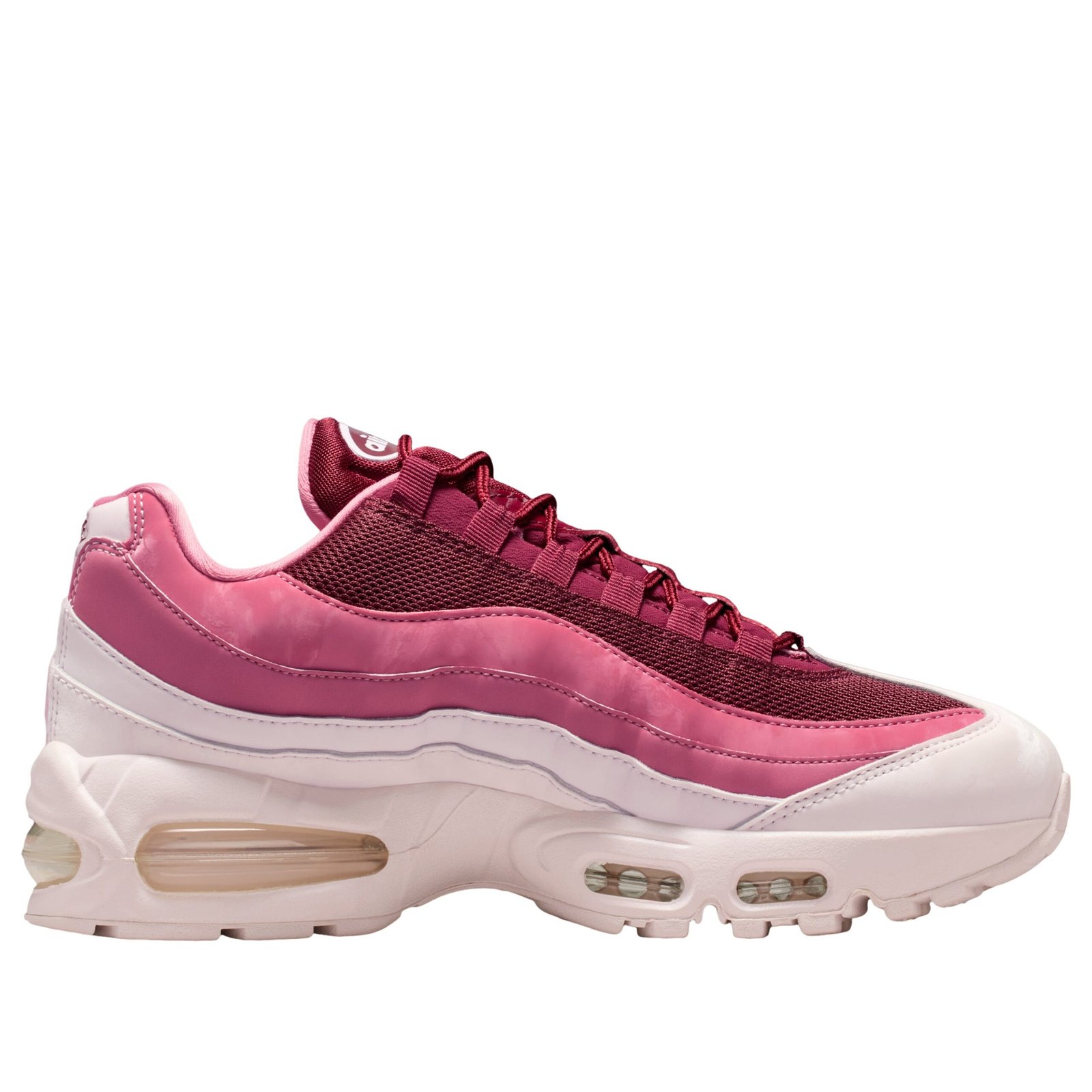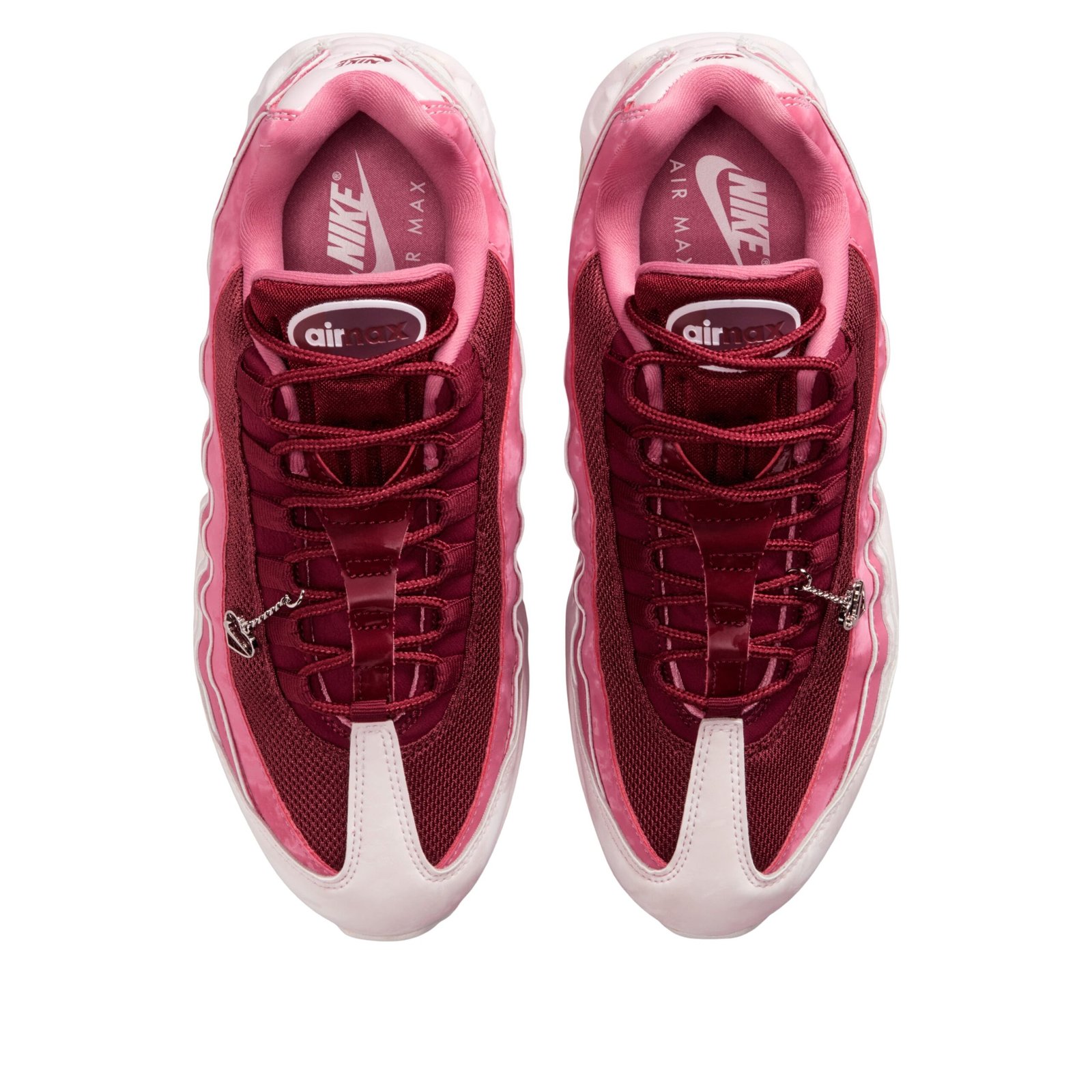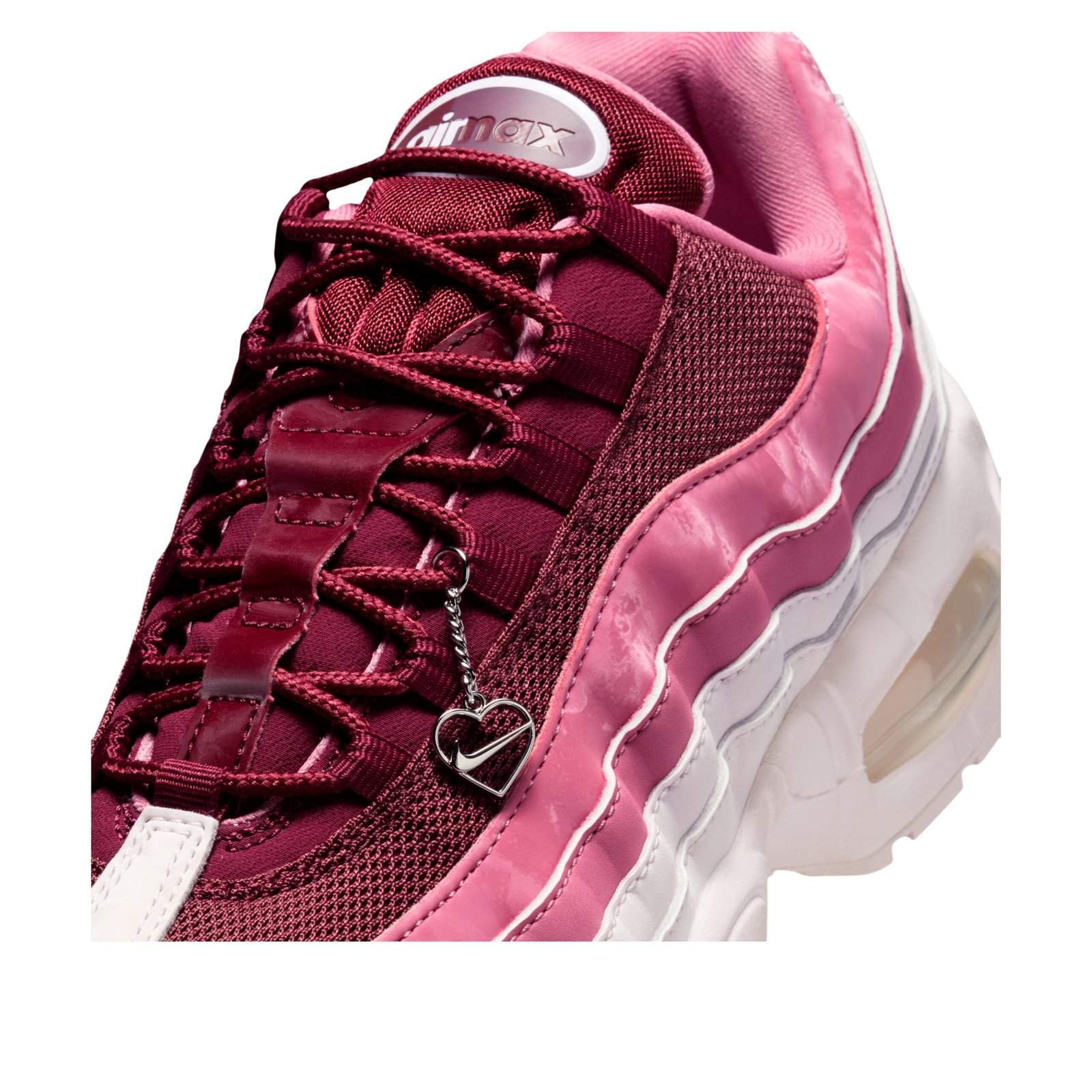 The Nike Air Max 95 OG Valentines Day 2026 Womens embraces romantic tones while preserving the silhouette unmistakable edge. Team Red cascades across the layered panels, complemented by softer Peony and Pearl Pink accents that create depth within the gradient. The visible Air cushioning keeps the performance identity intact beneath the expressive colorway. Valentines Day releases often lean playful, and this interpretation feels bold yet wearable thanks to the structured Air Max 95 design. The blend of red and pink shades highlights the wavy side panels beautifully, making the shoe stand out without feeling costume driven. For those who appreciate seasonal drops that still carry strong everyday appeal, this pair strikes that balance confidently. The Nike Air Max 95 OG Valentines Day 2026 Womens was released on January 14, 2026 with a retail price of $200.