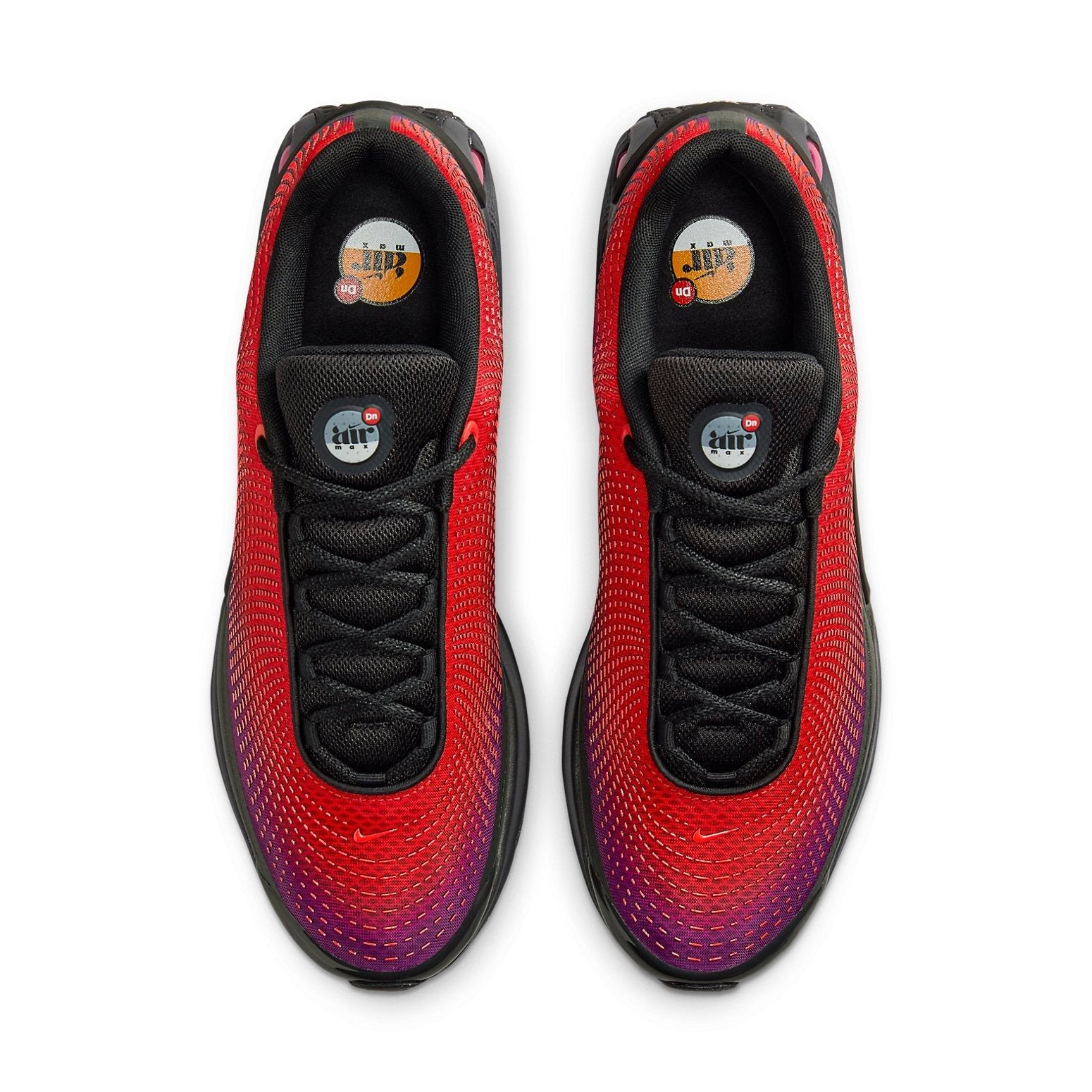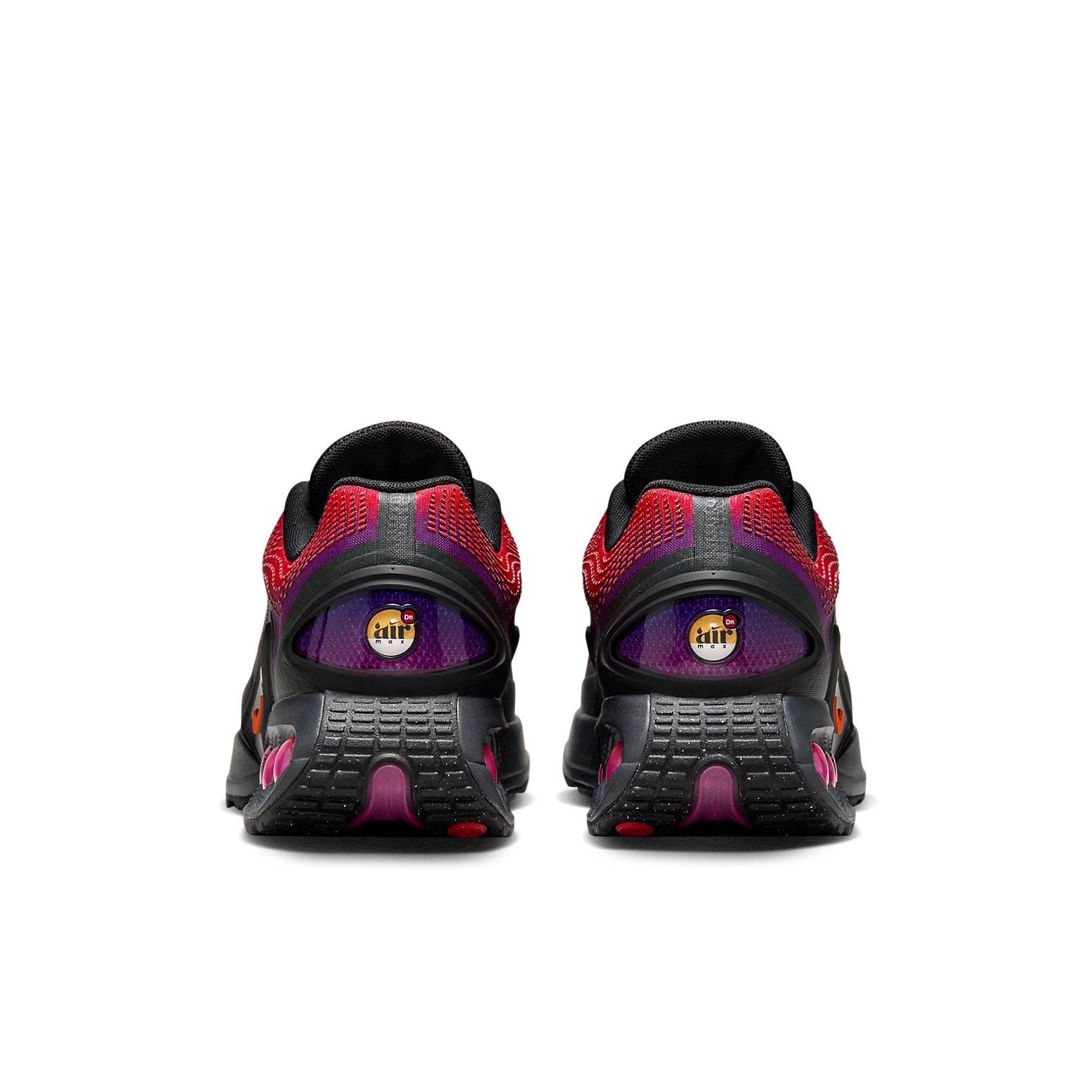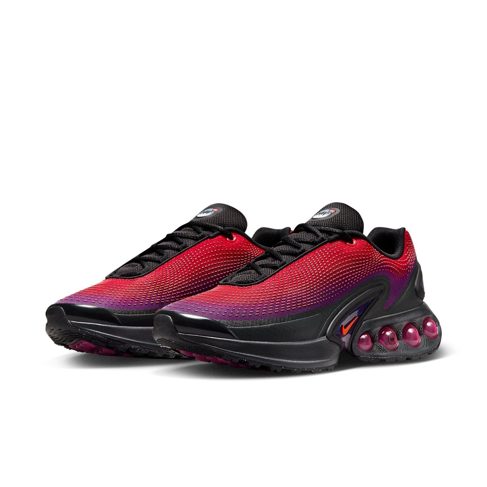 The Nike Air Max Dn All Day is a performance sneaker that features Dynamic Air cushioning in the form of double pressure tubes.This colorway of the Nike Air Max Dn comes with a mesh upper for flexibility and breathability. The upper fades start as a deep red at the top of the shoe around the laces and fades into a deep purple towards the bottom of the shoe. There is a haptic pattern present all the way around. A shiny black toe cap blends into a matte black mudguard that extends around the shoe. Red Nike swooshes appear on the arch supports, and Air Max Dn logos are seen on the heel and tongue. A chunky black outsole completes the look, and four circular transparent Dynamic Air units appear in pink in the heel.Our favorite thing about this sneaker is the ombre color scheme of the upper, which almost looks like a sunrise. The Nike Air Max Dn All Day was introduced on March 26, 2024, for a retail price of $160.