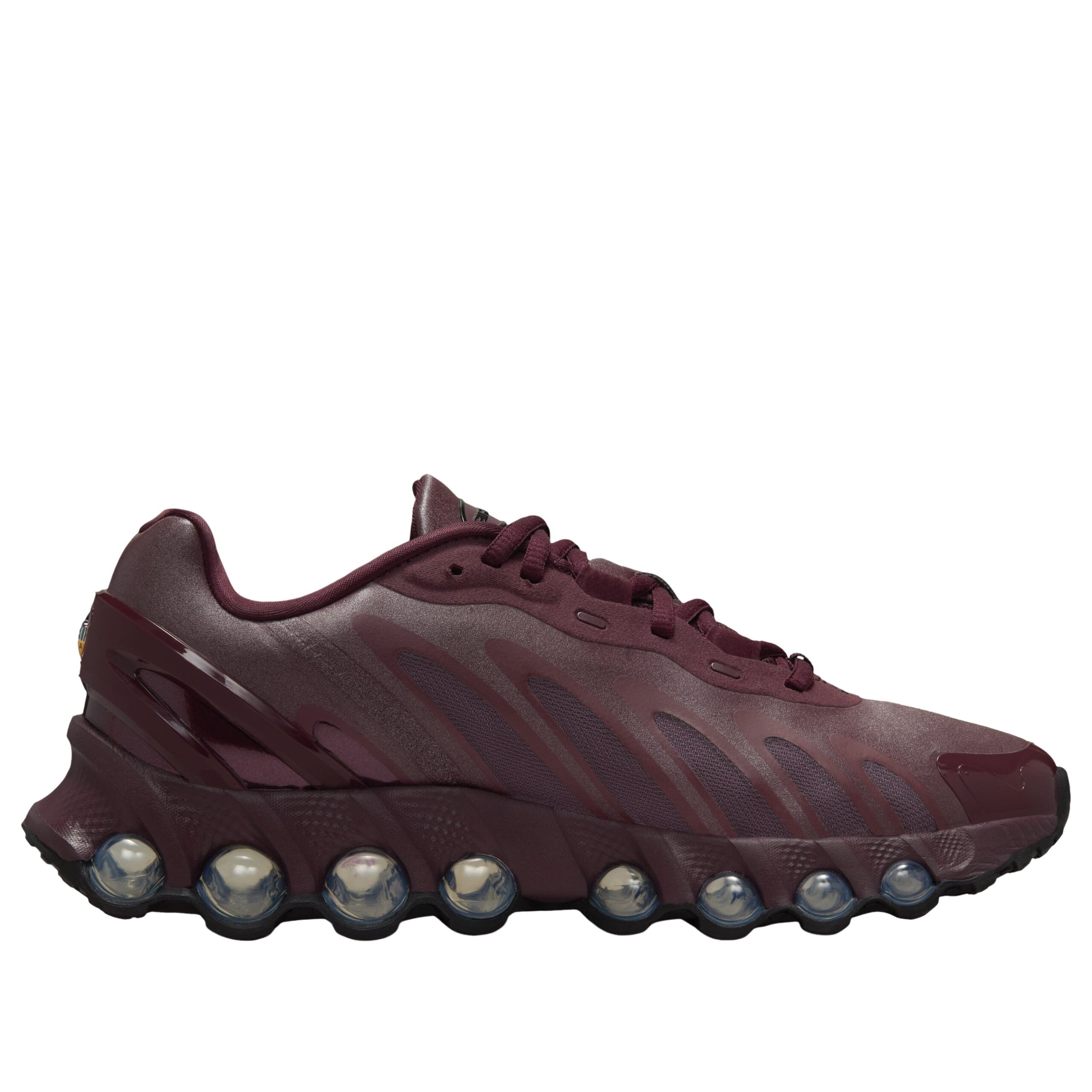 The Nike Air Max Dn8 Burgundy Crush (Womens) features a Burgundy Crush/Burgundy Crush/Metallic Silver/Black colorway. This Nike Air Max Dn8 was first released for $200 on November 01, 2025.