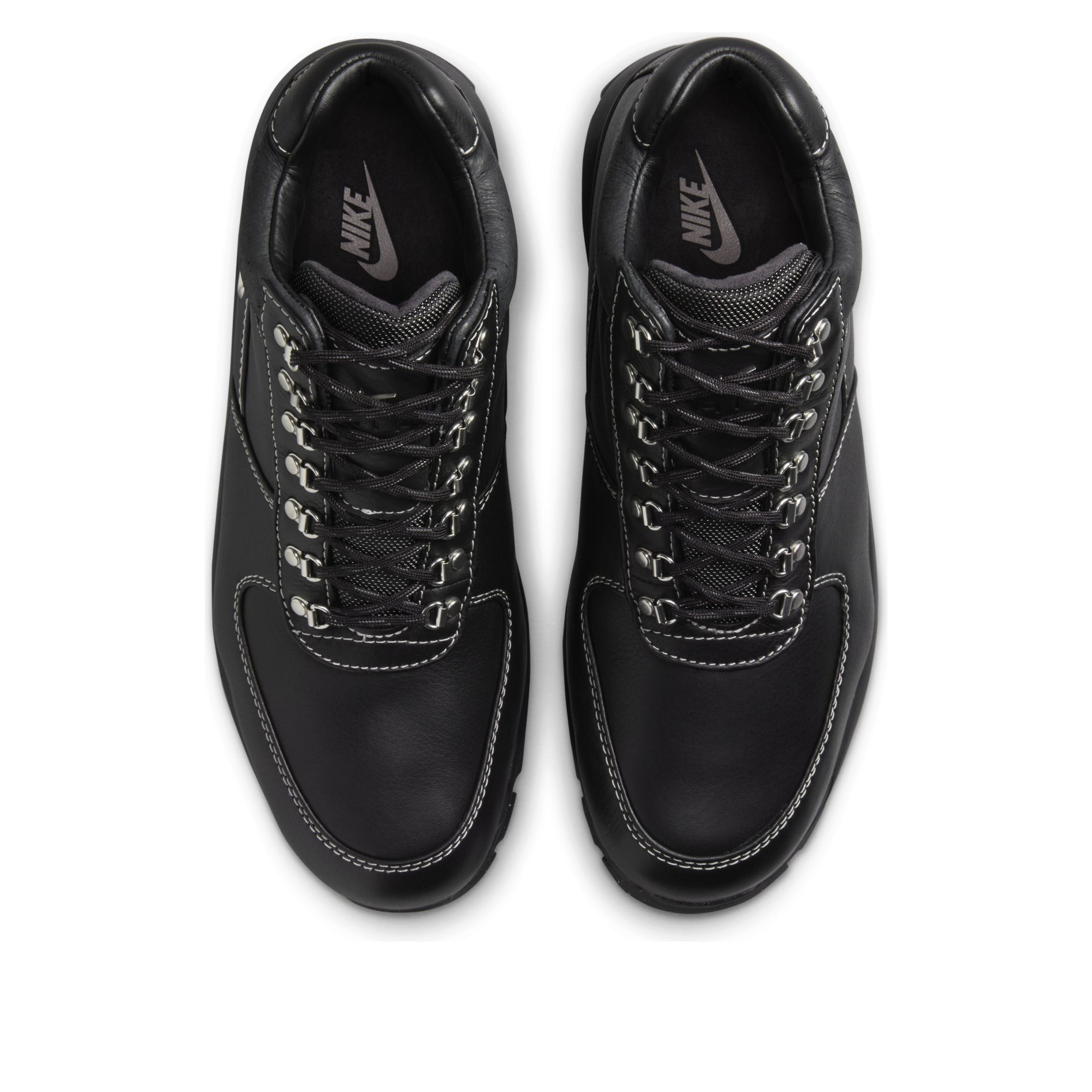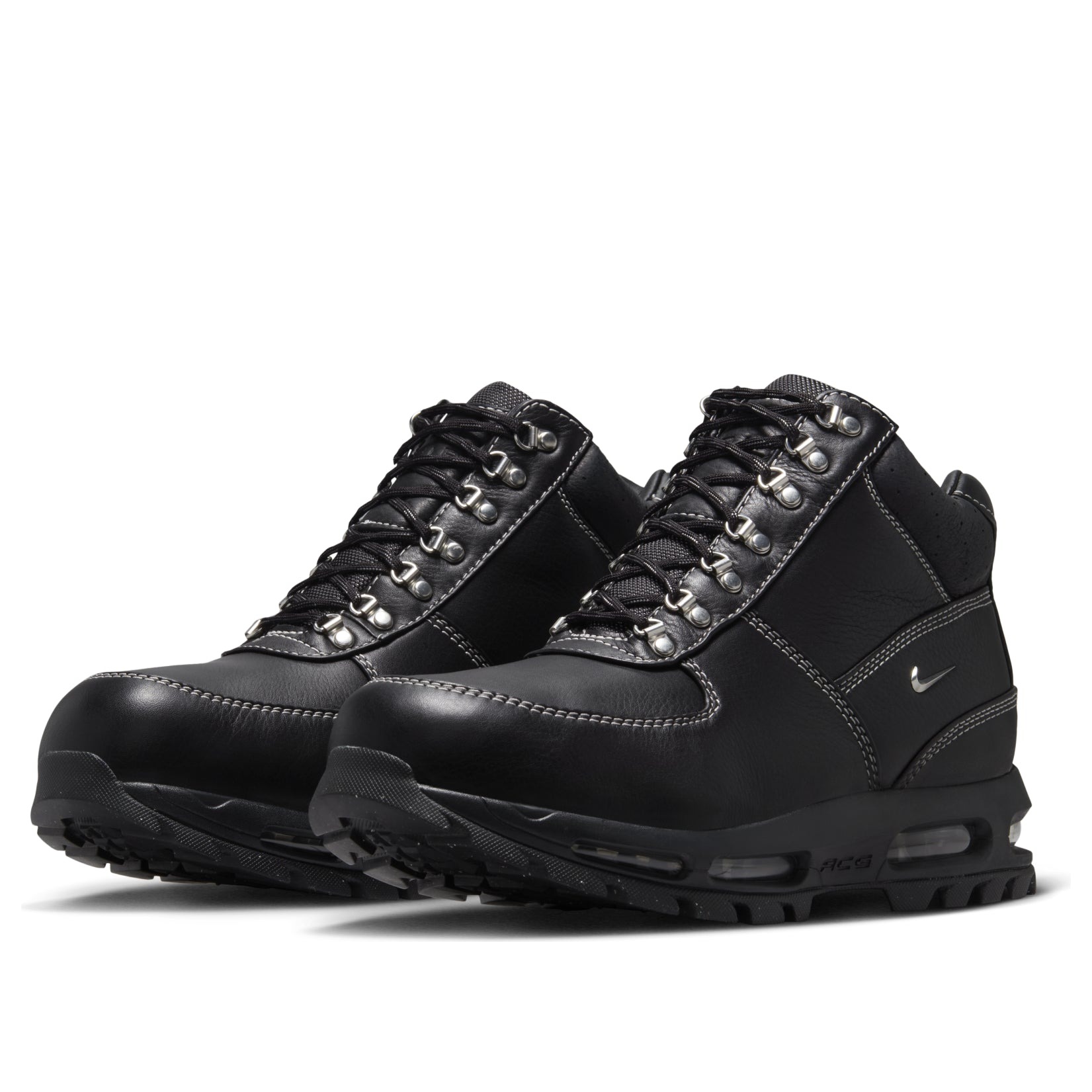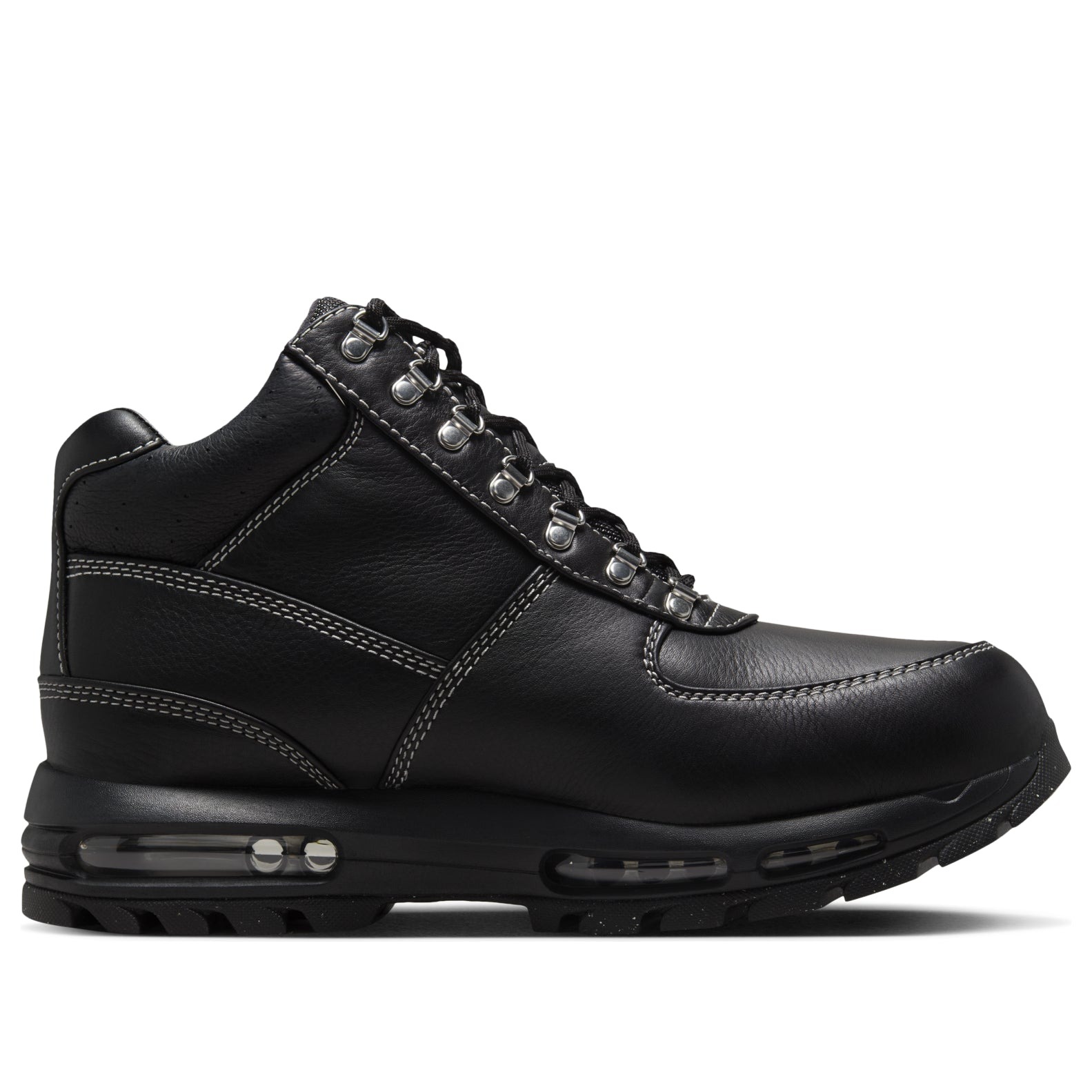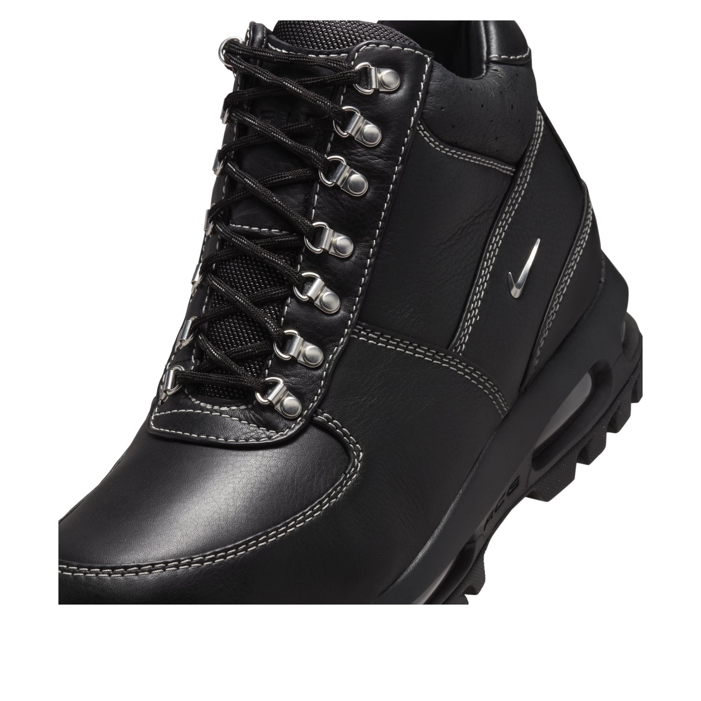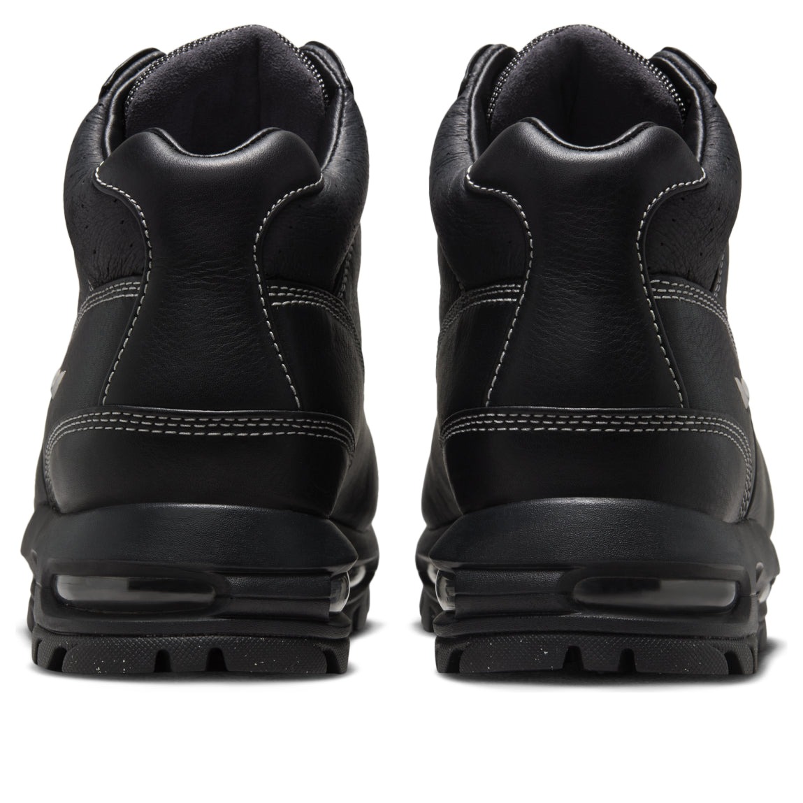 The Nike Air Max Goadome PRM Black Off Noir is a premium iteration of the iconic boot-inspired sneaker. Featuring a sleek all-black upper crafted from high-quality materials, this shoe combines durability with style. The rugged outsole provides excellent traction, making it suitable for various terrains and weather conditions. The Air Max unit in the heel offers superior cushioning and comfort, ensuring all-day wearability. This model showcases Nikes commitment to blending performance and fashion. The Off Noir colorway adds a subtle depth to the black silhouette, creating a sophisticated look thats versatile enough for both casual and more polished outfits. With its robust construction and timeless design, the Air Max Goadome PRM is built to last, offering both functionality and style in one package. We at Newsole believe this product is great for those seeking a durable, comfortable, and stylish boot-sneaker hybrid that can withstand the elements while maintaining a sleek urban aesthetic.