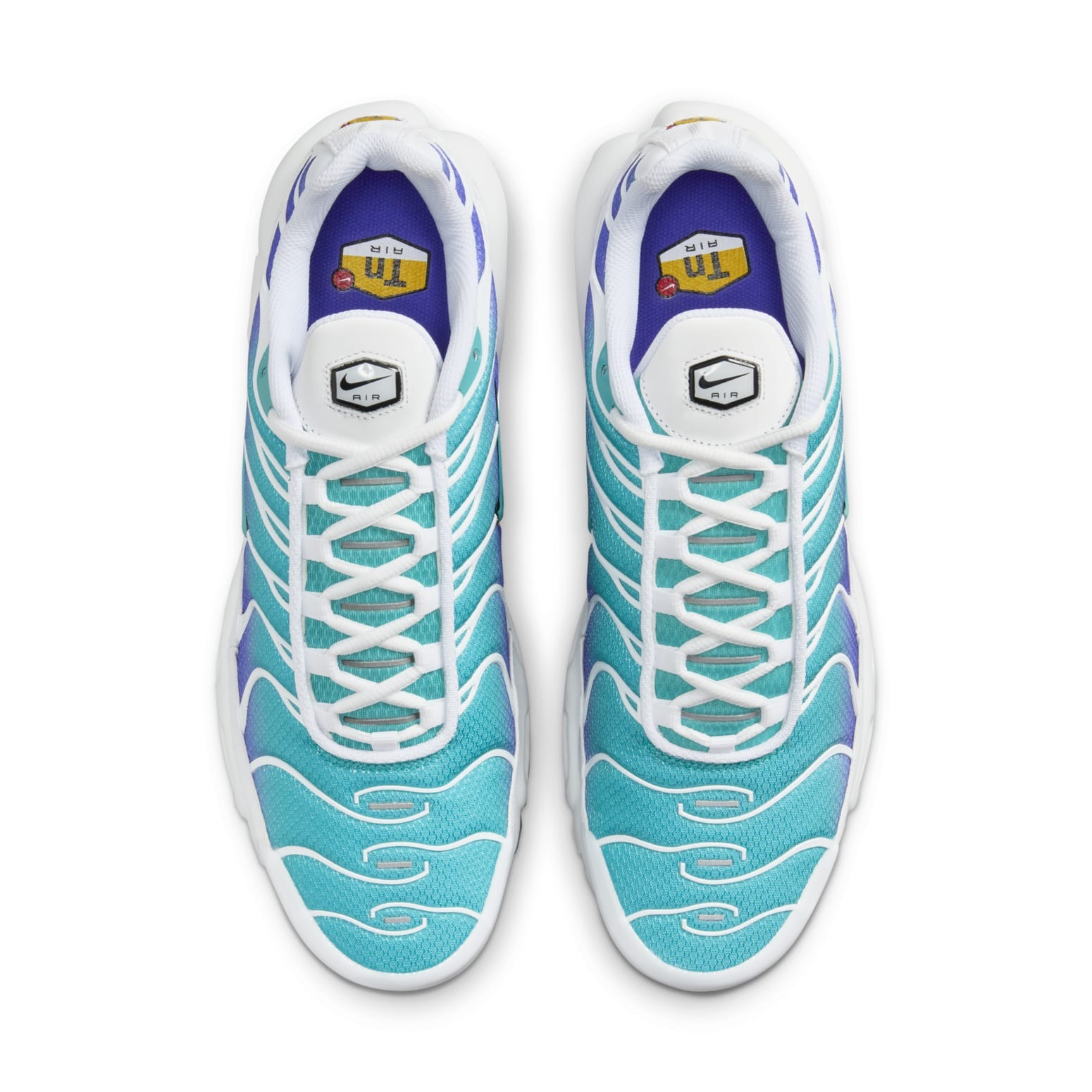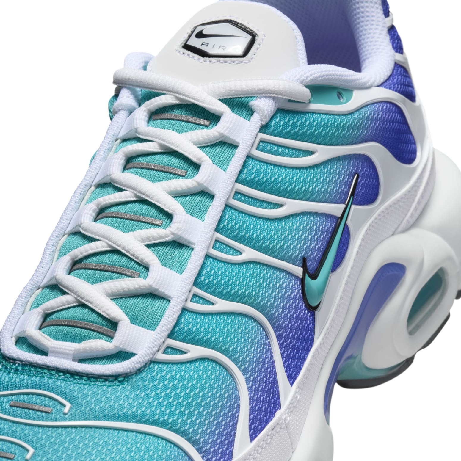 The Nike Air Max Plus Aqua showcases a refreshing color scheme on the iconic Air Max Plus silhouette, adding vibrant tones that evoke a sense of dynamism and energy. The Aqua Nike Air Max Plus comes with a durable mesh upper with synthetic overlays, ensuring durability and breathability. The upper showcases a vibrant gradient design, transitioning from Persian Violet (deep blue) to Dusty Cactus (bright aqua), with the color scheme complemented by the signature wavy lines that have come to define the Air Max Plus series. A glossy TPU cage with reflective details adds a touch of sci-fi sleekness, while Nike Swooshes, a TN badge, and a tongue tag complete the look with signature branding. Underfoot, advanced Tuned Air tech provides cushioning and support. What our experts love about the Nike Air Max Plus Aqua is its advanced Tuned Air technology, which uses targeted air pockets for adaptive cushioning, shock absorption, and a smooth, responsive ride. The sneaker retailed for $180 on October 5, 2024.