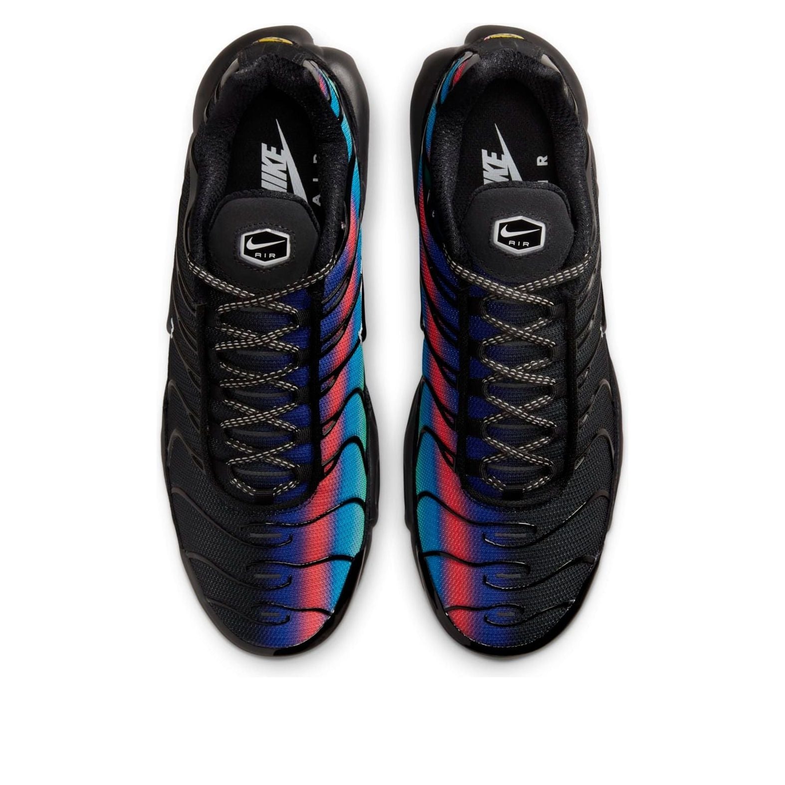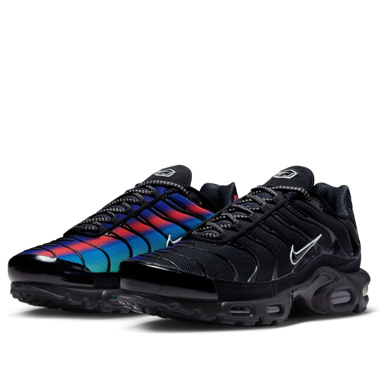 The Nike Air Max Plus Black Blue Red was made available as part of the brand’s mission to continue producing the Air Max series. Crafted by Sean McDowell, the shoe arrives in a black/red/blue colorway.The Nike Air Max Plus Black Blue Red was designed by streamlining the exterior « Lava » cage to form the upper mesh. The entirety of the upper mesh is adorned with reflective schemes. Also, the entire upper is dressed in a reflective material, coating the mesh shell. The shoe also features the Swoosh logo and Lava streaks, but Nike does not use reflective capacity this time, creating a contrasting theme.Our experts think the standout feature in the Nike Air Max Plus Black Blue Red is the chunky and blacked-out TN Air Max midsole revealing hits of a red-to-blue gradient. The Nike Air Max Plus Black Blue Red was released at a retail price of $175 on August 27th, 2022.