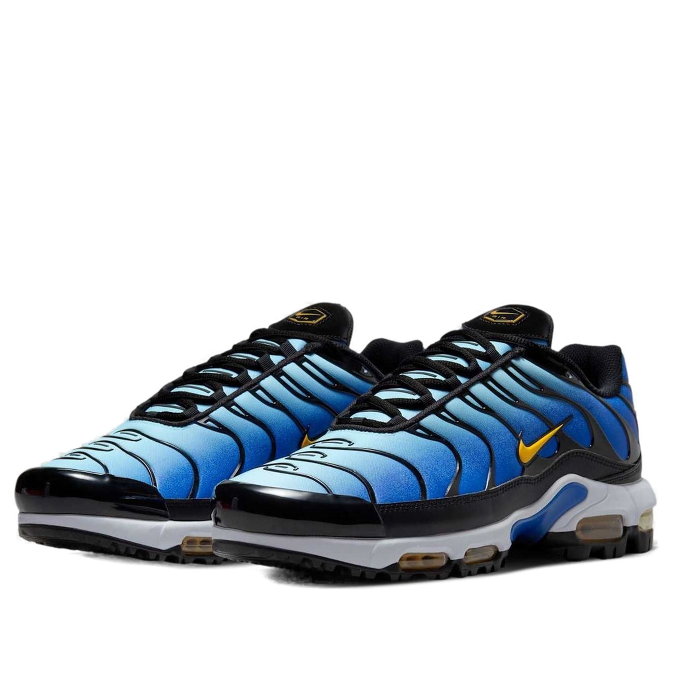 The Nike Air Max Plus Golf Hyper Blue features a Hyper Blue/Sky Blue-Midnight Navy-Infinite Gold colorway. This Nike Air Max Plus Golf was first released for $185 on January 24, 2025.