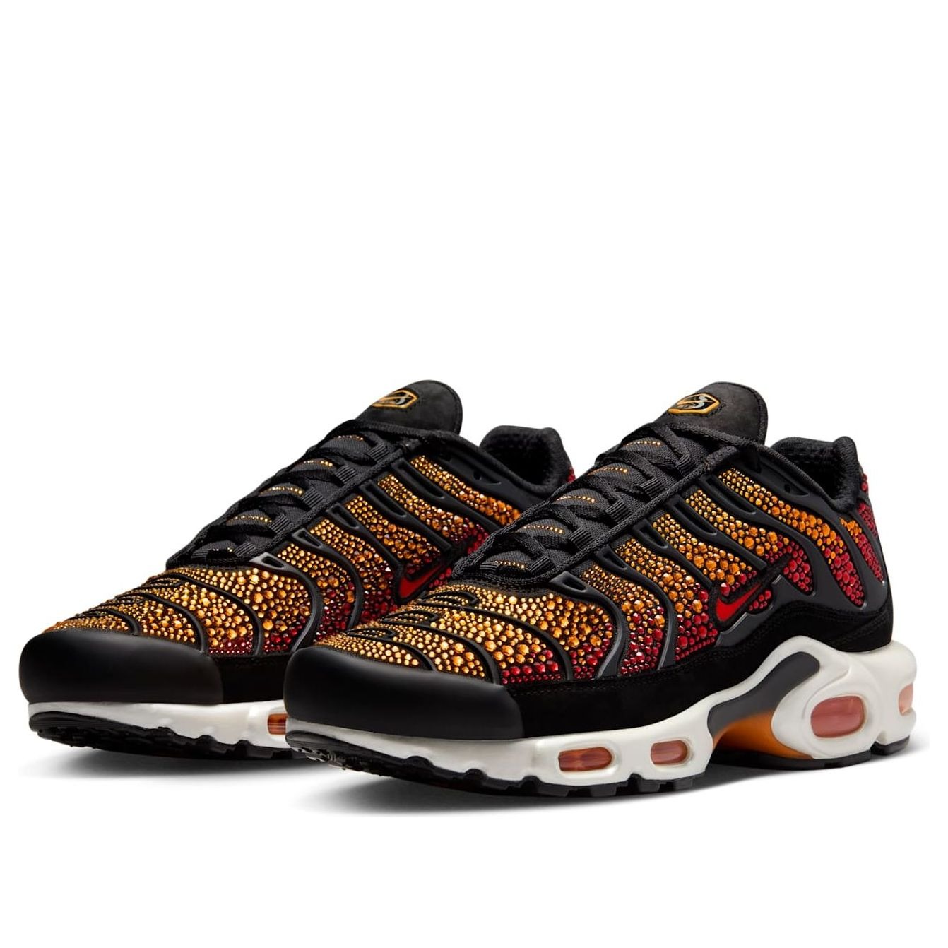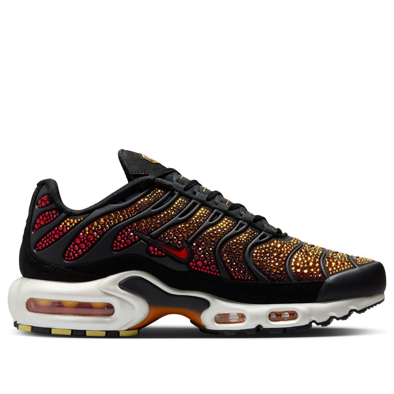 The Nike Air Max Plus Swarovski Sunset (Women’s) features a Black/Fire Red/Pimento/Bright Ceramic/Saturn Gold colorway. This Nike Air Max Plus was first released for $550 on December 05, 2024.