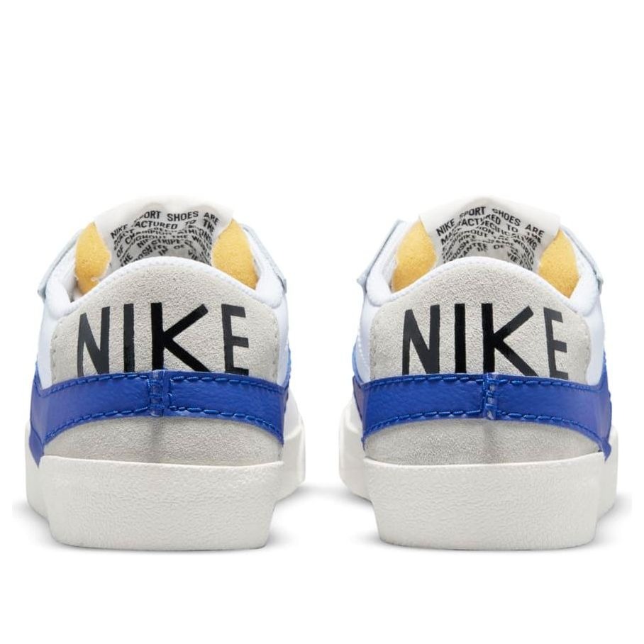 The Nike Blazer dates back to 1973 and was one of the first basketball sneakers Nike ever put out. It has managed to stand the test of time, though, and Nike has even come up with ways to modernize its look. The Nike Blazer Low 77 Jumbo White Old Royal showcases it in a whole new light without altering its design altogether.This version of the Nike Blazer has a mostly white leather and suede upper, with small hints of gray on the toe and heel. It also has stitching throughout it done with extra-thick thread to give it a bolder appearance. There are jumbo laces on this Blazer as well, along with vintage Nike branding on the tongue and heel.But the things our experts like most about this Nike Blazer are its oversized blue Swooshes. They make the Blazer look right at home in the present day without compromising the integrity of this classic silhouette. The Nike Blazer Low 77 Jumbo White Old Royal was released on April 11, 2022, when it retailed for $95.
