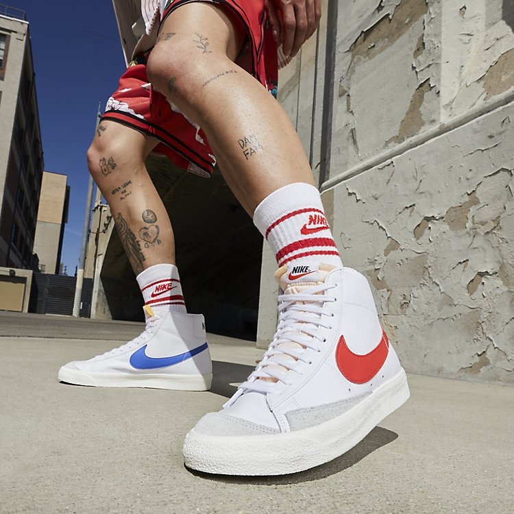 Nike Blazer Mid 77 Vintage Mismatched Swoosh Blue Red