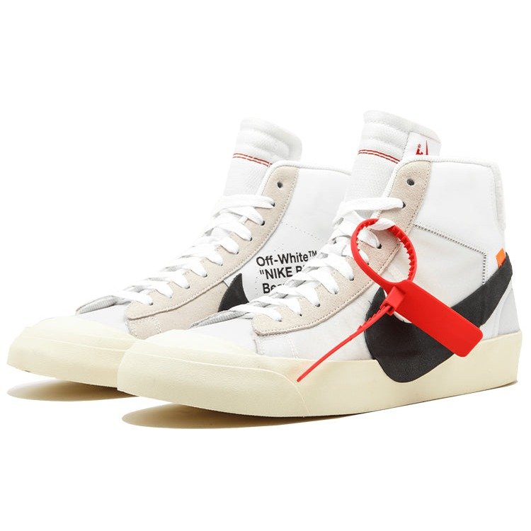 An integral part of Virgil Abloh’s debut Nike collaboration titled The Ten the Nike Blazer Mid Off-White reflects Abloh’s appreciation for reconstruction in design. This Blazer features a leather and mesh off-white upper with oversized Swoosh overlays that overlap the midsole and a grey Durabuck heel tab.