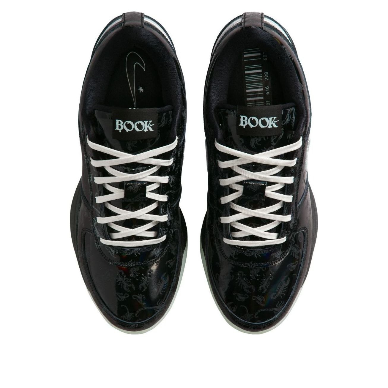 The Nike Book 1 Halloween (2025) features a Black/White/Black colorway. This Nike Book 1 was first released for $155 on October 22, 2025.