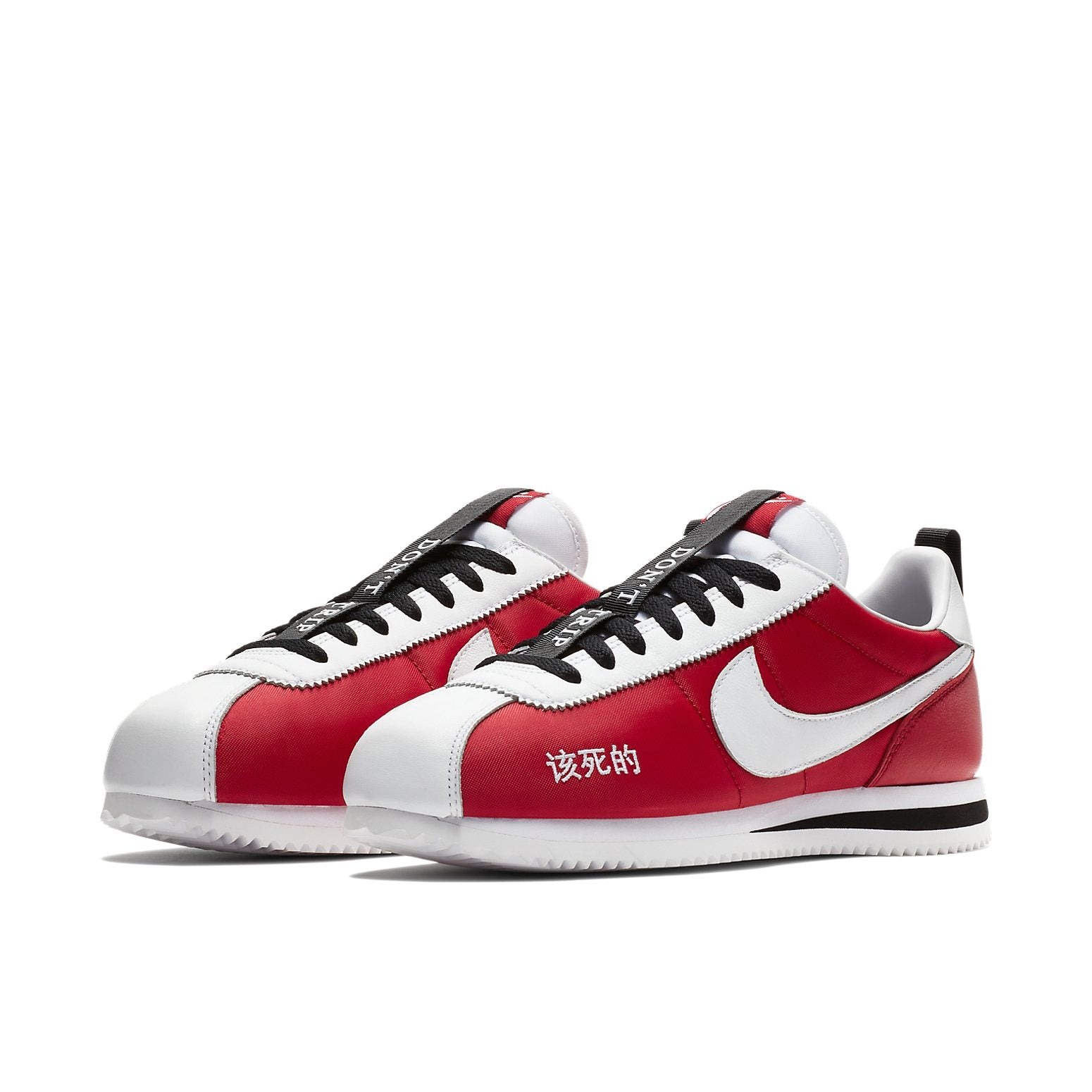 The Nike Cortez Kenny 2 Kendrick Lamar Kung Fu Kenny is a low-top sneaker with Kung Fu influence, specifically from Kendrick Lamar s alter ego « Kung Fu Kenny. » The Kenny 2 features a red, white, and black colorway dispersed in Nike Cortez styling.A red mesh upper takes center stage with a large white leather swoosh hitting the panels. Around the forefoot is the Chinese translation of the word « DAMN » written in white while a « Don t Trip » strip lines the nylon tongue. Further down, the Kenny 2 sport a classic Cortez sole unit, this time done in black and white like on the Kenny 1. The laces and heel pull tab dressed in black complete the Cortez Kenny 2 color scheme.What our experts love about the Cortez Kenny 2 Kendrick Lamar Kung Fu Kenny are the accents that work alongside the contrasting colorway. The Don t Trip lace holder and Chinese writings on the forefoot give the classic Cortez a stylish twist. The Nike Cortez Kenny 2 Kendrick Lamar Kung Fu Kenny was released on February 17, 2018, retailing for $100.