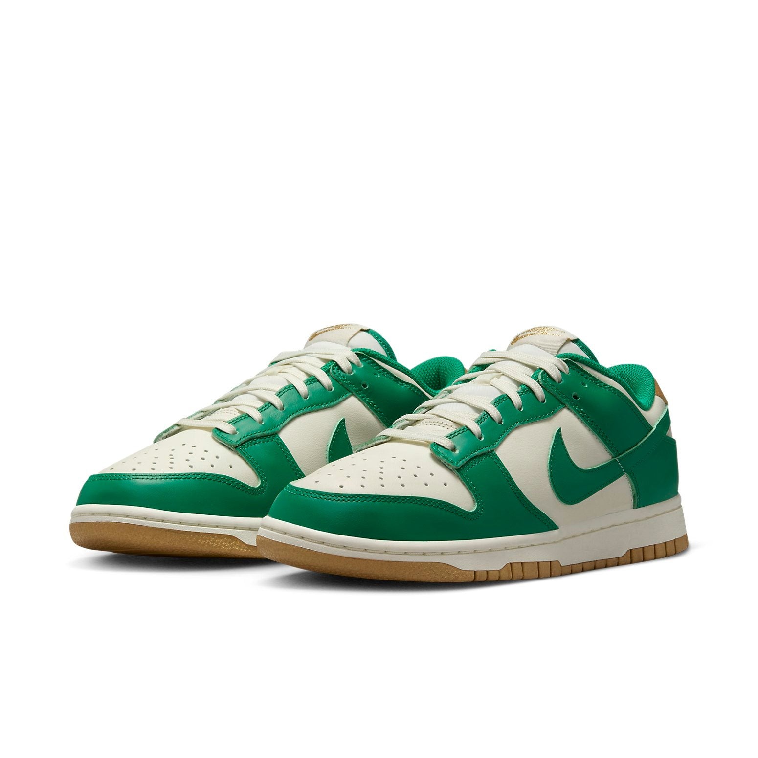 The Nike Dunk Low Malachite University Gold (Women s) is a classic low-top silhouette that comes in a bold, standout colorway. This iteration of the Nike Dunk Low designed for women has a white leather base perforated at the toebox. Sail-Malachite leather overlays are seen around the heel, under the laces, and lining the toe. The iconic Nike Swoosh also appears in green leather on the quarter panel. Gold accents are found on the heel and on the tongue. Nike branding appears on the gold part of the heel in white, and in gold on the white tongue tag. The sole has a linear pattern for traction. What we appreciate most about this shoe are the gold accents on the heel and tongue. The gold subtly complements the deep green of the leather overlays, adding an unexpected touch of elegance. The Nike Dunk Low Malachite University Gold (Women s) was released on November 3rd, 2022, for a retail price of $110.