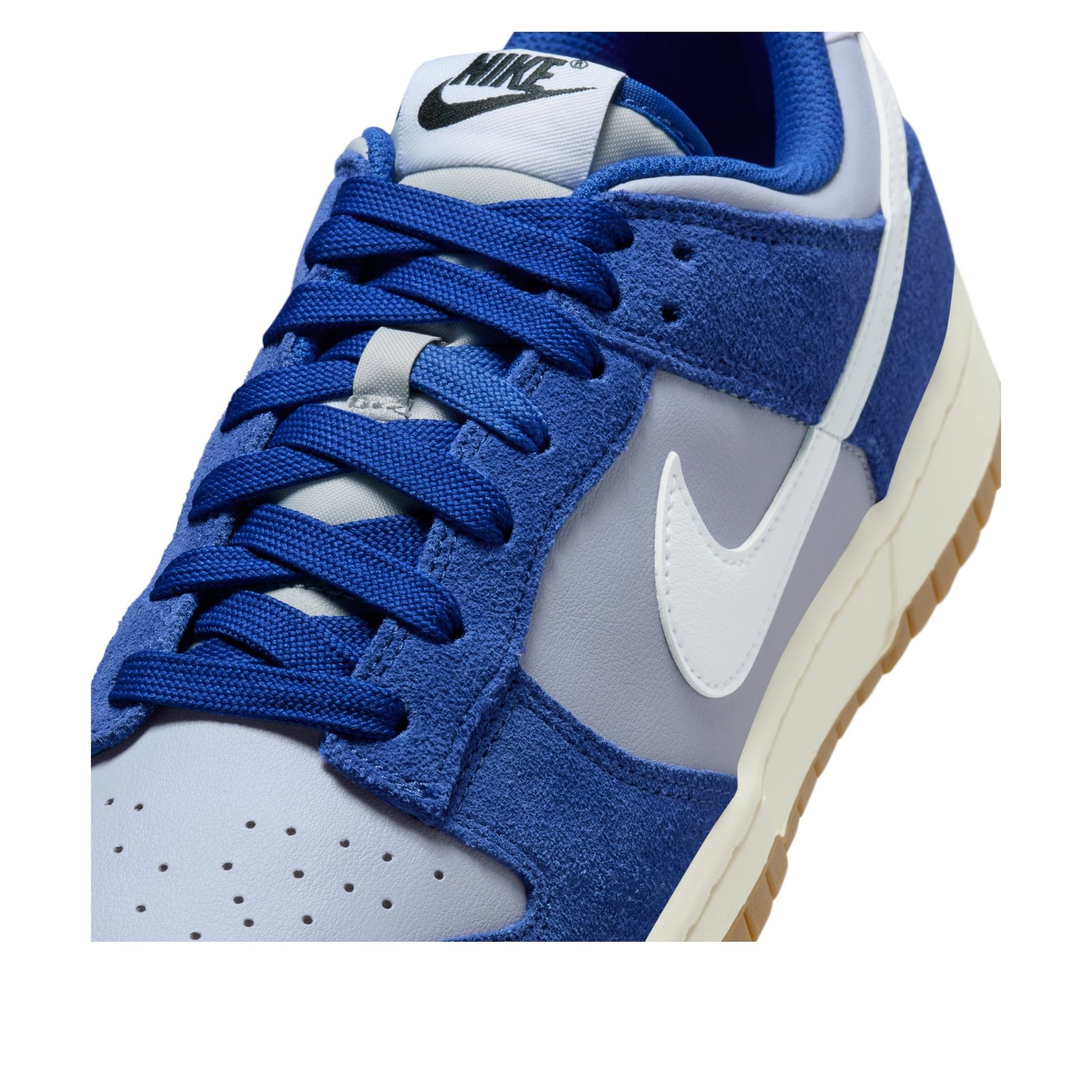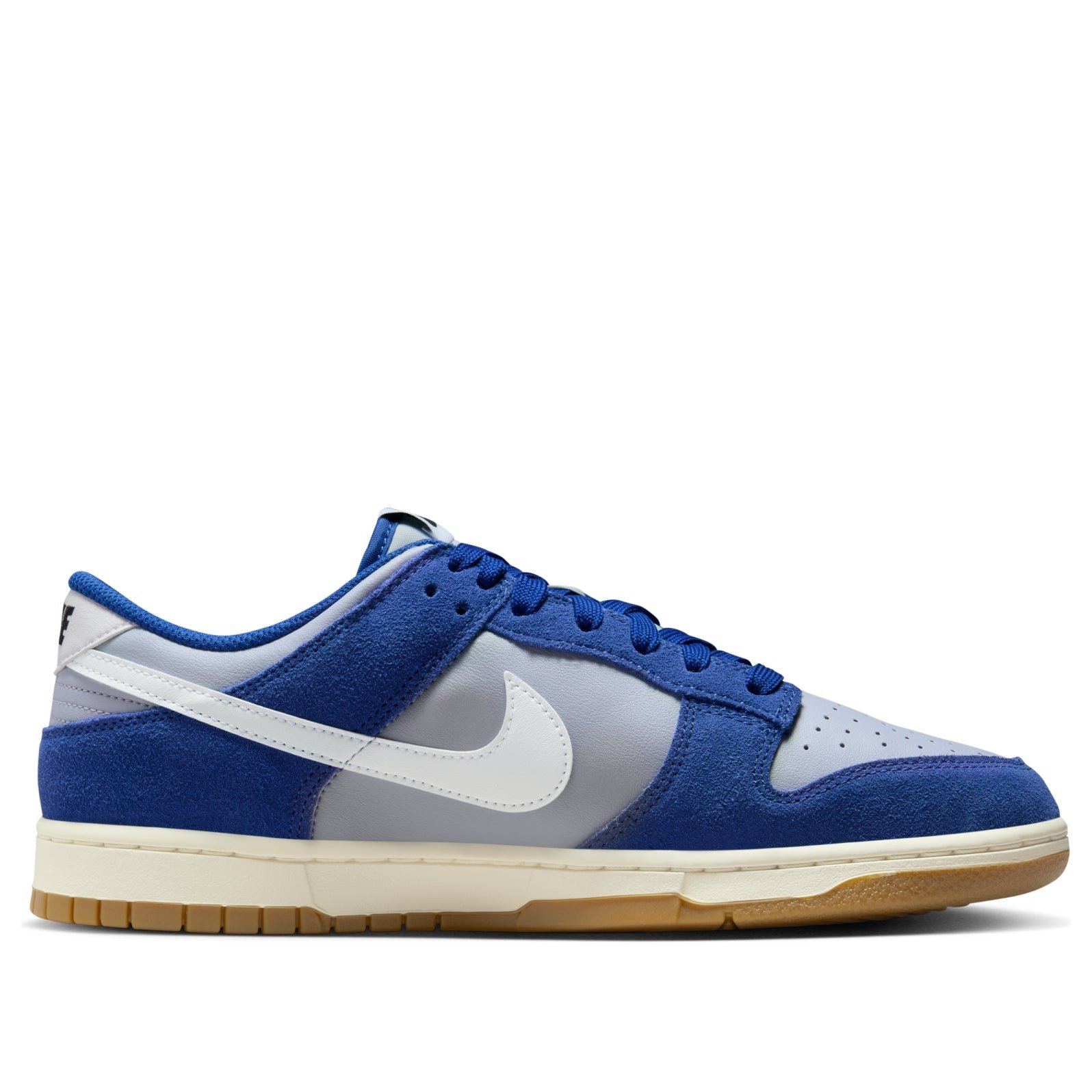 The Nike Dunk Low Retro SE Deep Royal Blue Gum features a Wolf Grey/Deep Royal Blue/Sail/White colorway. This Nike Dunk Low Retro SE was first released for $130 on October 01, 2025.
