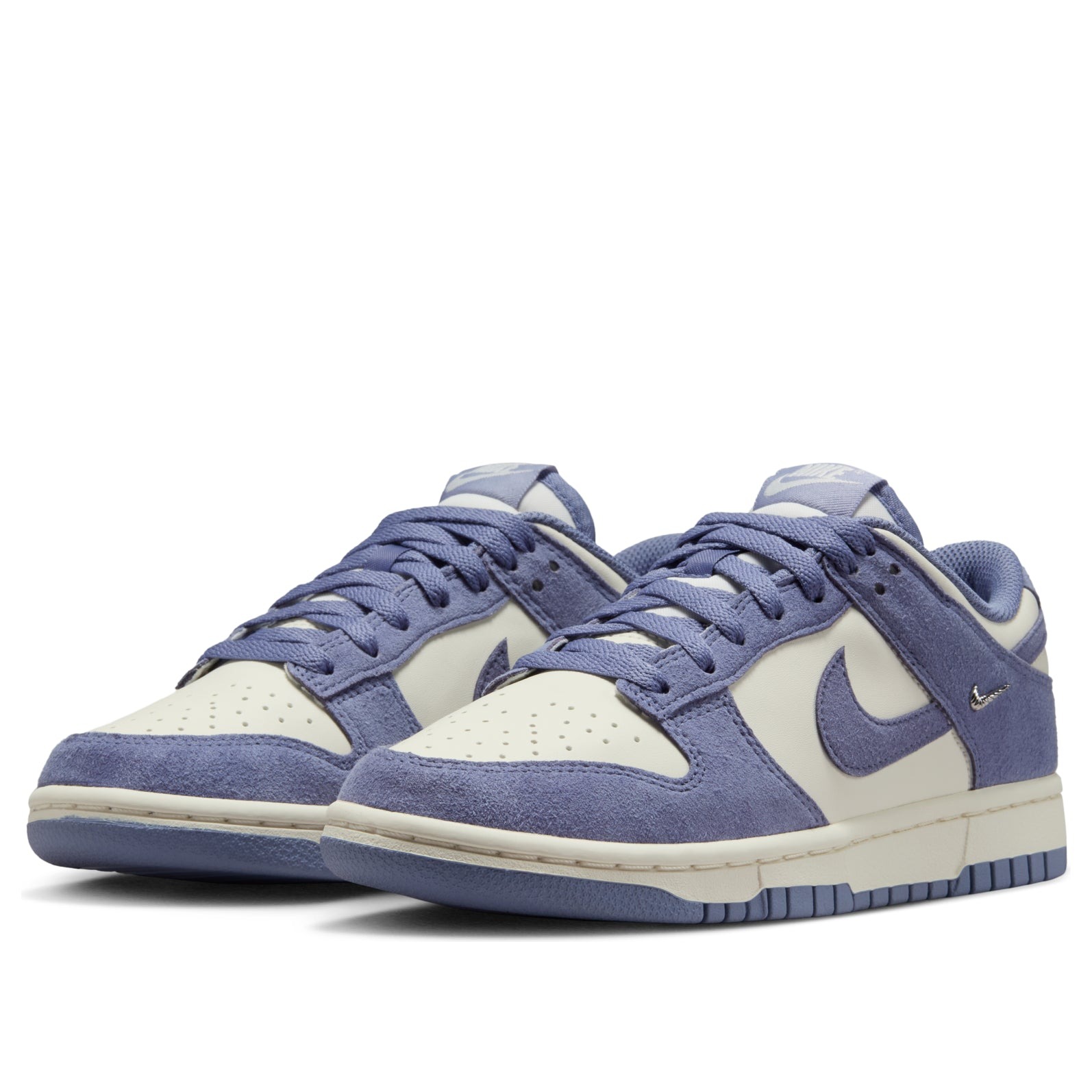 The Nike Dunk Low World Indigo Mini Swoosh (Womens) features a Sail/Metallic Silver/World Indigo colorway. This Nike Dunk Low was first released for $125 on October 01, 2025.
