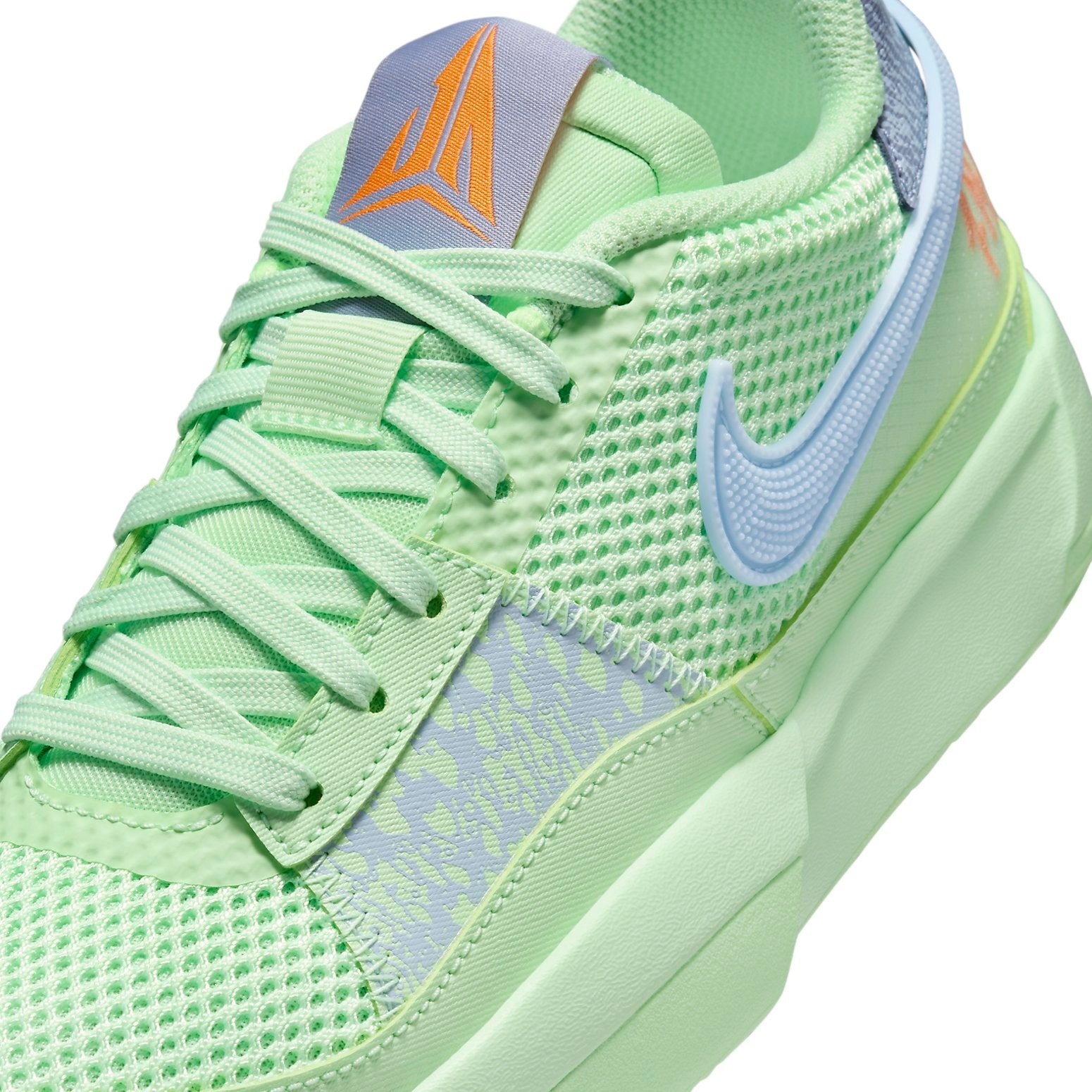 The Nike Ja 1 Mismatched (GS) is whimsical offering by NBA star Ja Morant and Nike. This high-octane sneaker features a right shoe that is primarily Bright Mandarin and a left shoe that is primarily Vapor Green. This head-turning pair of kicks is sized for grade school-aged kids.The upper of each big kids shoe is constructed of loose-weave, breathable, lightweight mesh. A tonal synthetic leather mudguard circles the shoe and rises to form a heel counter. A 3-D gray Nike Swoosh with a pebbled texture hits each side panel and loops around the heel. Speckled gray faux leather heel tabs embroidered with the number 12, speckled gray side-panel overlays, and a tongue tag with mismatched Ja Morant logos adorn each shoe. Each shoe features a tonal Phylon foam midsole that encapsulates a Zoom Air unit in the forefoot for responsive cushioning and a tonal rubber outsole.Our favorite aspect of this bright pair of mismatched sneakers for kids is Ja s signature in Mandarin Orange on the Vapor Green shoe and Vapor Green on the Mandarin Orange shoe. The Nike Ja 1 Mismatched (GS) was released on April 19, 2024, for $102 retail.