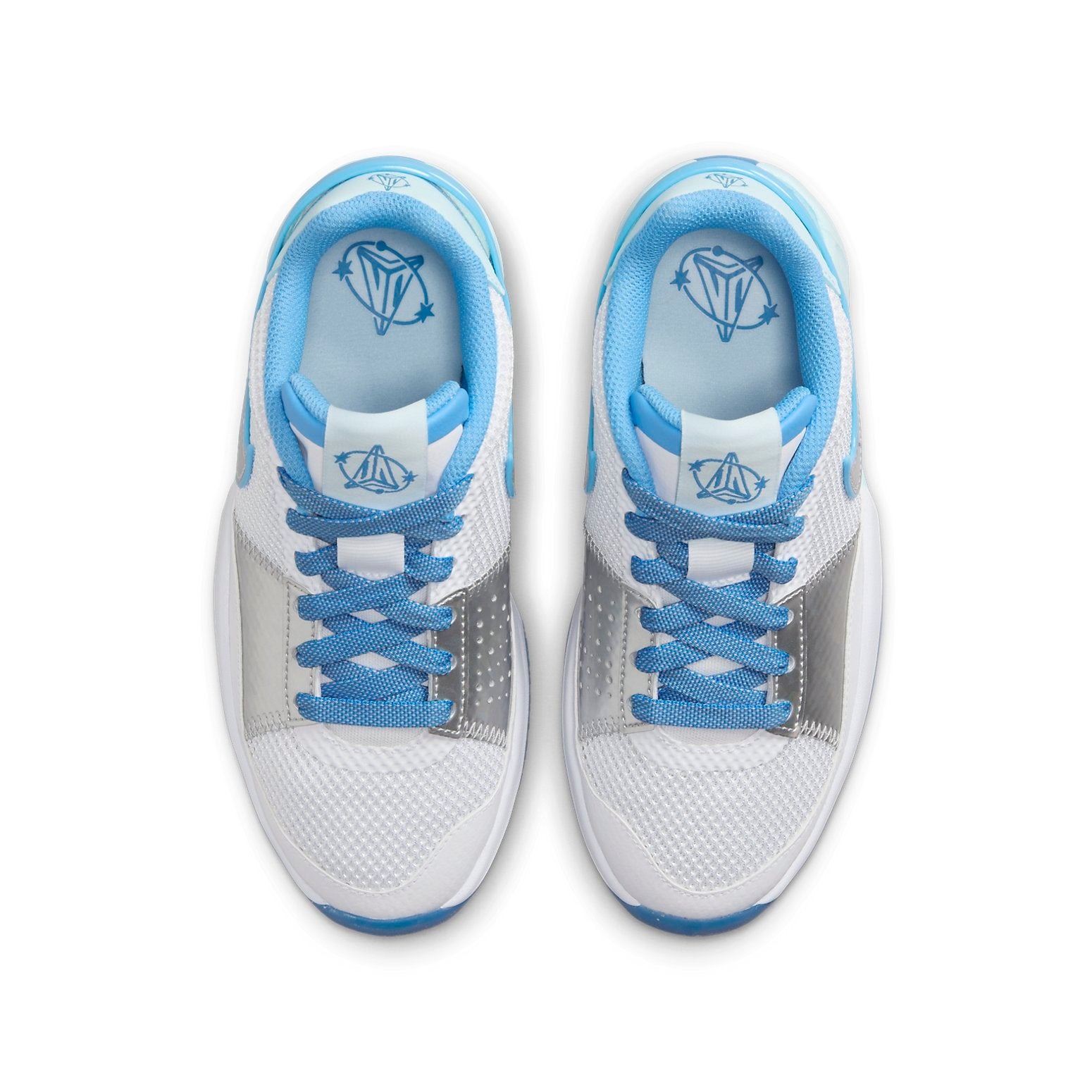 The Nike Ja 1 SE All-Star (GS) is a shoe for grade schoolers that s part of American basketball star Ja Morant s collection with the brand. The All-Star (GS) Nike Ja 1 SE has a white mesh upper with leather overlays supporting the forefoot in a metallic silver kaleidoscope design. The Nike Swoosh appears in metallic silver on the outer side and white on the inside. The heel counter is made of a light shade of blue with Morant s branding etched into it on the outer side. The tongue bears his logo along with stars, as does the heel collar. The shoe sits atop a thick blue and white midsole, and the outsole is blue with white speckles. Our favorite feature of this shoe is the silver prism detailing on the overlays and one of the Swooshes, which drives home the All-Star mentality. The Nike Ja 1 SE All-Star (GS) was released on February 16, 2024, for $102.