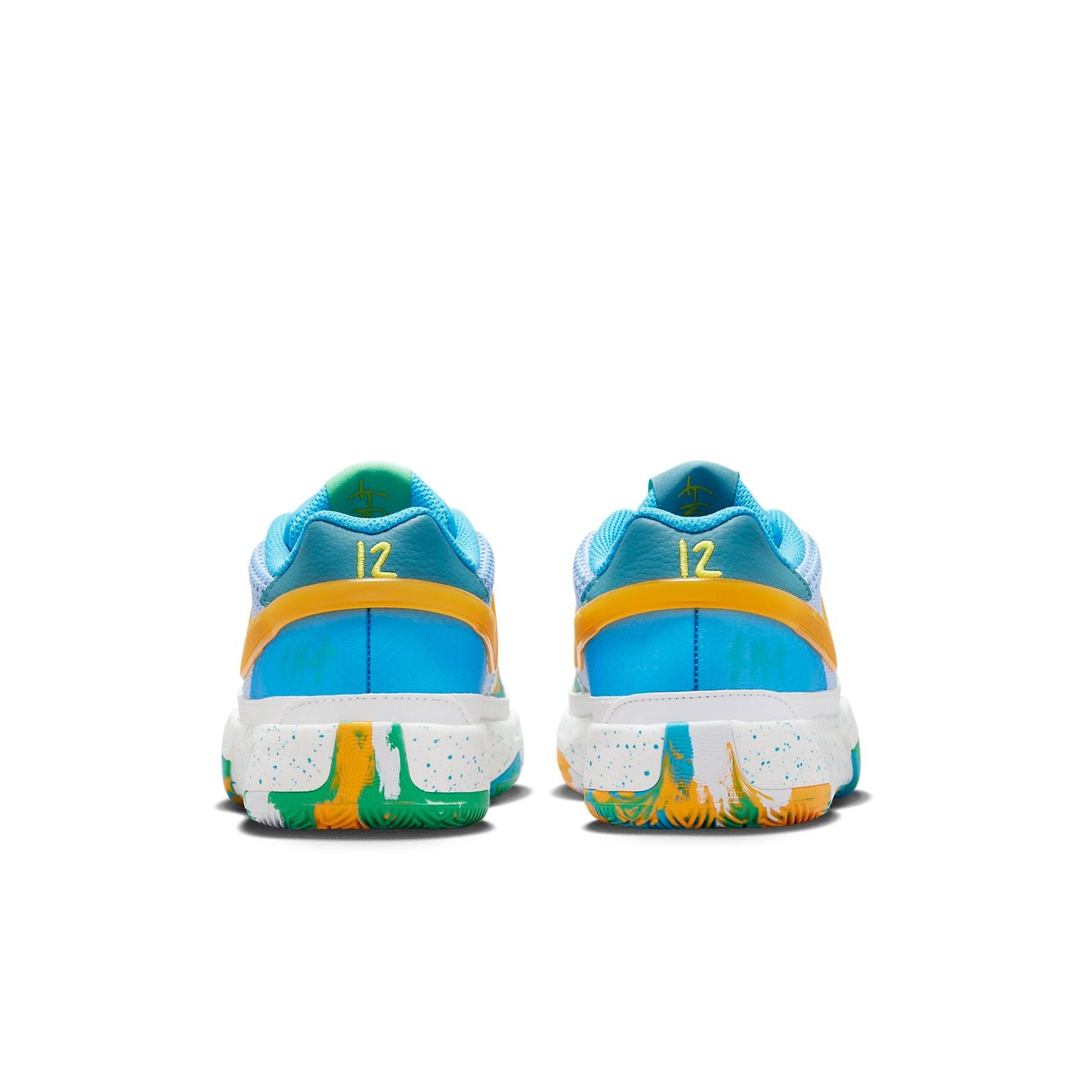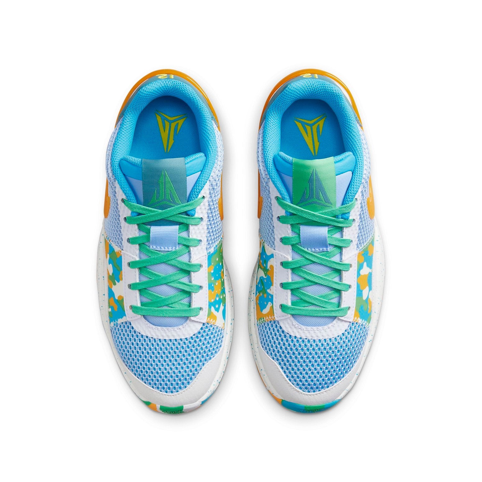 The Nike Ja 1 Water Battle (GS) features a White/Sundial/Cobalt Bliss colorway. This Nike Ja 1 was first released for $90 on May 08, 2023.