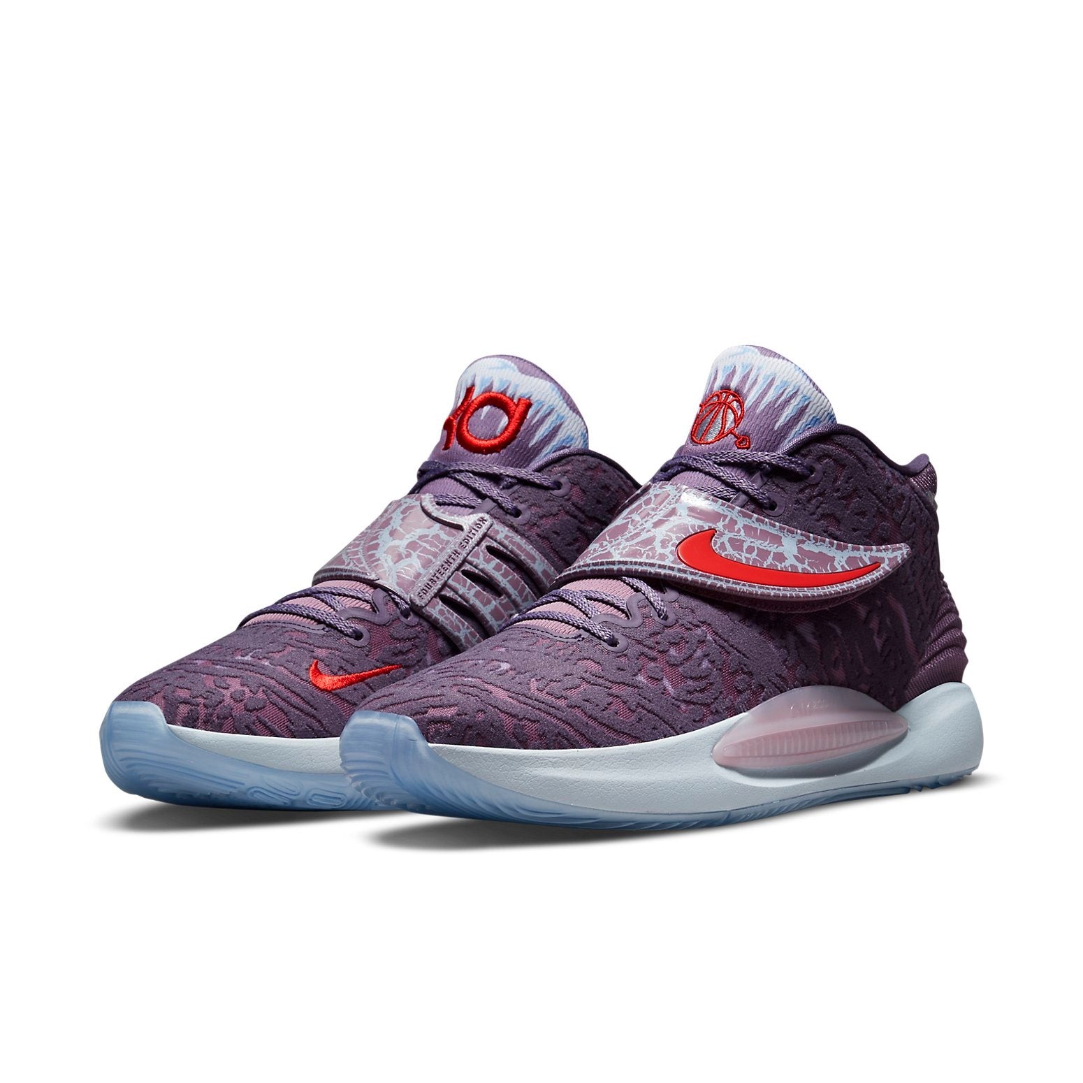 The Nike KD 14 Valentines Day is a sneaker that was released by Nike as a particular version of the KD 14 which pays homage to Valentine’s holiday with its red and pink color scheme. The upper of the Valentine’s Day Nike KD 14 is made of breathable mesh material that allows for increased airflow and ventilation to keep the feet cool and dry. The shoe incorporates a Nike React foam across the full length of the midsole to offer support and cushioning to the foot. The sole also features a Zoom Air unit, which helps to provide additional responsiveness and bounce. We think that the best feature of this KD 14 Valentine’s Day version is its vibrant and eye-catching colorway. With its bright multicolor scheme, the shoe is designed to capture the spirit of the holiday. The Nike KD 14 Valentines Day was released on June 21st, 2022 at a retail price of $150.
