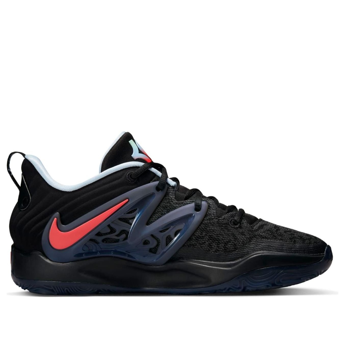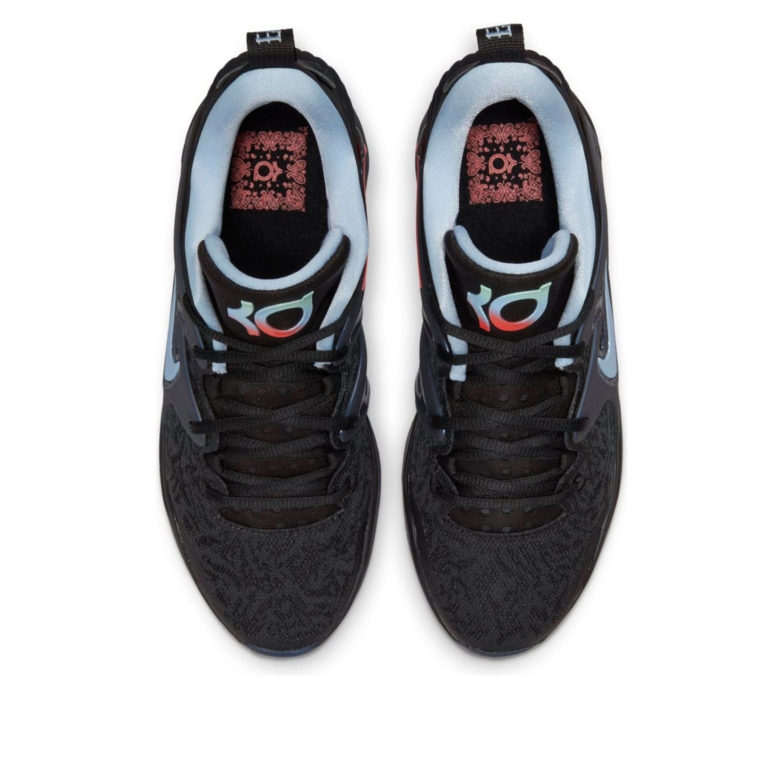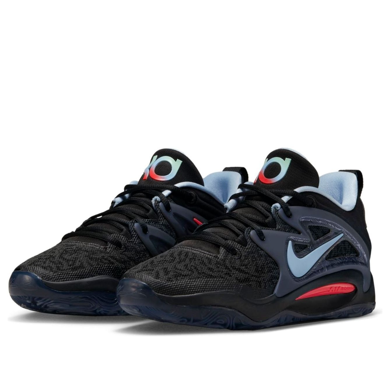 The Nike KD 15 My Roots is an iteration of the Nike KD 15 dressed in Black, Royal Tint, and Light Crimson.A low-cut sneaker, the Nike KD 15 Black Royal Tint Light Crimson features a jacquard mesh upper in black, detailed with navy blue midfoot caging, thin overlays to help resist abrasion along the toe, a branded pull tab, and a branded tongue. The midfoot caging on the shoe’s lateral side holds a light blue Nike Swoosh, while the one on the medial side holds an inverted red Nike Swoosh. Beneath this shoe’s upper is a full-length foam and a visible Zoom Air Strobel unit that offers a dual layer of cushioning that’s smooth and responsive. A patterned rubber outsole with several contoured ridges that bend in multiple directions provides traction for every move and rounds out its design.What we love about the Nike KD 15 My Roots is that it enables you to maintain control on the court, regardless of your movement. This shoe was released on November 16, 2022, for $160.