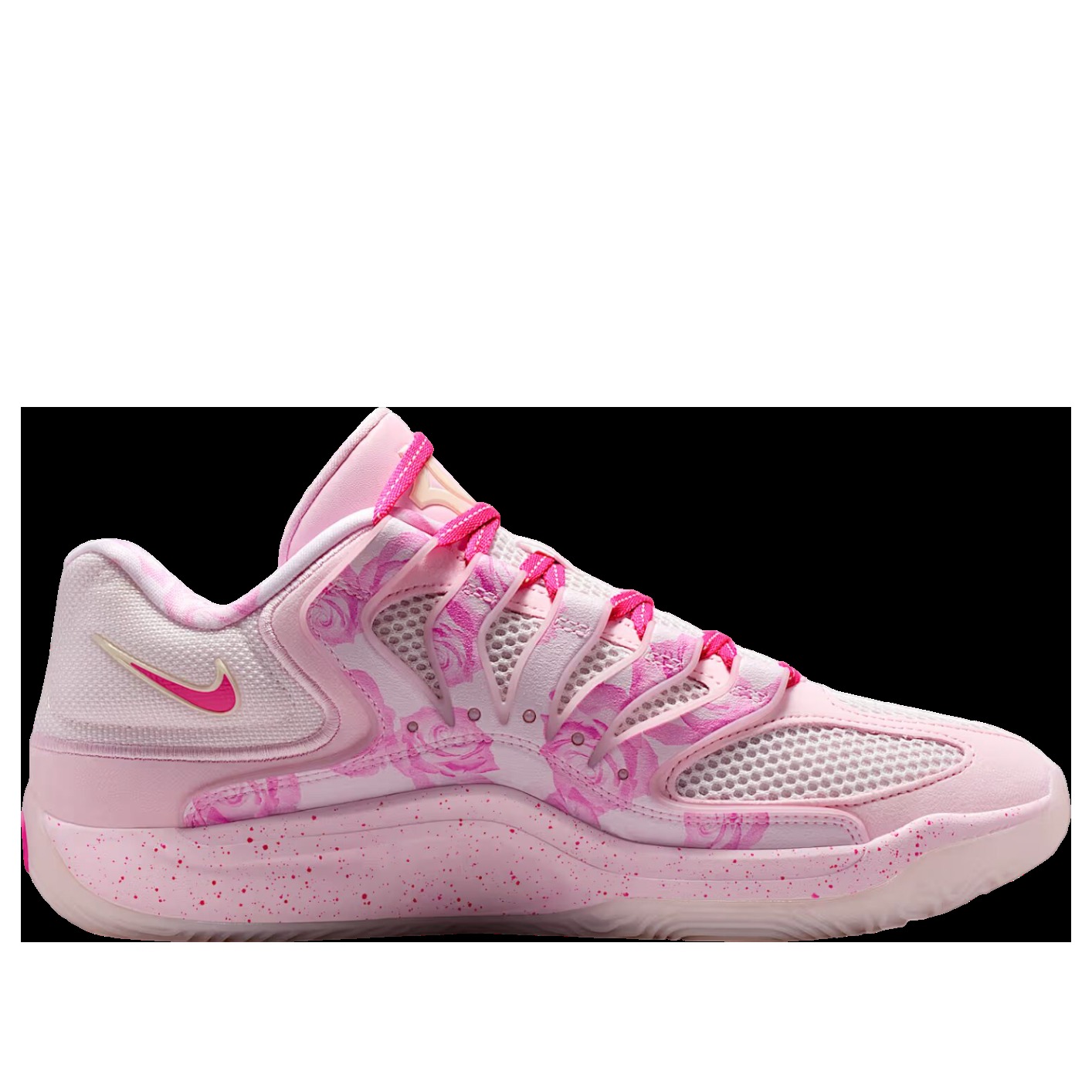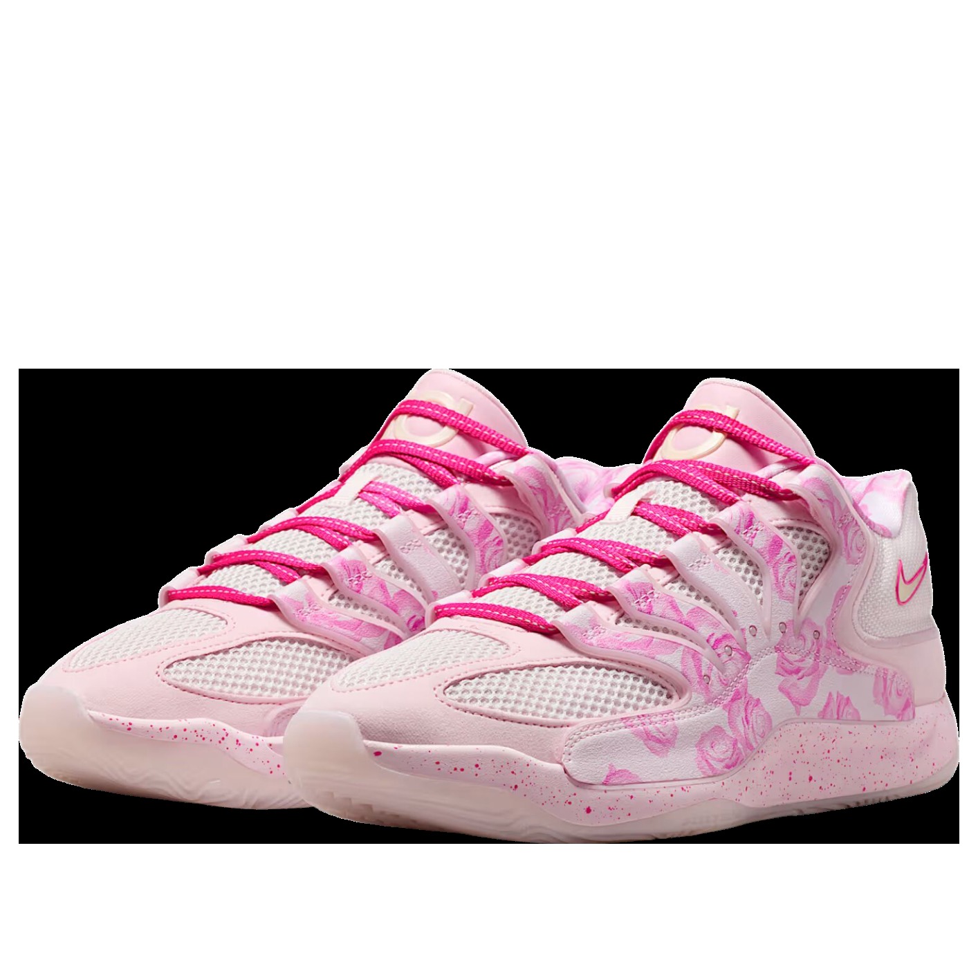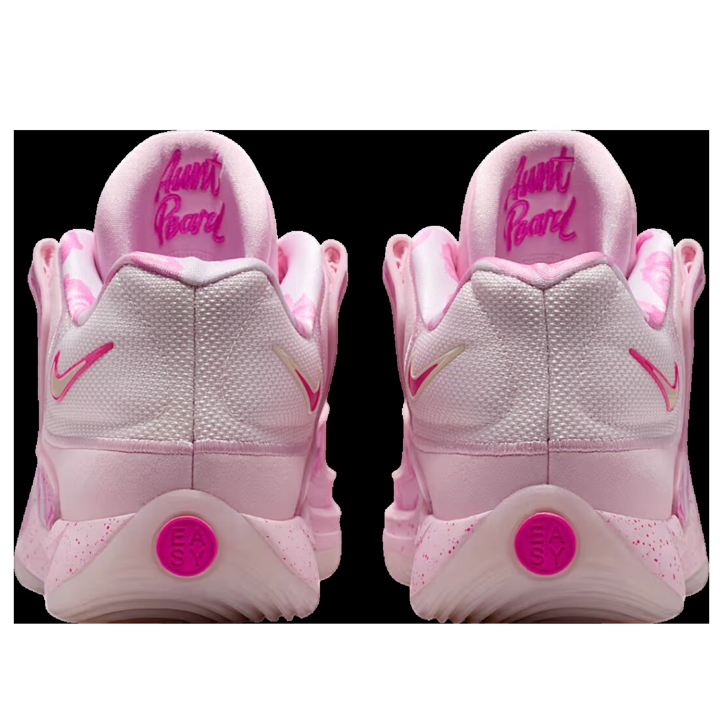 The Nike KD 18 Aunt Pearl features a Pearl Pink/Laser Fuchsia/Tulip Pink/Playful Pink/Pink Foam/Glacier Blue colorway. This Nike KD 18 was first released for $170 on October 07, 2025.
