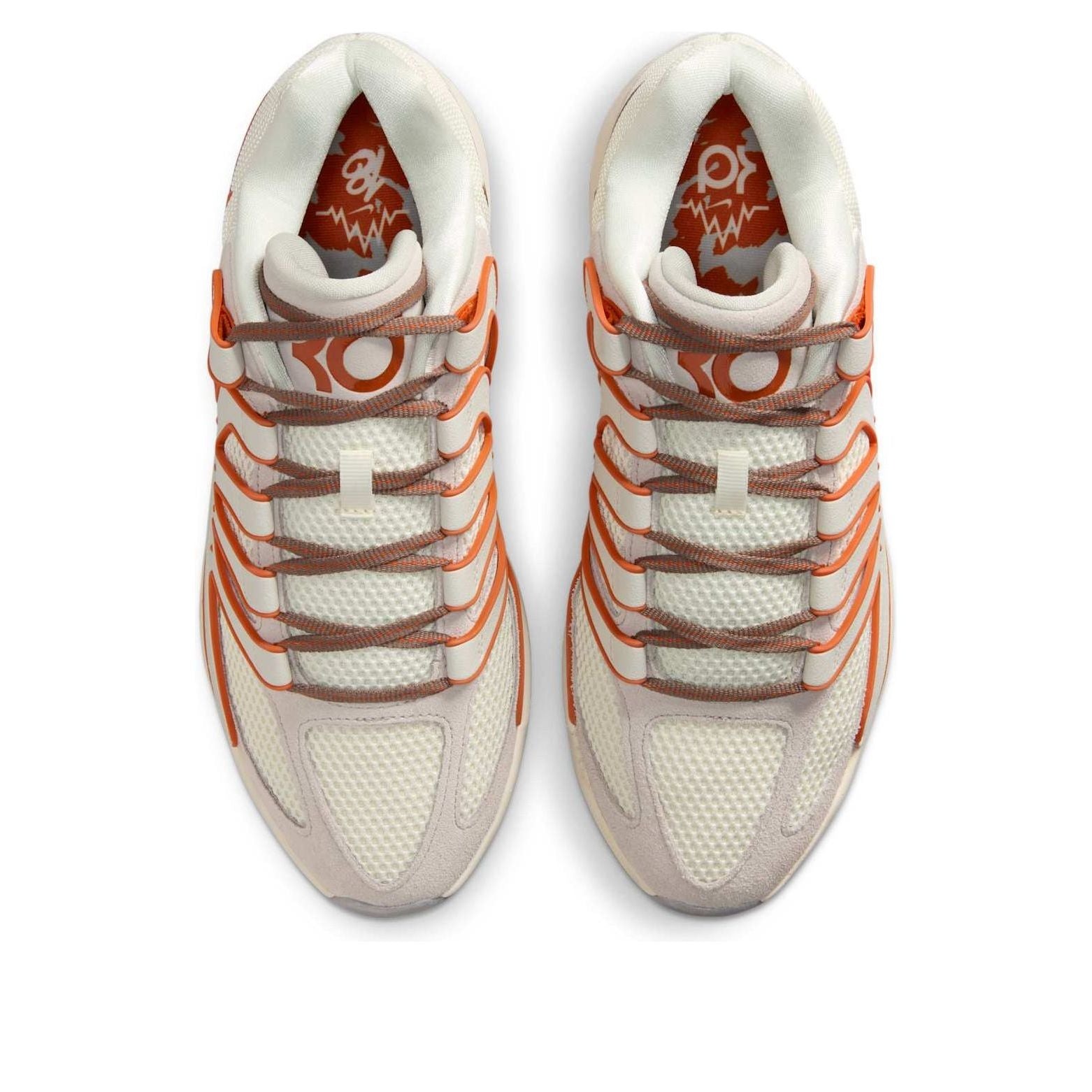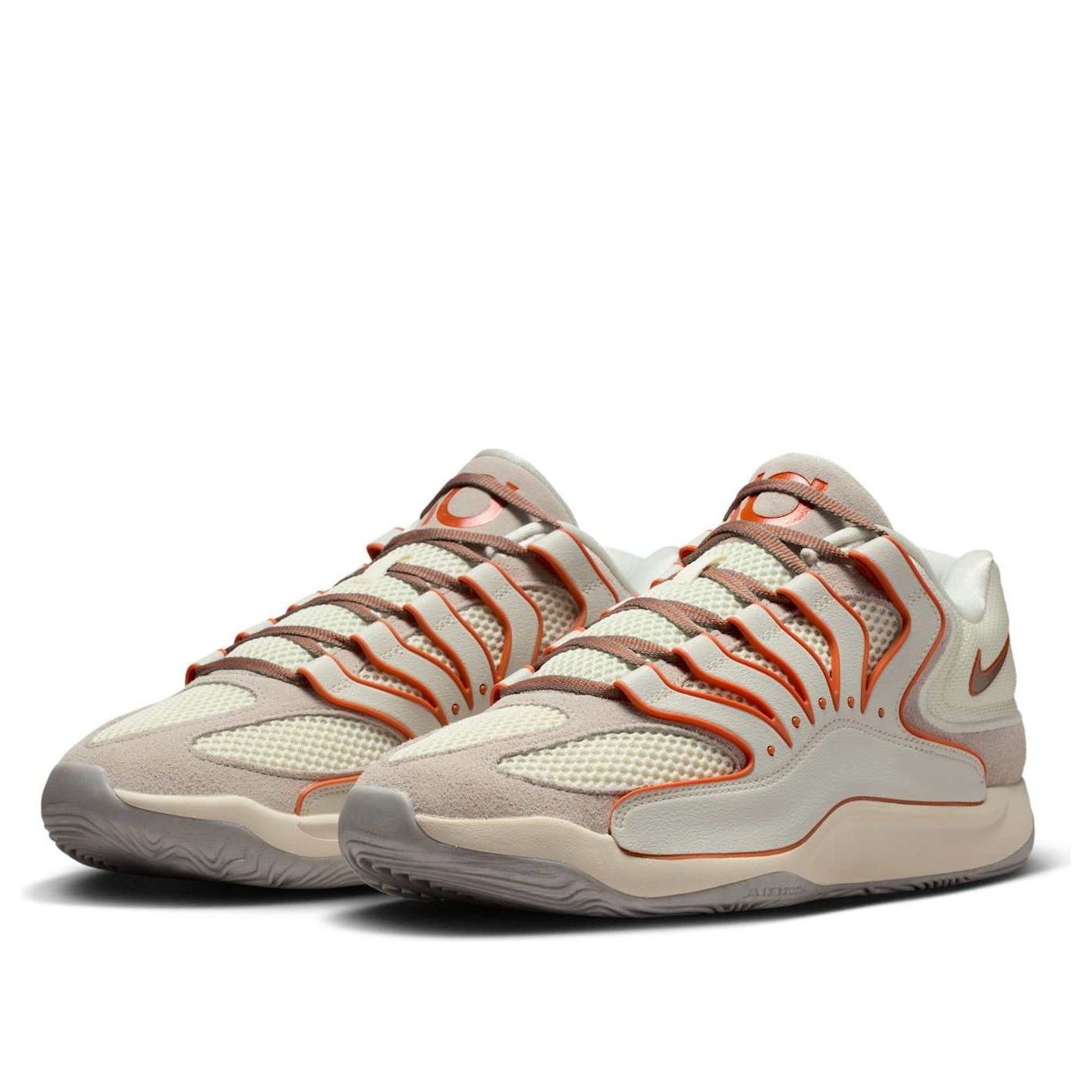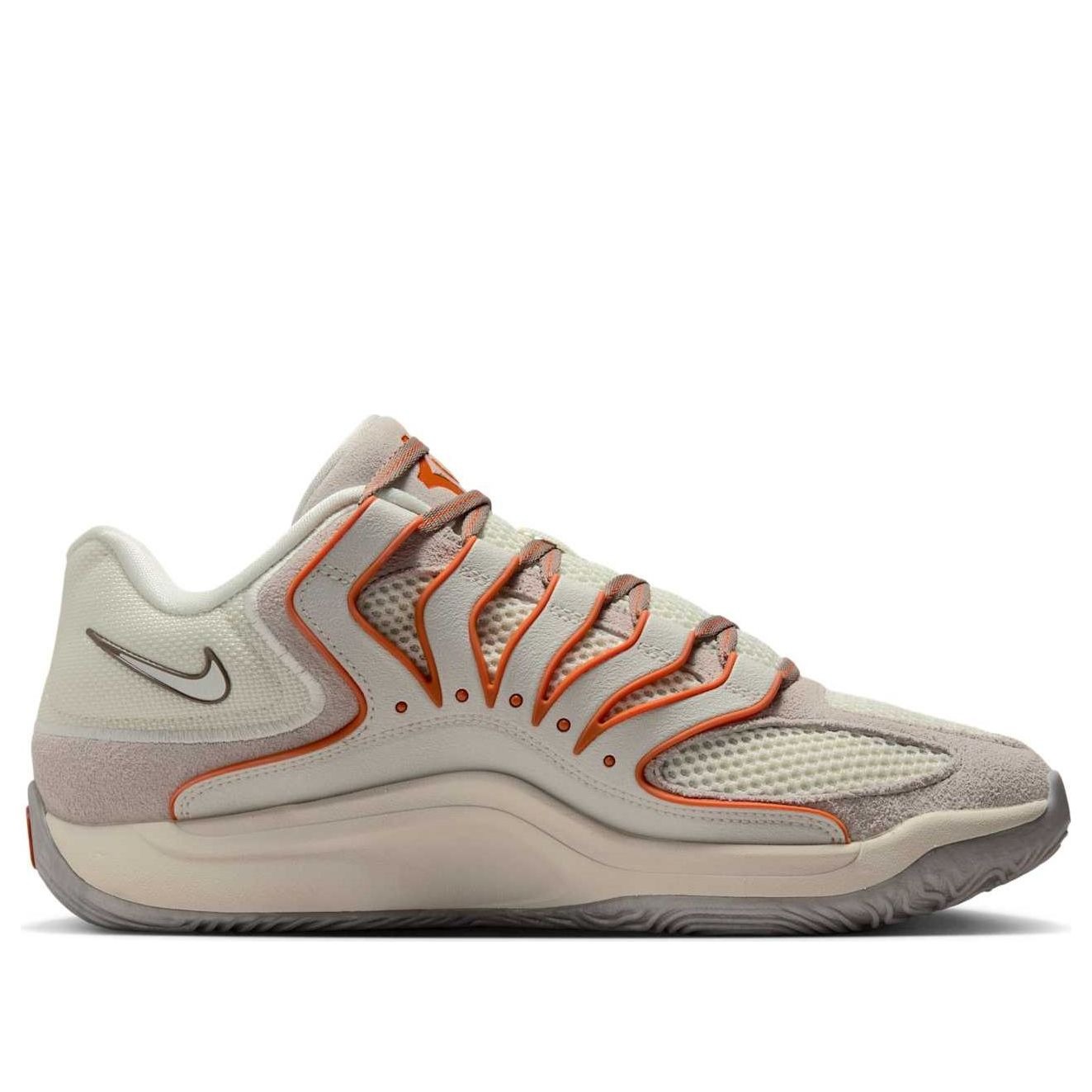 The Nike KD 18 Rise features a Soft Pearl/Light Bone/Campfire Orange/Light Iron Ore colorway. This Nike KD 18 was first released for $155 on August 29, 2025.