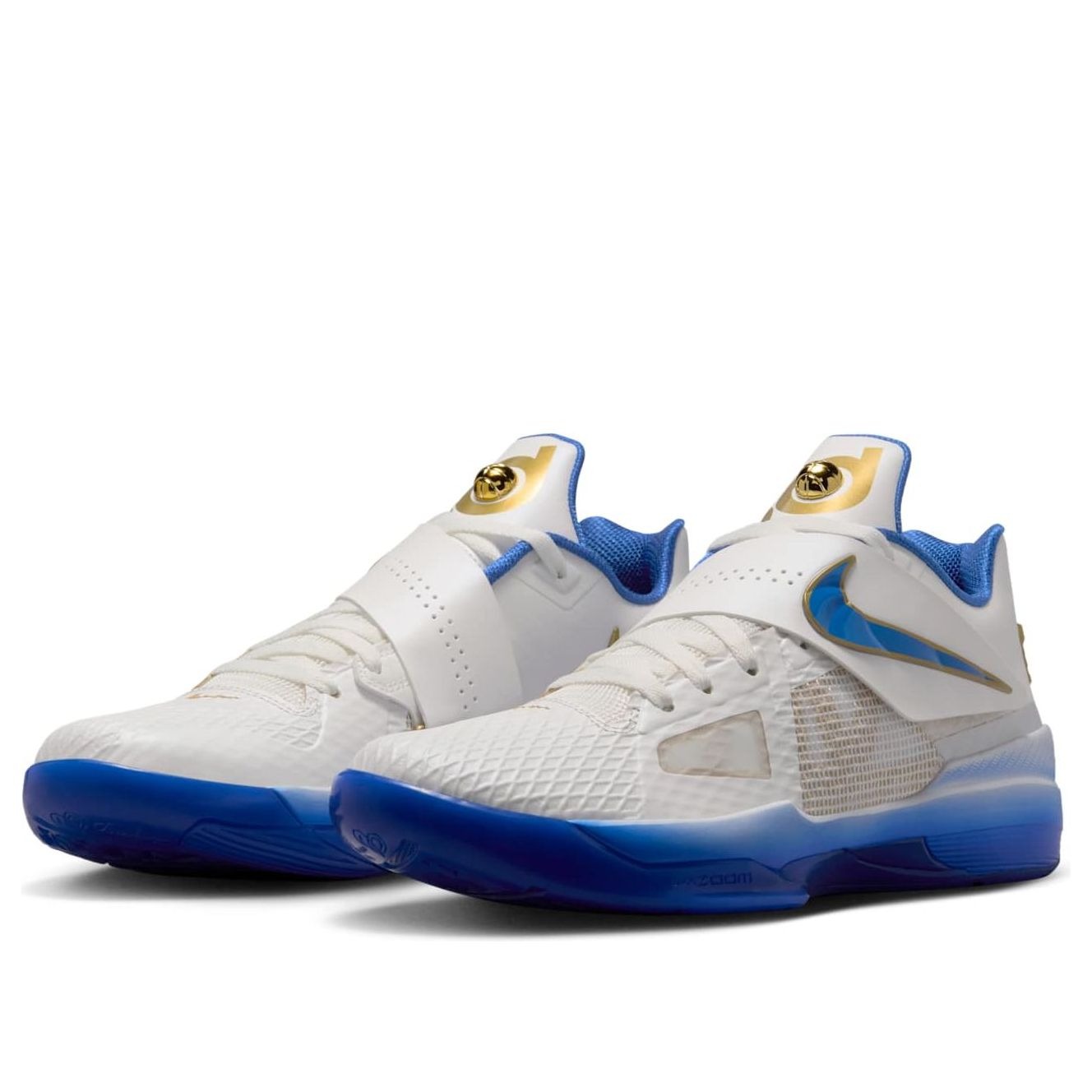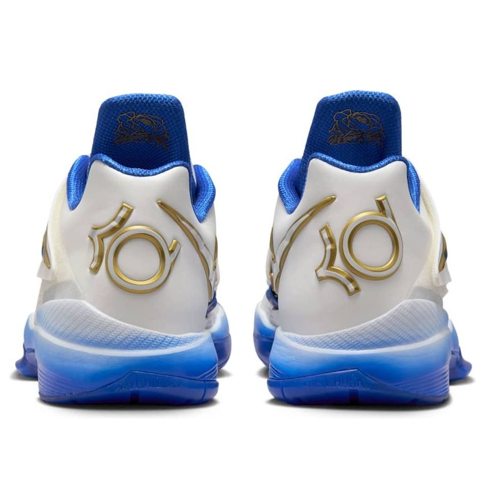 The Nike KD 4 The Real MVP is a high-top basketball shoe featuring a leather and mesh fabric upper in Summit White. Accented by a perforated midfoot strap that displays the Nike Swoosh in Hyper Royal, outlined with Metallic Gold, the tongue features KD branding with a Metallic Gold basketball, which reappears on the rear heel next to the Nike Swoosh. An airbrush-style midsole ombr s from Summit White to Hyper Royal. American sportswear brand Nike has forged many successful partnerships with professional athletes, and this aspect of the brand has had a major impact on Nike s untouched status and reputation. To honor NBA champion and MVP Kevin Durant s acceptance speech at the 2014 NBA MVP awards, Nike created The Real MVP version of the KD 4, filled with subtle branding that references his moving speech. In our opinion, the best feature of the Nike KD 4 The Real MVP is its inspirational messages, which infuse the shoe with meaning. The shoe was released on February 18, 2025, and retailed for $150.