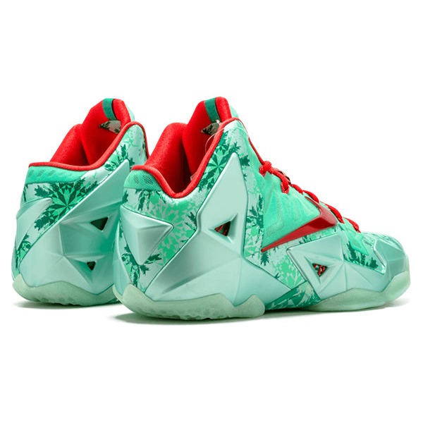 The Nike LeBron 11 Christmas is a limited edition sneaker that was released on December 26, 2013. It features a vibrant red and green colorway with a snowflake pattern on the upper. The shoe is made with a combination of synthetic materials and mesh for breathability and durability. The midsole is made with Nike’s signature Lunarlon foam for cushioning and support. The outsole is made with a durable rubber material for traction on any surface. The shoe also features Nike’s Flywire technology for a secure fit. The retail price for the Nike LeBron 11 Christmas was $200. This sneaker is a must-have for any LeBron James fan or sneaker collector looking for a unique and festive addition to their collection.