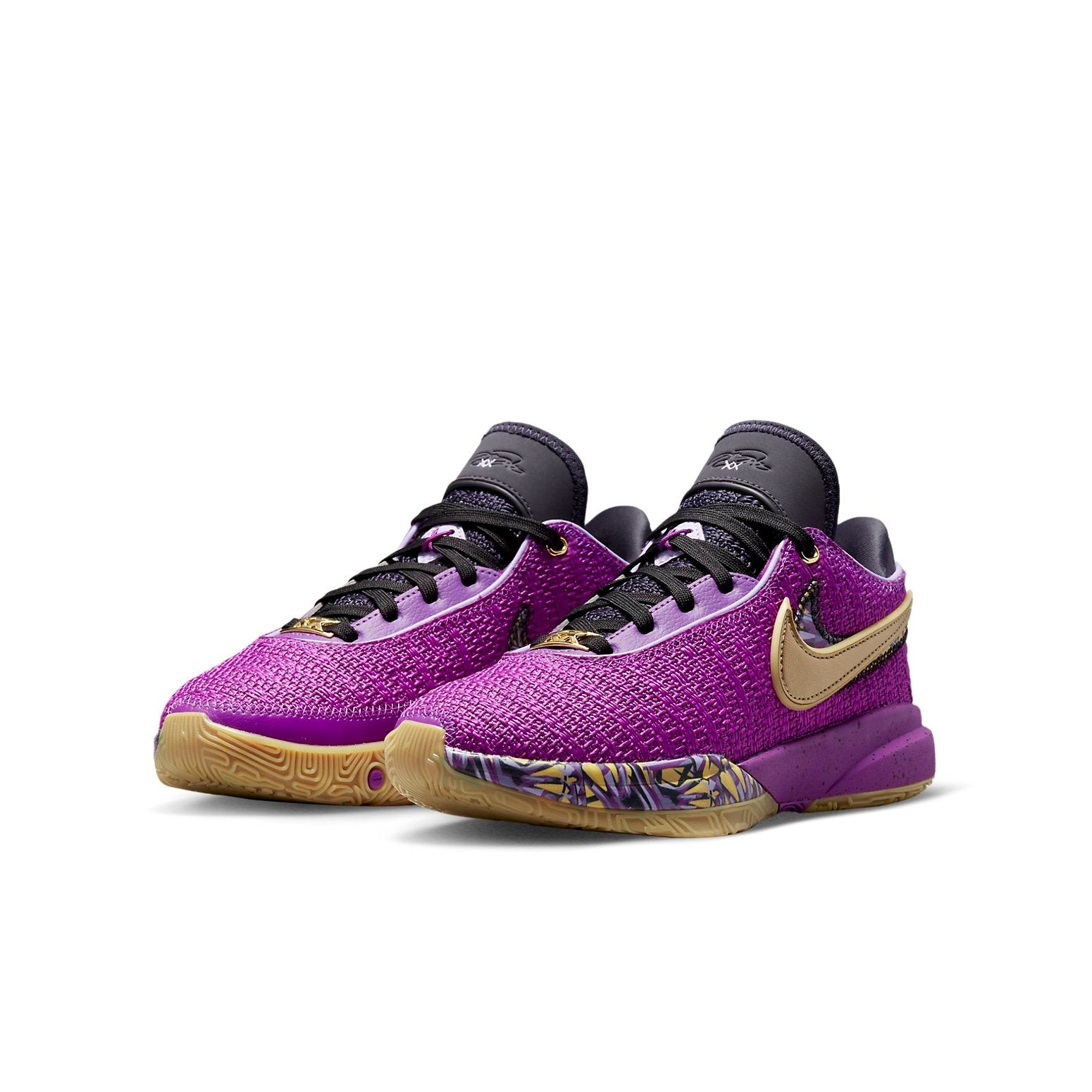 The Nike LeBron 20 SE Vivid Purple (GS) features a Vivid Purple/Black/Cave Purple/Metallic Gold colorway. This Nike LeBron 20 SE was first released for $130 on November 18, 2022.