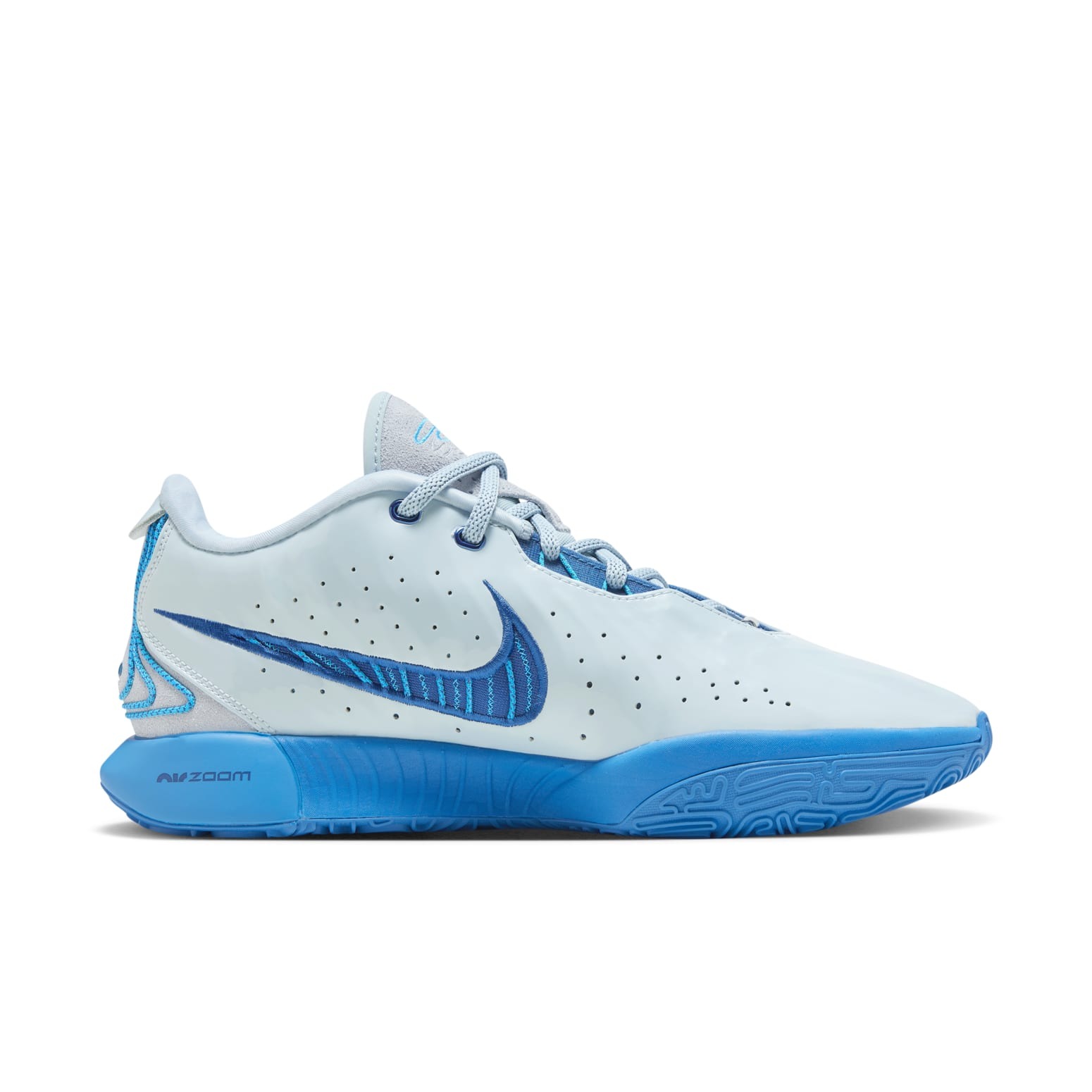 The Nike LeBron 21 EP Blue Diver (Solid Blue Outsole) features a Light Armoury Blue/Blue Hero/Ashen Slate/Court Blue colorway. This Nike LeBron 21 EP was first released for $200 on March 15, 2024.