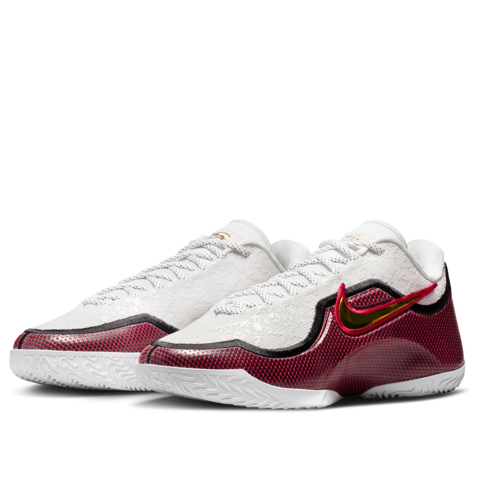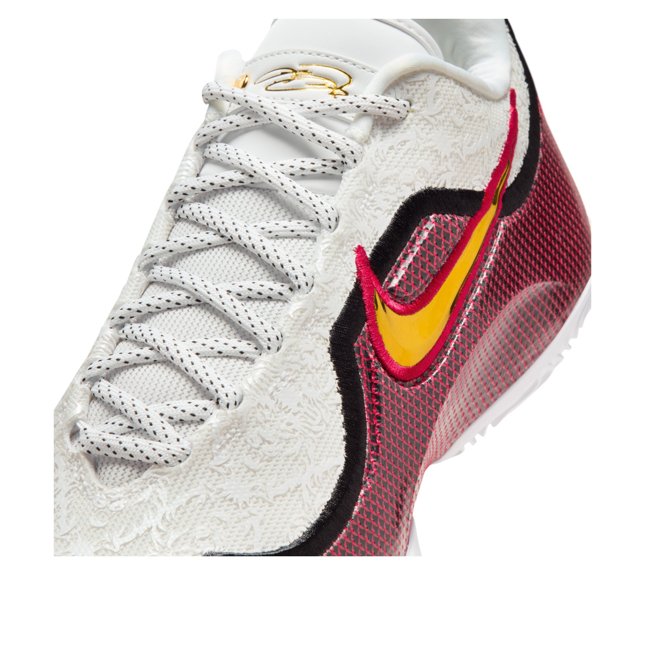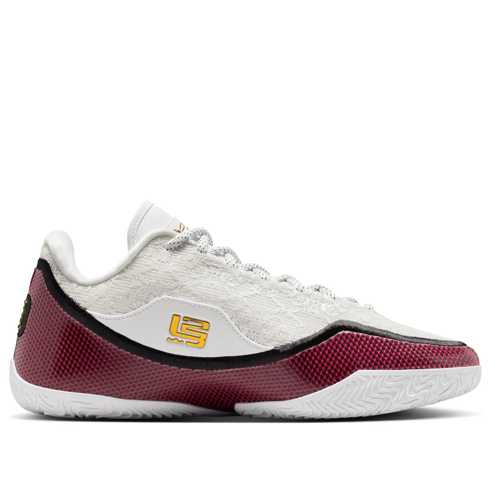 The Nike LeBron 23 Grand Opening (Solid Outsole) features a White/Metallic/Gold/University Red/Black colorway. This Nike LeBron 23 was first released for $210.