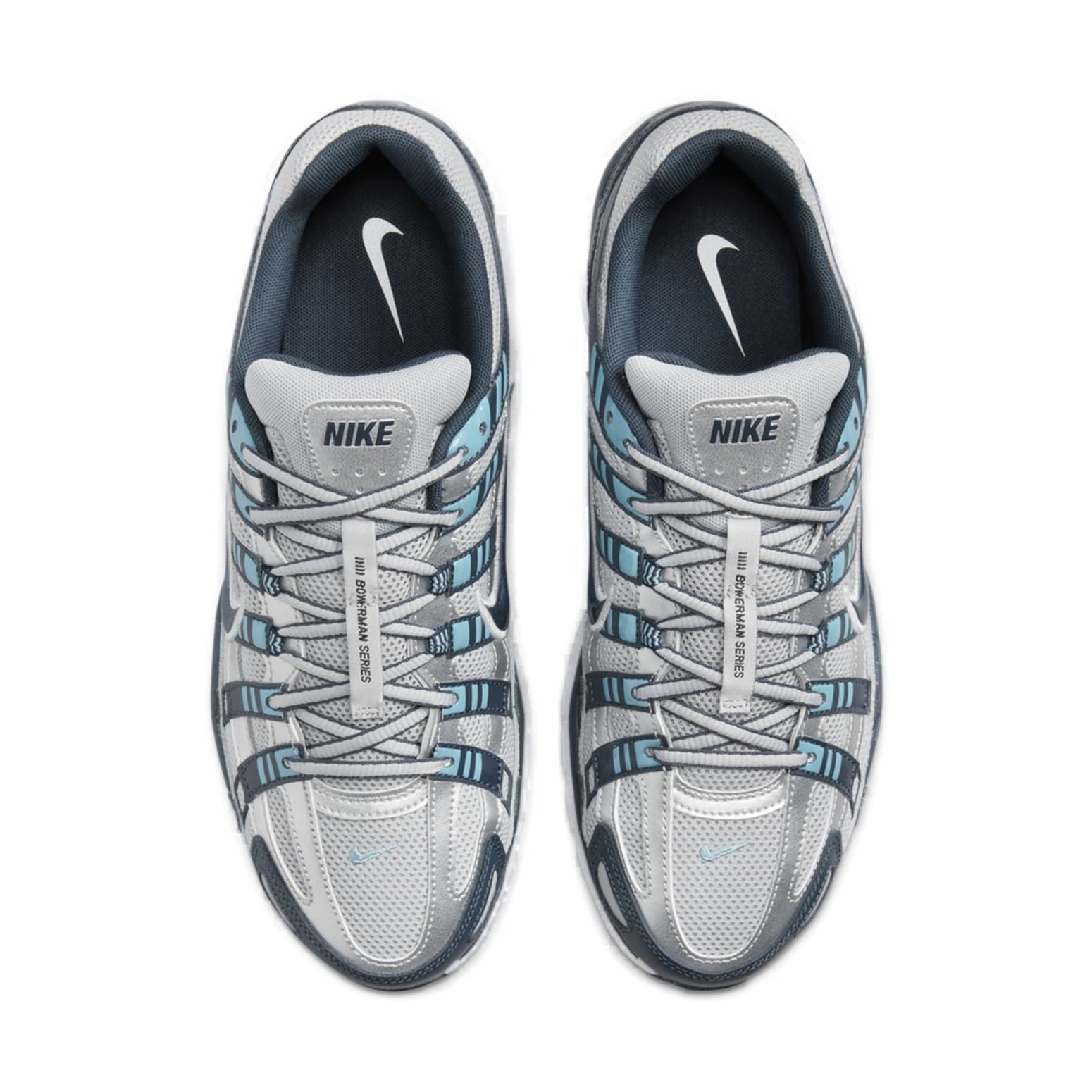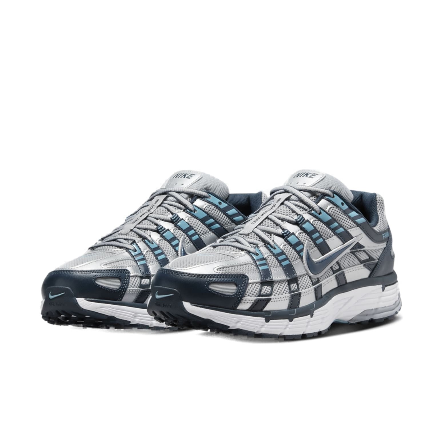 The Nike P-6000 Armory Navy Flat Silver is a performance shoe whose design was inspired by the Nike Air Pegasus that debuted in 2006. This version of the Nike P-6000 is made with a lightweight textile upper in Flat Silver throughout. A synthetic leather Armory Navy toe cap appears on the front, while more synthetic leather overlays in Metallic Silver cross from the front to the back of the shoe supporting the sides. Vertical blue overlays reach from the eyestays to the mudguard on each side, while the Swoosh appears on the sides in blue outlined in silver. P-6000 branding is on the lateral heel, while Nike branding is on the tongue. Armory Navy synthetic leather also forms the heel counter, on which you can find a lighter blue Nike Swoosh. Our favorite thing about this shoe is the mix of shades of blue, which makes the shoe stand out. The Nike P-6000 Armory Navy Flat Silver was released on June 16, 2024, for $120.