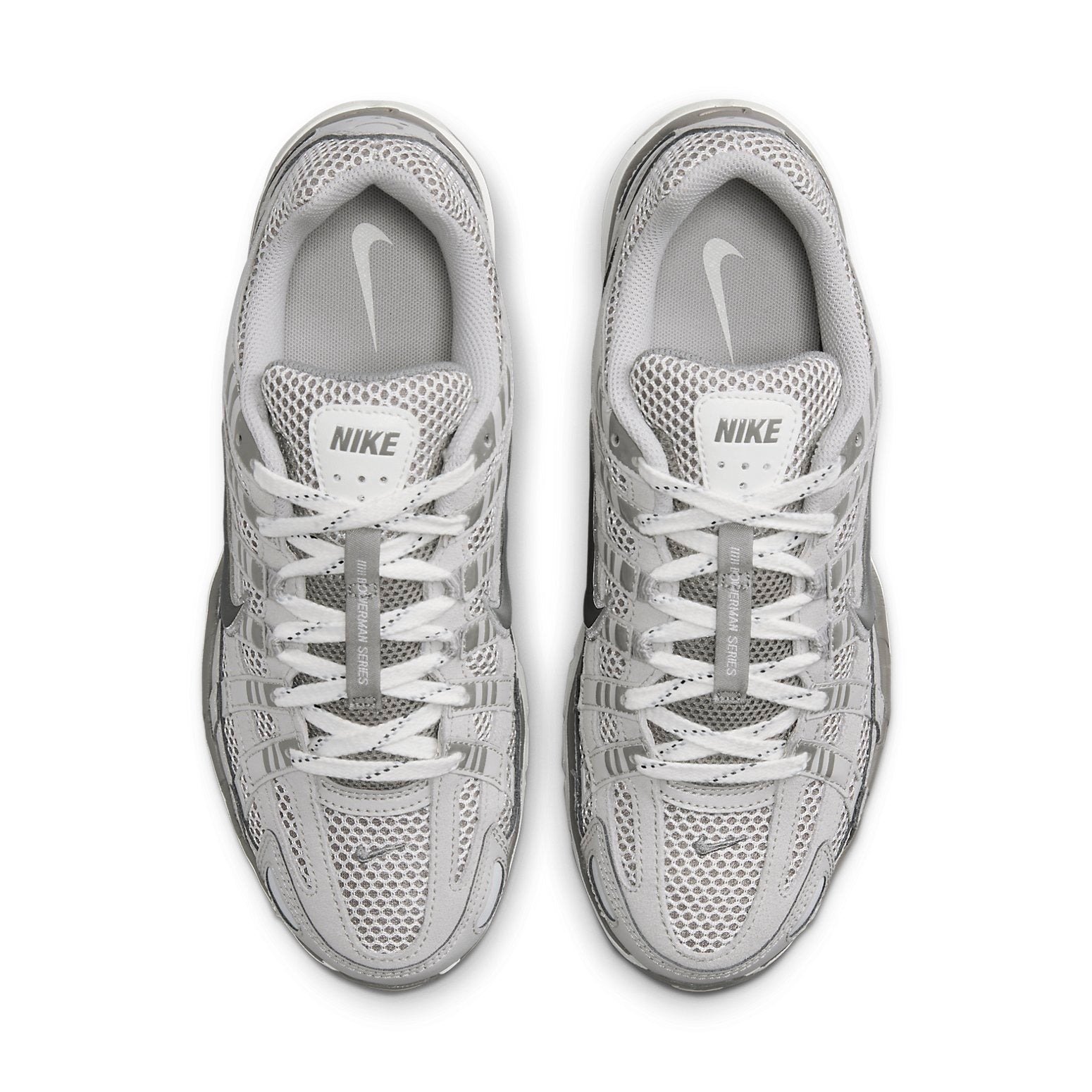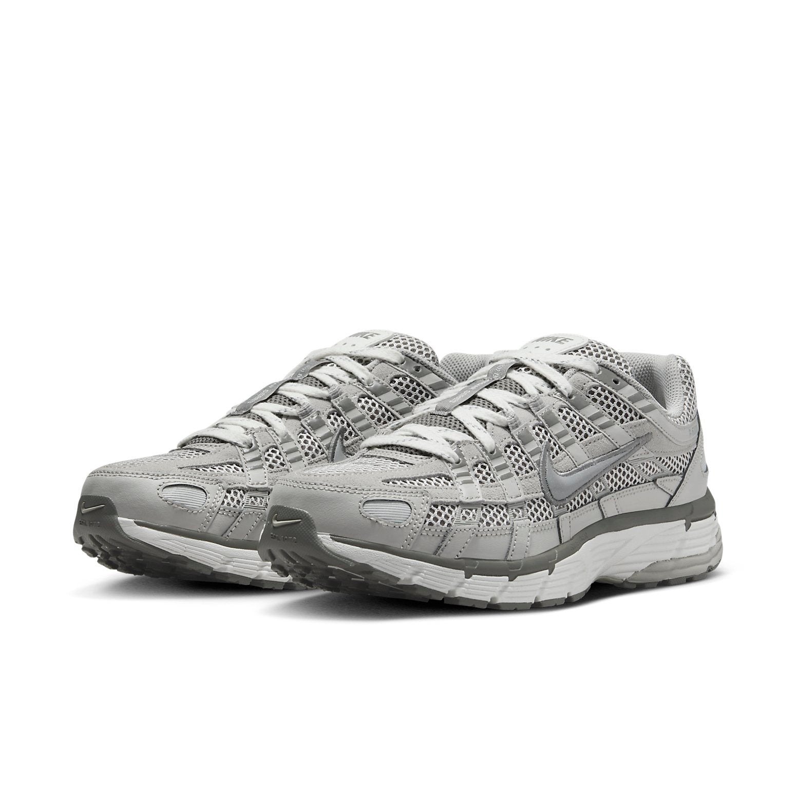 Taking its inspiration from the Nike Air Pegasus from 2006, the Nike P-6000 Light Iron Ore is a sneaker with an early 2000s aesthetic that delivers updated comfort and durability.The Light Iron Ore colorway of the Nike P-6000 features an upper with a base of loosely woven white mesh with darker textiles showing through. This is overlaid with real and synthetic leather and suede in hues of gray. A gray molded leather Nike swoosh outlined in black courses across the side panel, an embroidered gray Nike swoosh adorns the heel counter, an embossed Nike swoosh rests below and on the brown-gray mudguard, and Nike branding graces the tongue tag. A Nike swoosh appears on the toe box and insole. A durable rubber outsole in shades of dark to light gray and a white foam midsole for cushioning round out this shoe.Our favorite feature of this shoe is the dark gray tongue webbing with Bowerman Series branding, a nod to Nike co-founder Bill Bowerman. The Nike P-6000 Light Iron Ore was released on July 8, 2023, for $120 retail.
