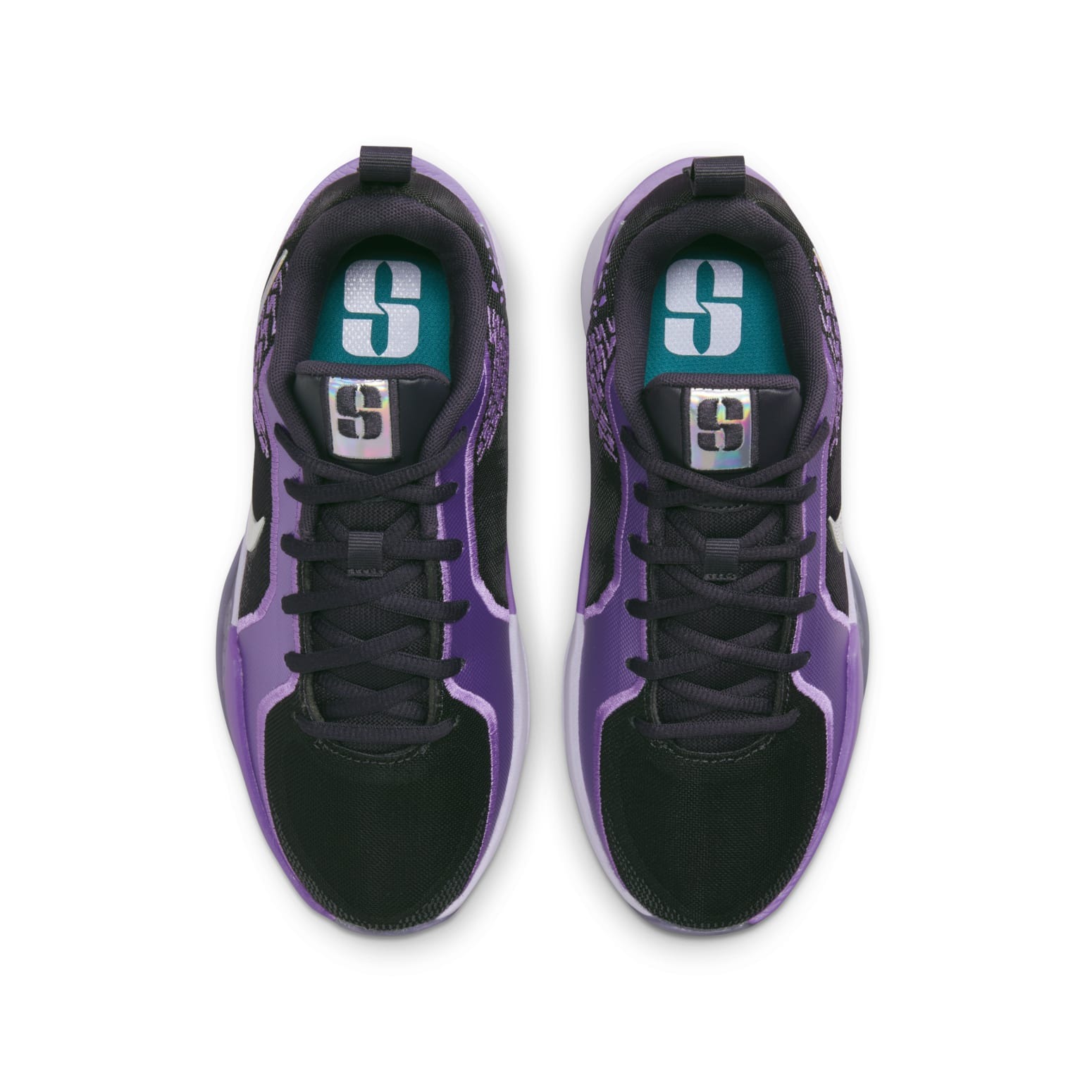 The Nike Sabrina 2 Court Vision (GS) features a Cave Purple/White/Black Raspberry/Violet Frost/Denim Turquoise colorway. This Nike Sabrina 2 was first released for $100 on June 25, 2024.