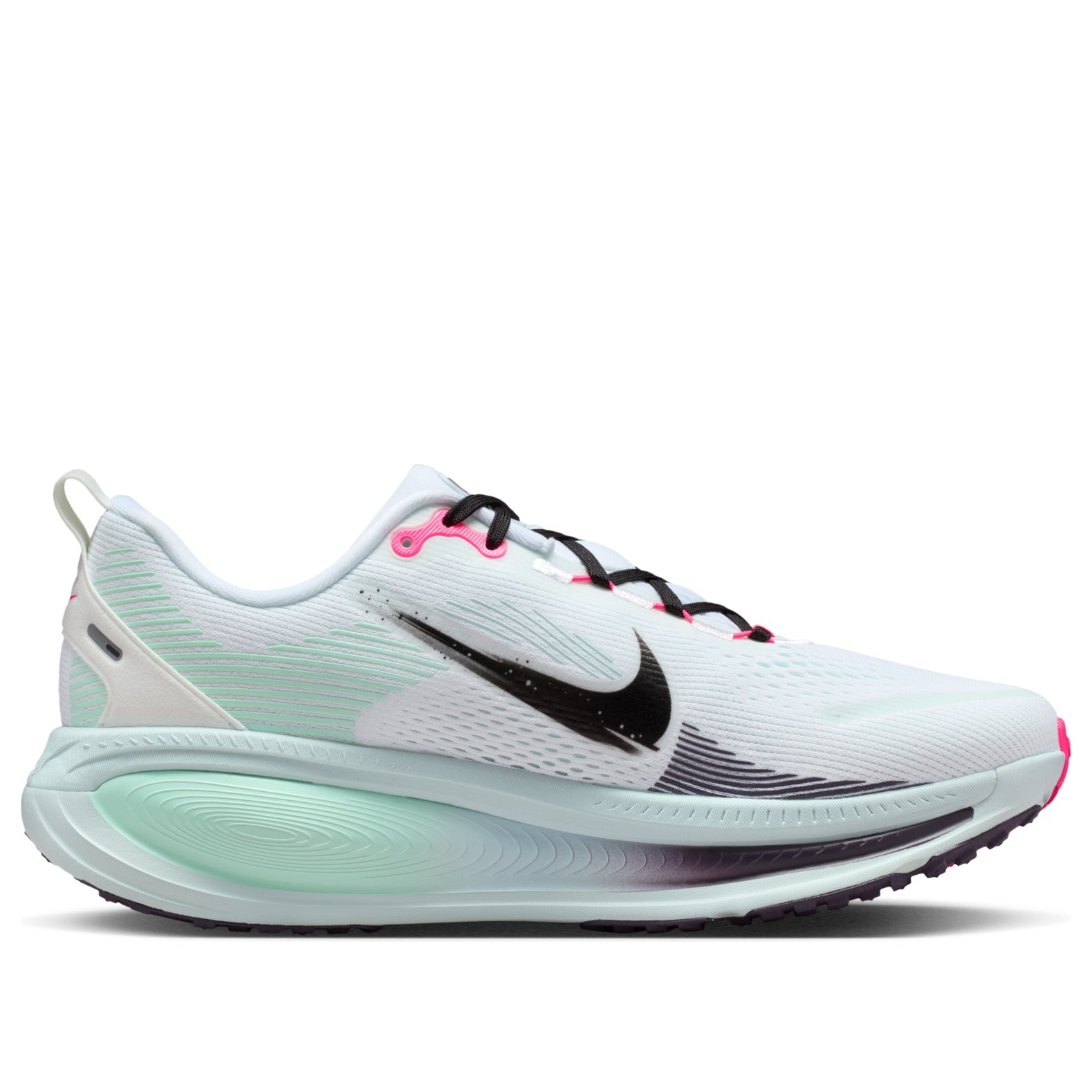 The Nike Vomero 18 White Glacier Blue Hyper Pink features a White/Glacier Blue/Hyper Pink/Black colorway. This Nike Vomero 18 was first released for $155 on October 01, 2025.