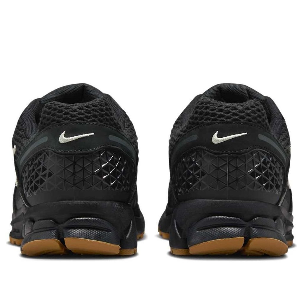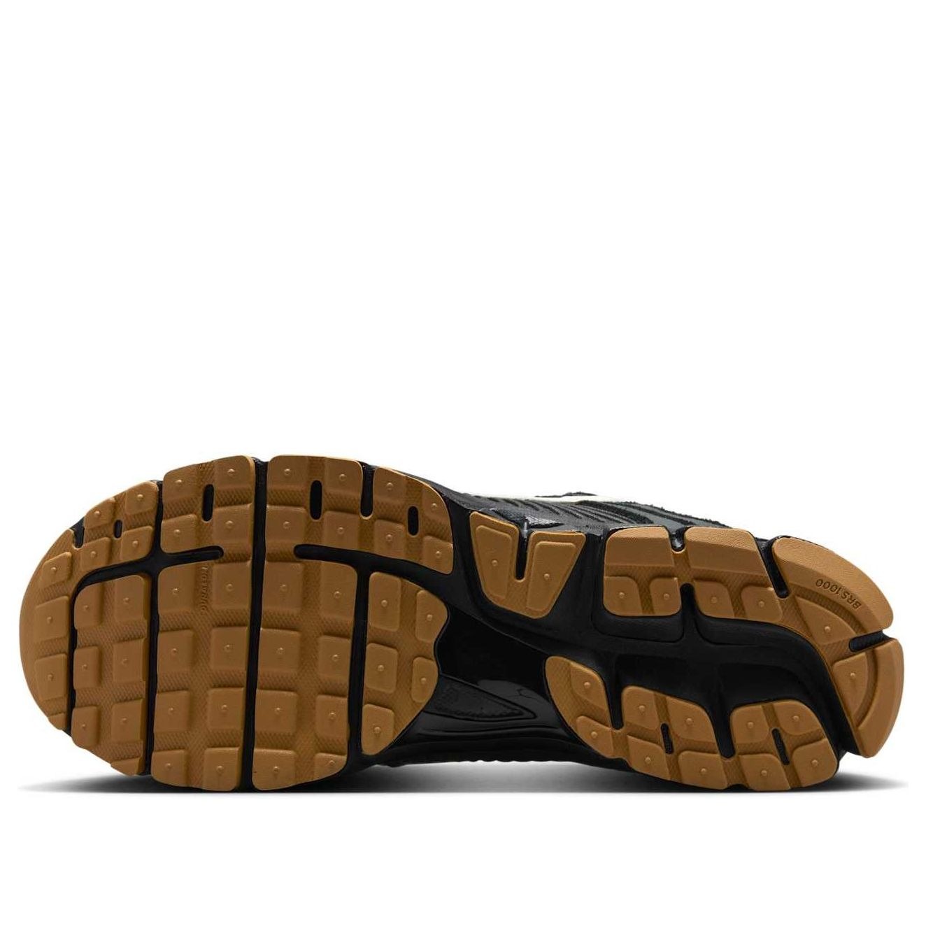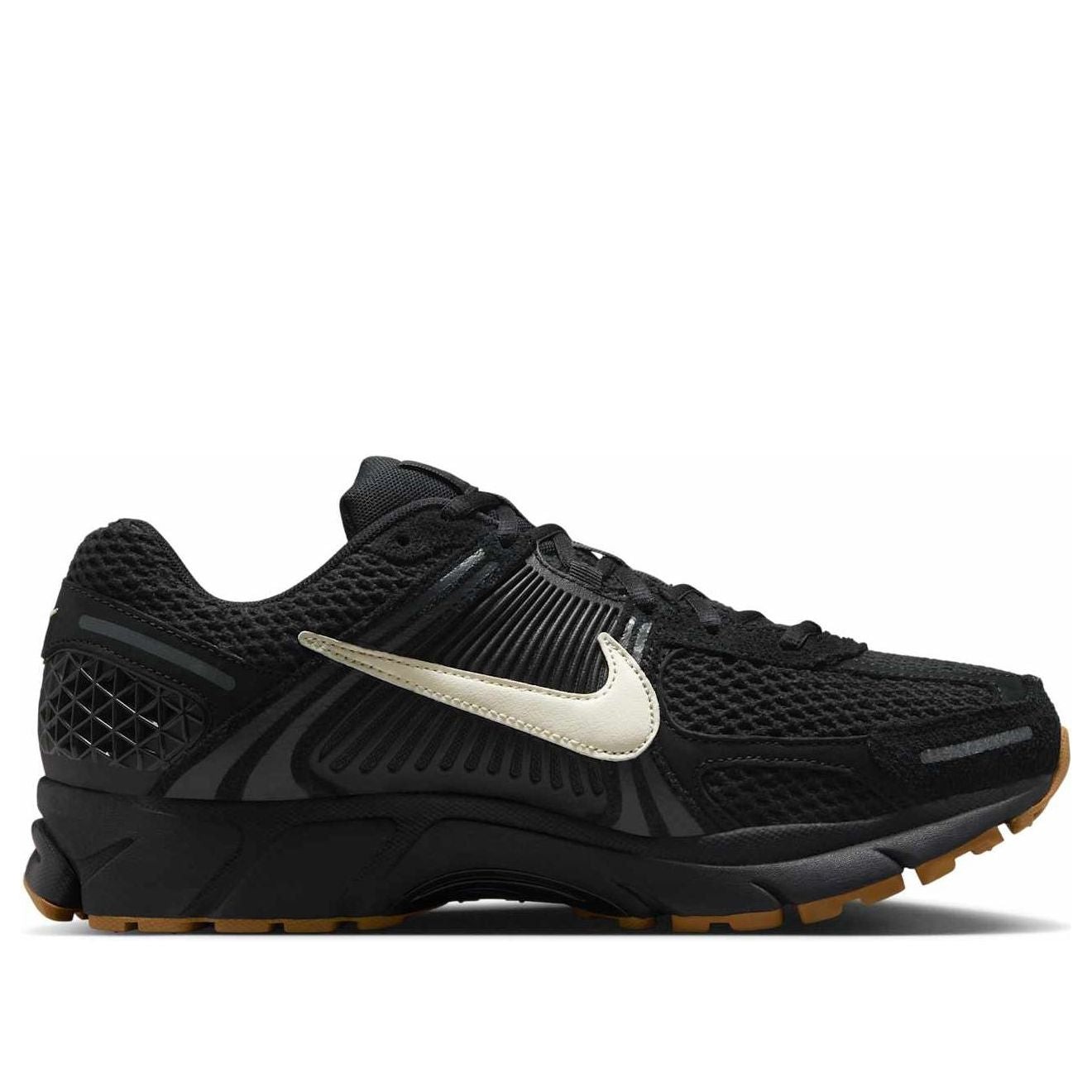 The Nike Zoom Vomero 5 Black Gum offers a versatile, blacked-out look in a silhouette that seamlessly blends performance and lifestyle. Designed as a classic running shoe, it also functions as a dependable everyday sneaker, offering breathable comfort, durable construction, and all-day support. The Nike Zoom Vomero 5 boasts retro design elements and combines them with modern sneaker tech. The upper is all black except the light bone signature Swooshes on the side panels and heel tab. Textures abound on this upper, which features mesh paneling for breathability and a 3D-printed heel counter with ventilation ports to keep things cool. A medium-brown gum rubber outsole adds a touch of flair, while reflective design details and black laces complete the look. Our experts think that the plastic caging on the side panels gives the Nike Zoom Vomero 5 Black Gum a unique vibe while adding support. Originally priced at $160 retail, this sneaker debuted on March 1, 2025.