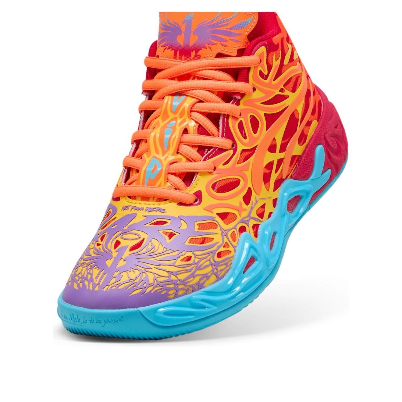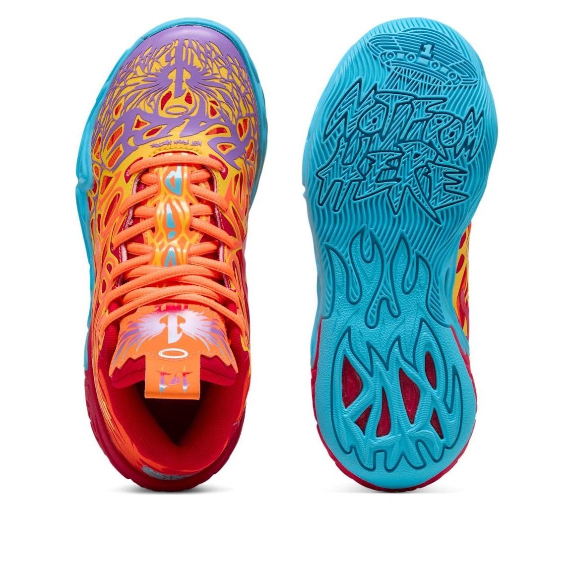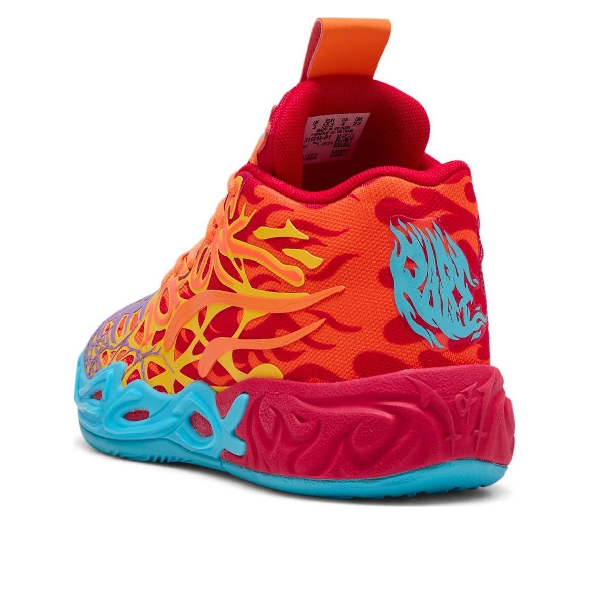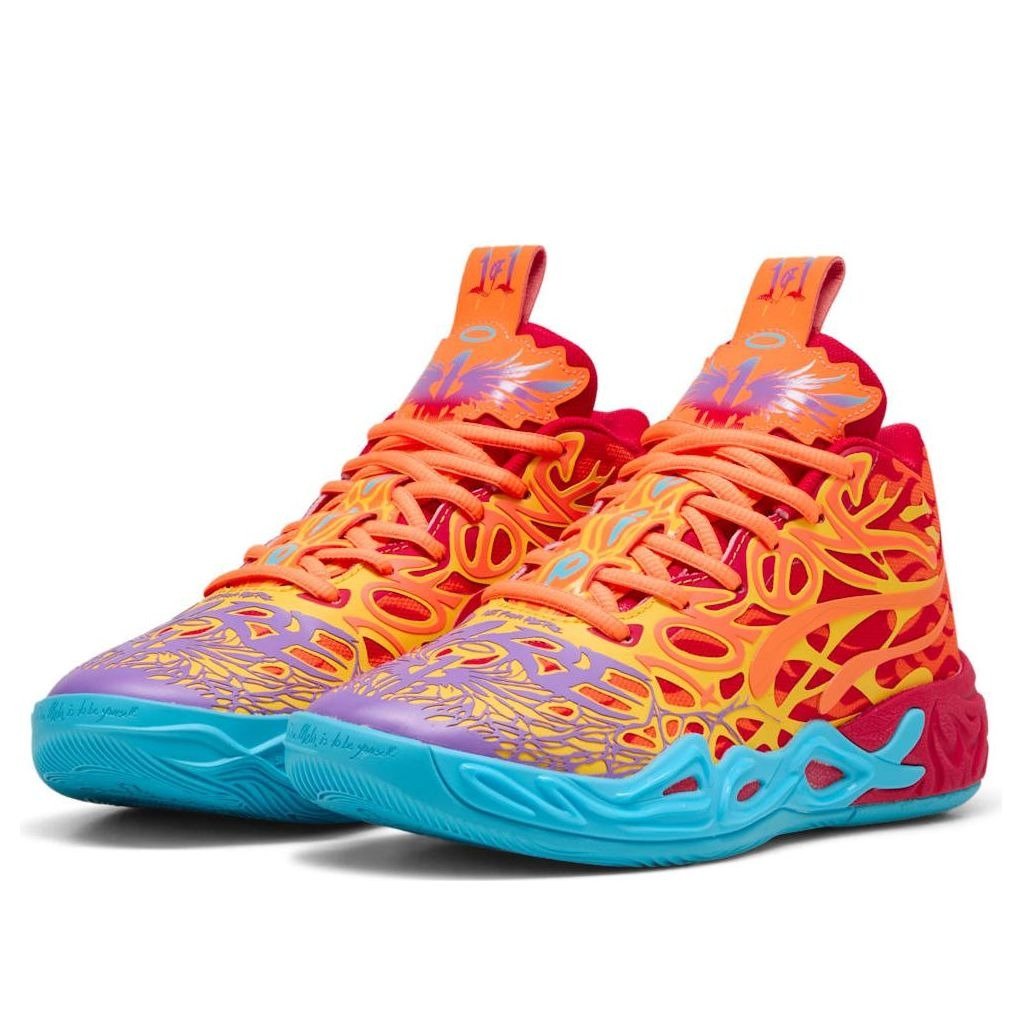 The Puma LaMelo Ball MB.04 Phoenix (GS) features a Red/Orange/Blue colorway. This Puma LaMelo Ball MB.04 was first released for $105 on December 06, 2024.