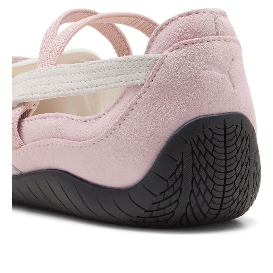 The Puma Speedcat Ballet Whisp of Pink (Women’s) is a women s sized silhouette that merges the sleek profile of a ballet flat with the iconic DNA of the Speedcat, thus redefining motorsport heritage with a feminine twist. Designed for everyday ease, this women s sizing Puma Speedcat Ballet is a fusion of performance influence and everyday elegance. This chic slip-on silhouette is crafted out of a soft suede upper in a Whisp Pink shade. White and Whisp Pink elastic cross-foot bands allow the foot to breathe. A white embroidered logo sits on the lateral toebox area, while a debossed puma is on the heel. Inspired by racing culture but made for the streets, the Speedcat Ballet sits on a grippy tire tread sole that nods to its fast-paced roots. We think that the standout feature of the low-profile Puma Speedcat Ballet Whisp of Pink (Women’s) is how the white distinctive Formstrip is cut-out and embedded into the design for a modern, deconstructed look. When it was released on March 1, 2025, this shoe was originally priced at $80.