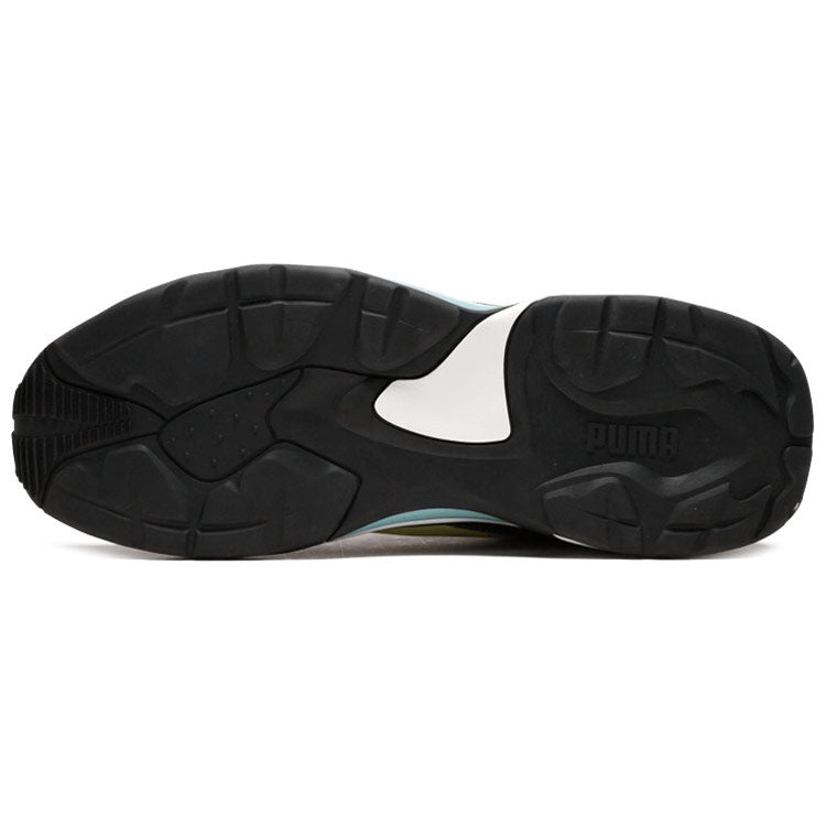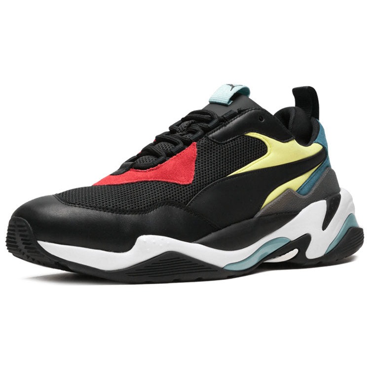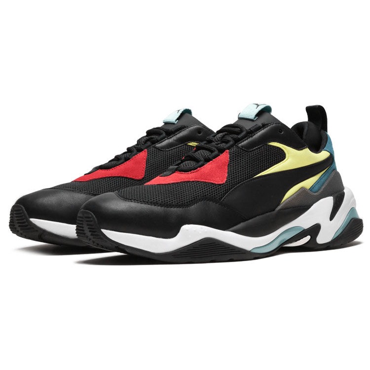 The PUMA Thunder pays homage to past collabs and silhouettes ahead of their time. Inspired by 90s Cell System running silhouettes and the PUMA x McQueen collaboration, the Thunder is a reimagined pair of kicks with a bulky, unapologetic look and feel. The Thunder has a distinctive athletic shape with a chunky structure that uses molded TPU laid over premium mesh and nubuck to create a disruptive sense of nostalgia. The exaggerated tooling, the blown-up proportions and the loud color blocking reserve a spot for the Thunder on the international runways.